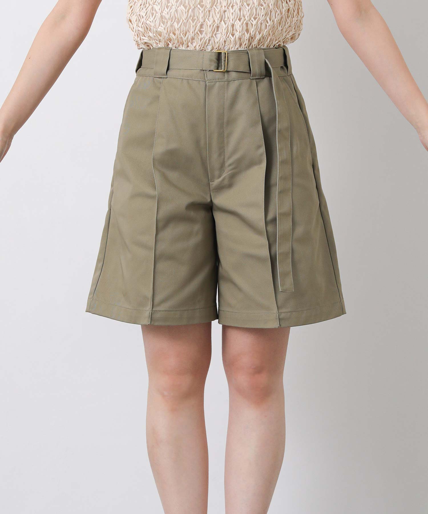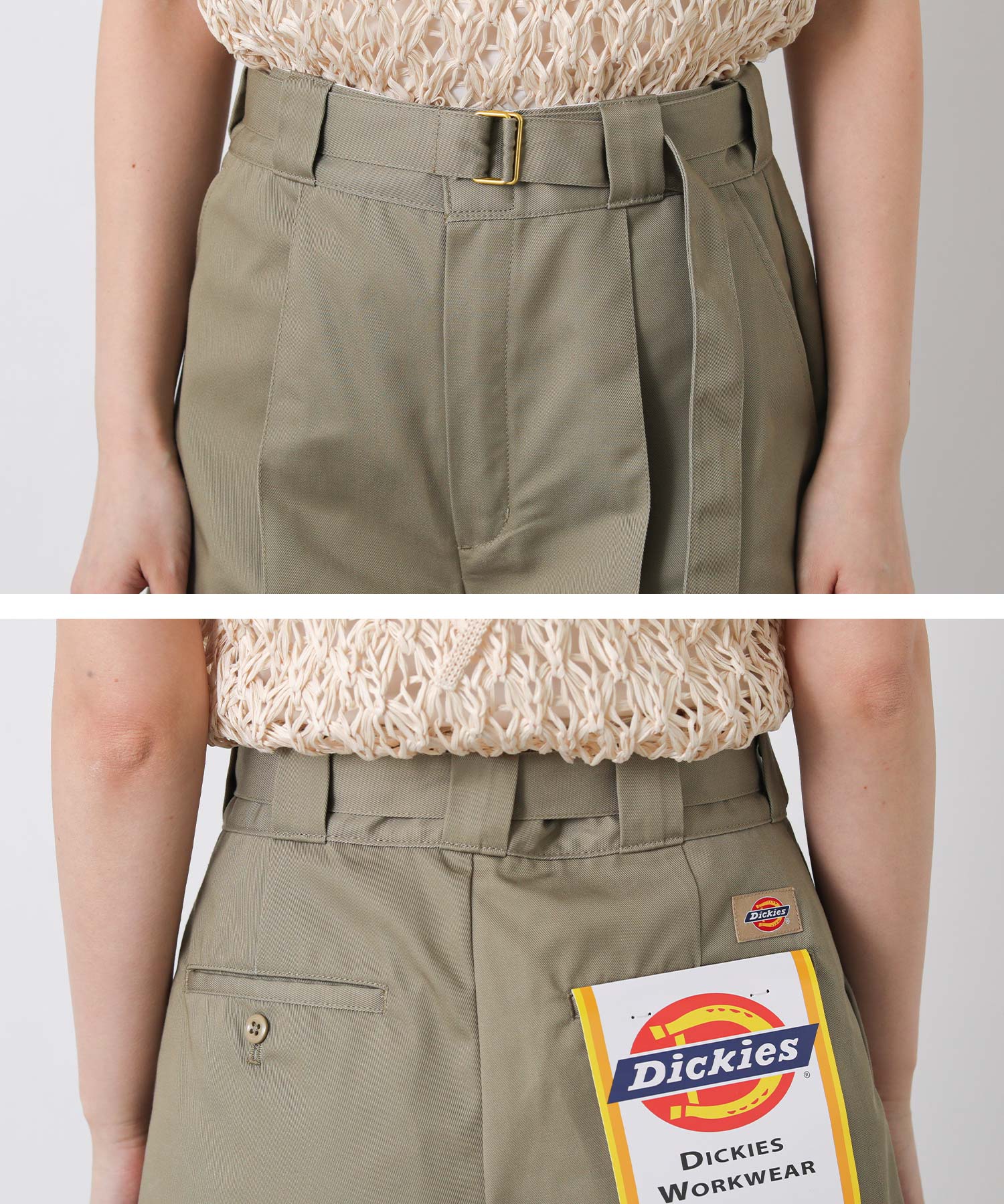 【Dickies(ディッキーズ)】から、フロントのタックとウエストベルトがポイントのショートパンツをセレクト。