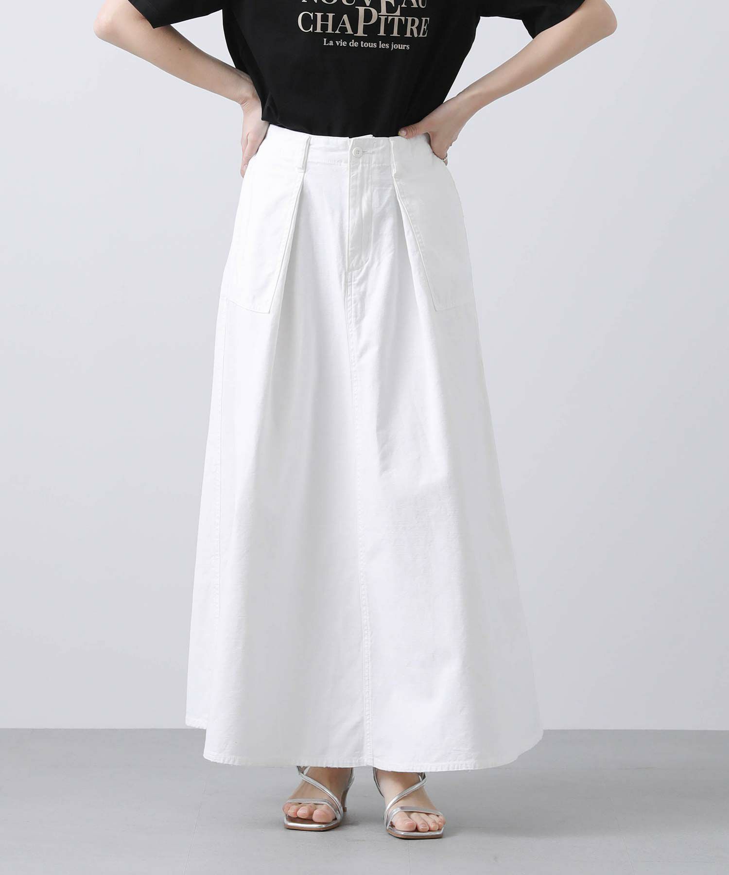 【Healthydenim/ヘルシーデニム】から、ウエストにタックを入れ、程よいボリューム感のあるフレアシルエットのスカートをセレクト。