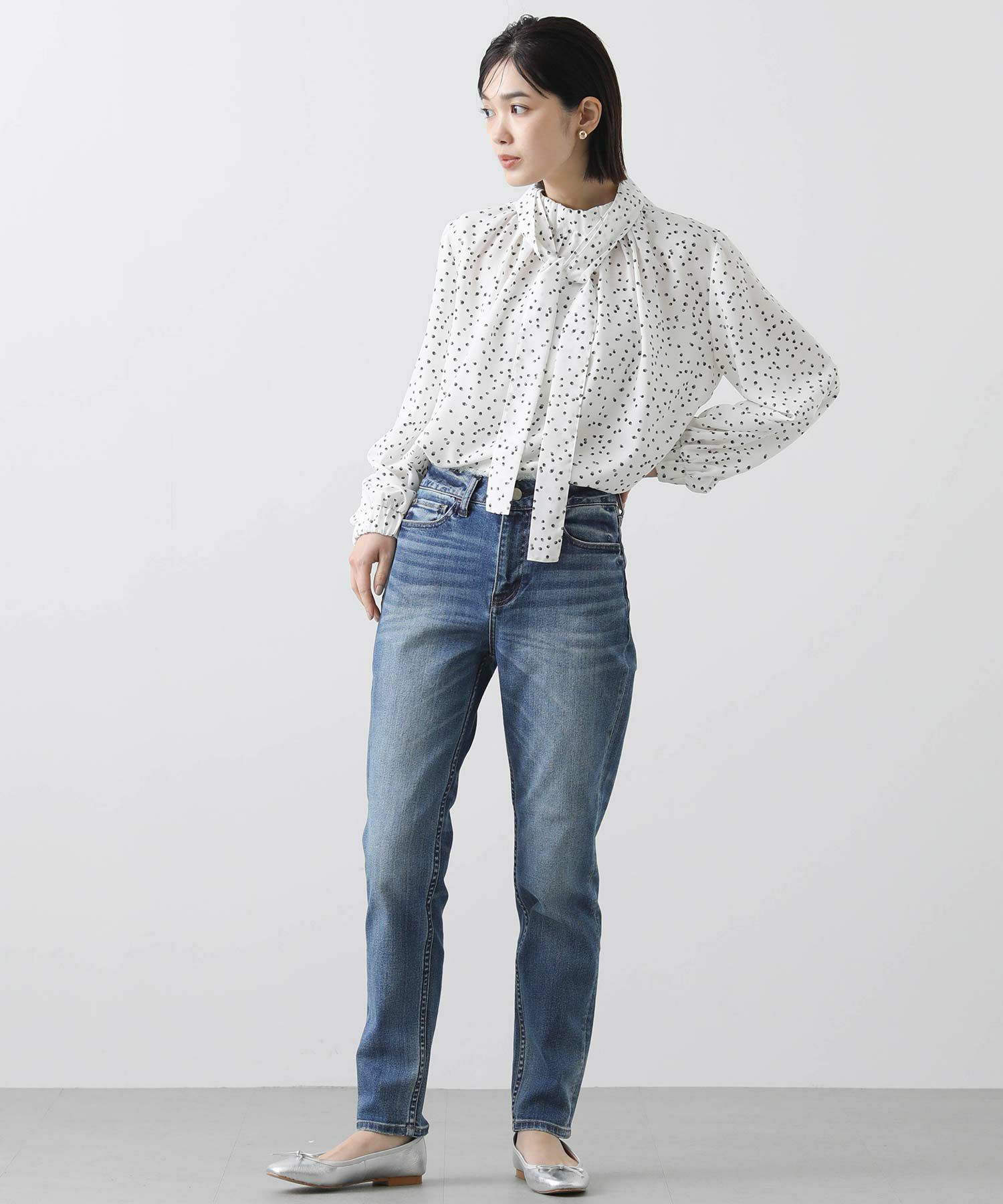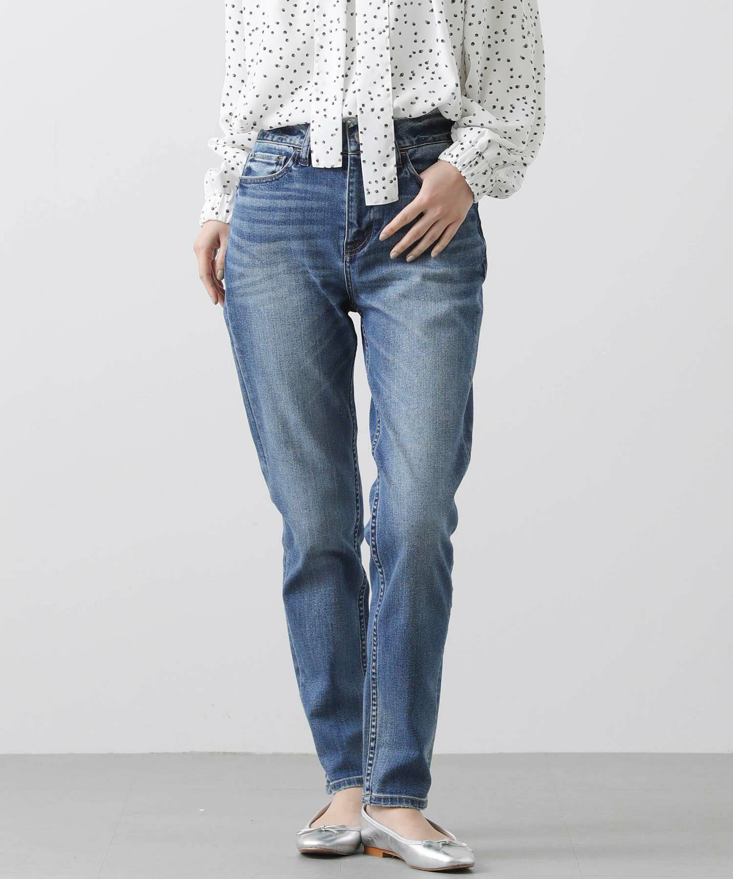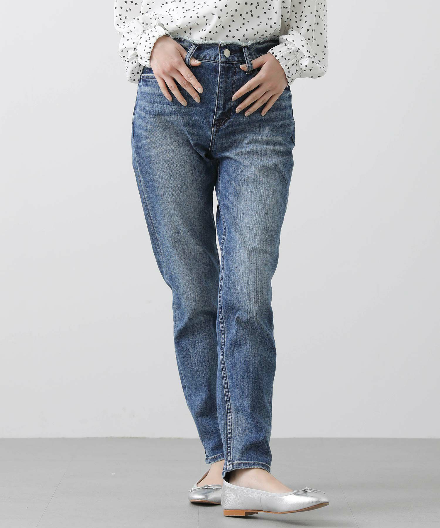 ぴたぴたになりすぎず、少しのゆるみが逆に脚をすっきりと見せてくれるボーイフレンドフィットです。カイハラの3者混ハイパワーストレッチデニム地採用で、従来のポリウレタンストレッチより伸縮性も大幅にUPしました。