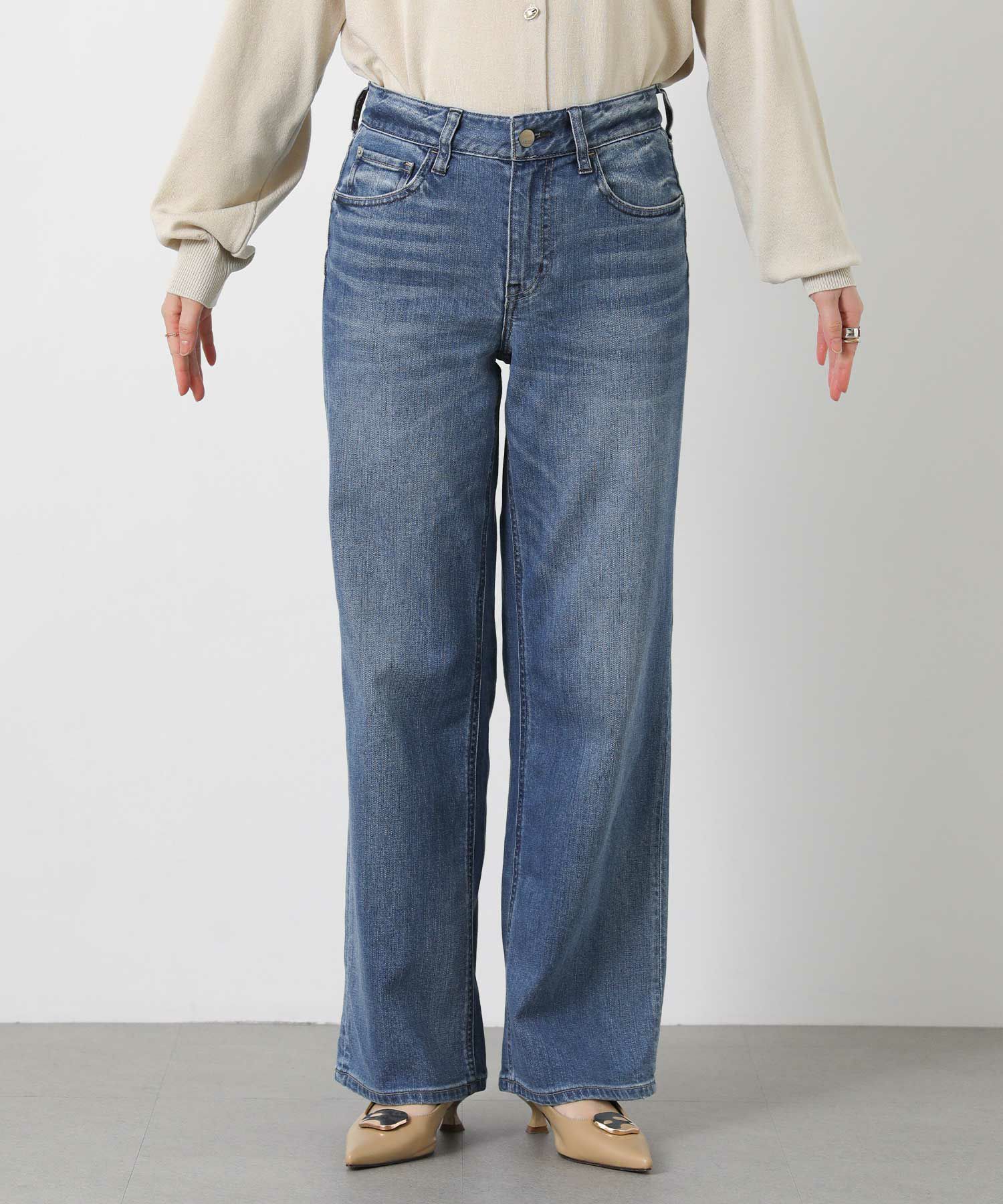 程よい太さでほんのりフレア見えする5ポケットのデニム。