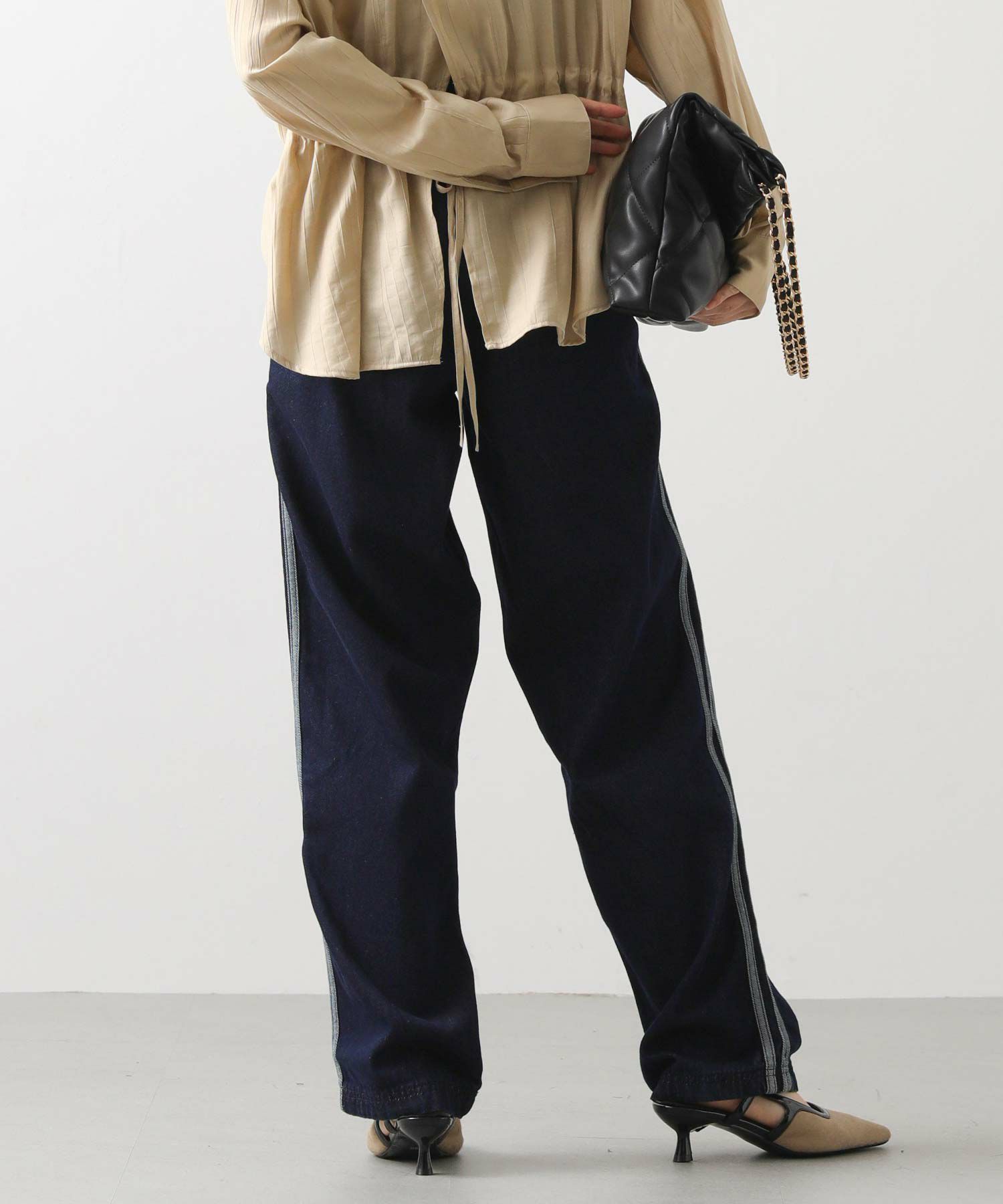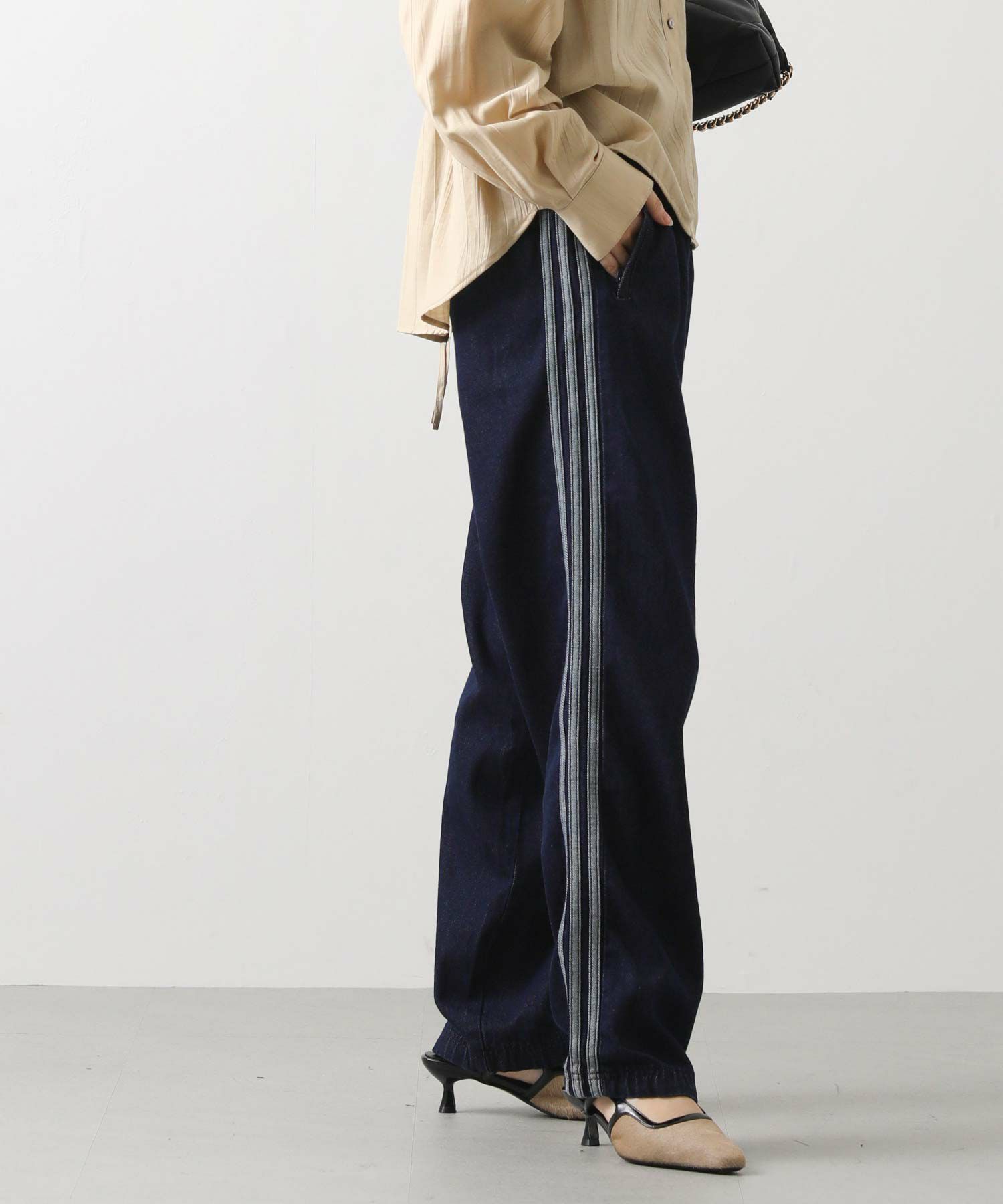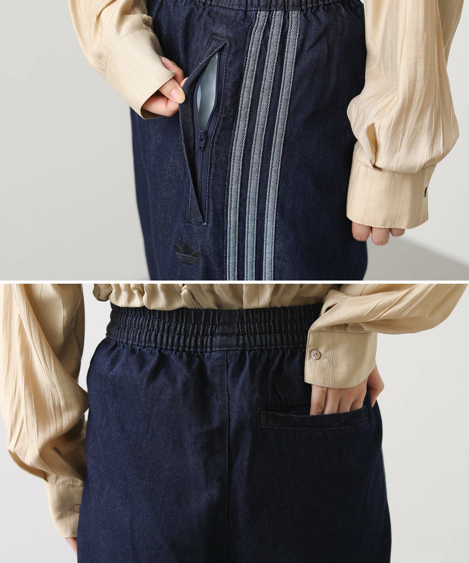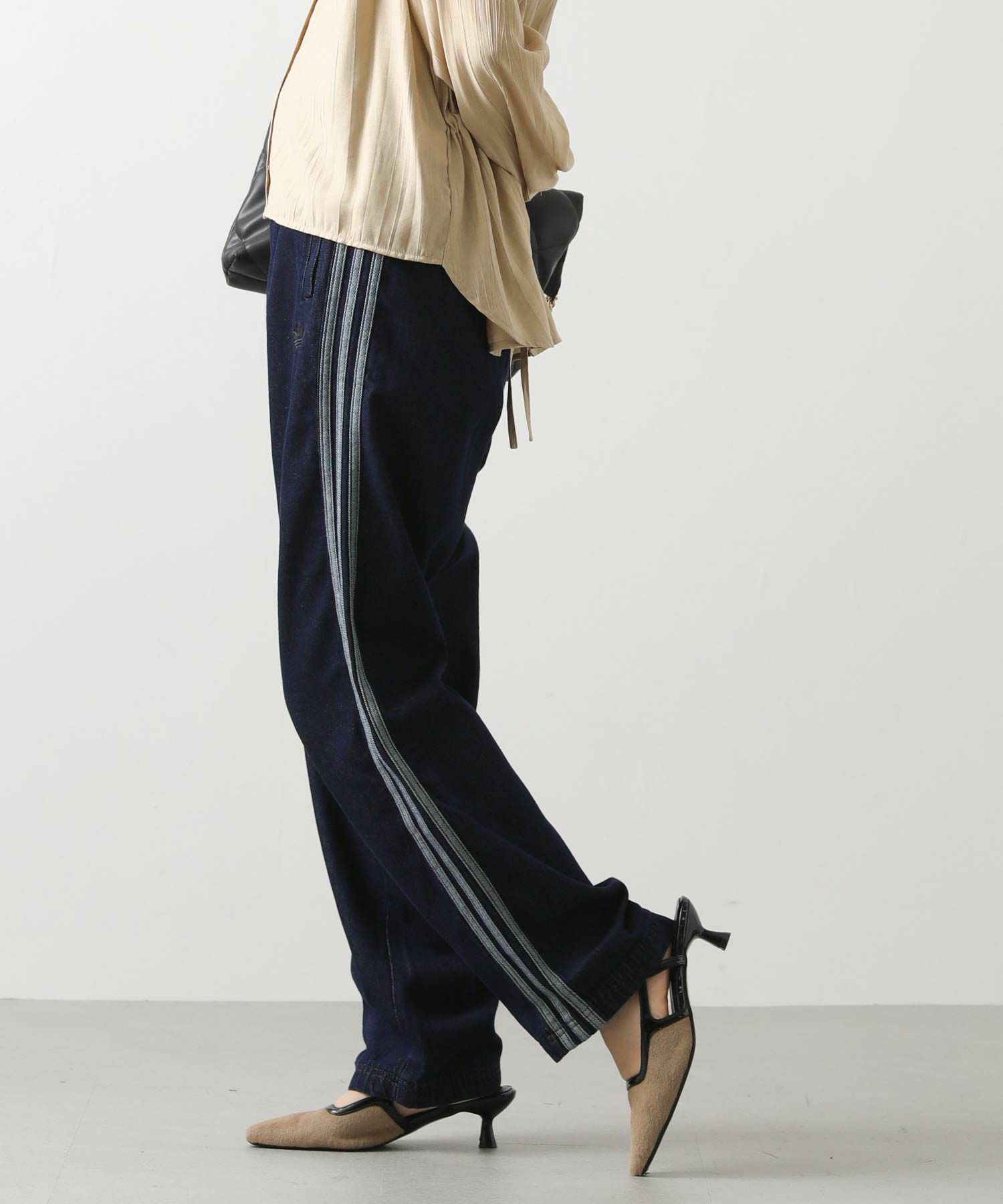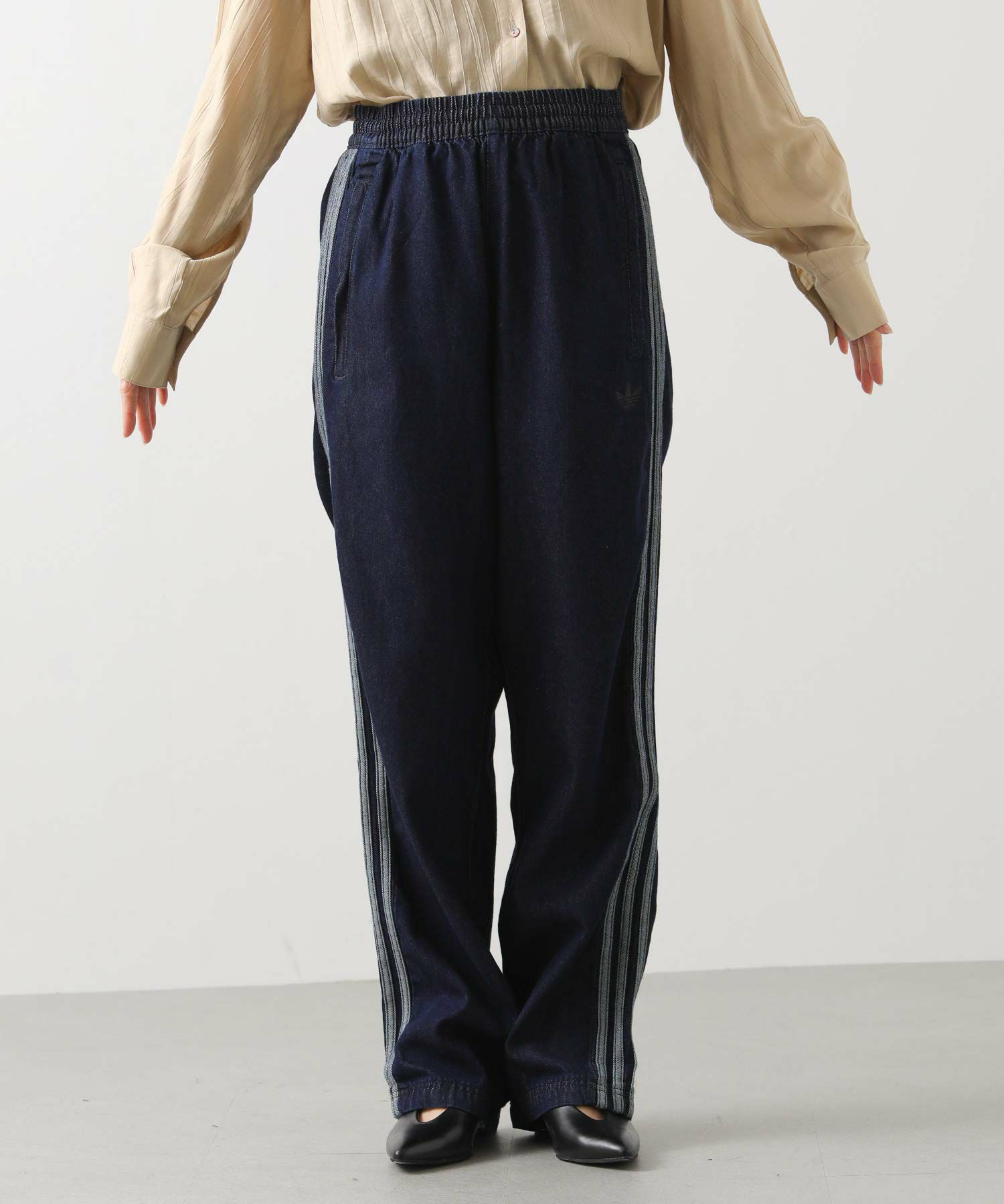 【adidasアディダス】から、デニム生地のクラシックなトラックパンツをセレクト。