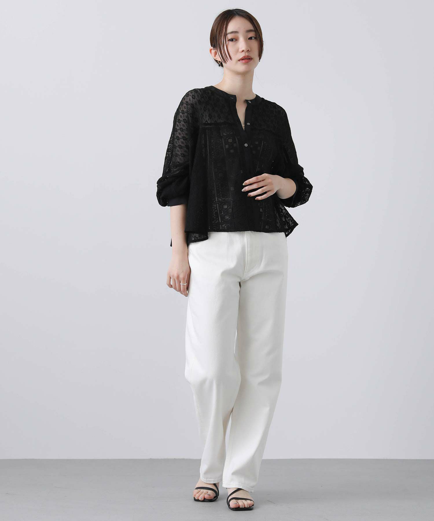 トップスをインしてメリハリのあるコーデや、シアーシャツで素材のコントラストを楽しむのもおすすめ。