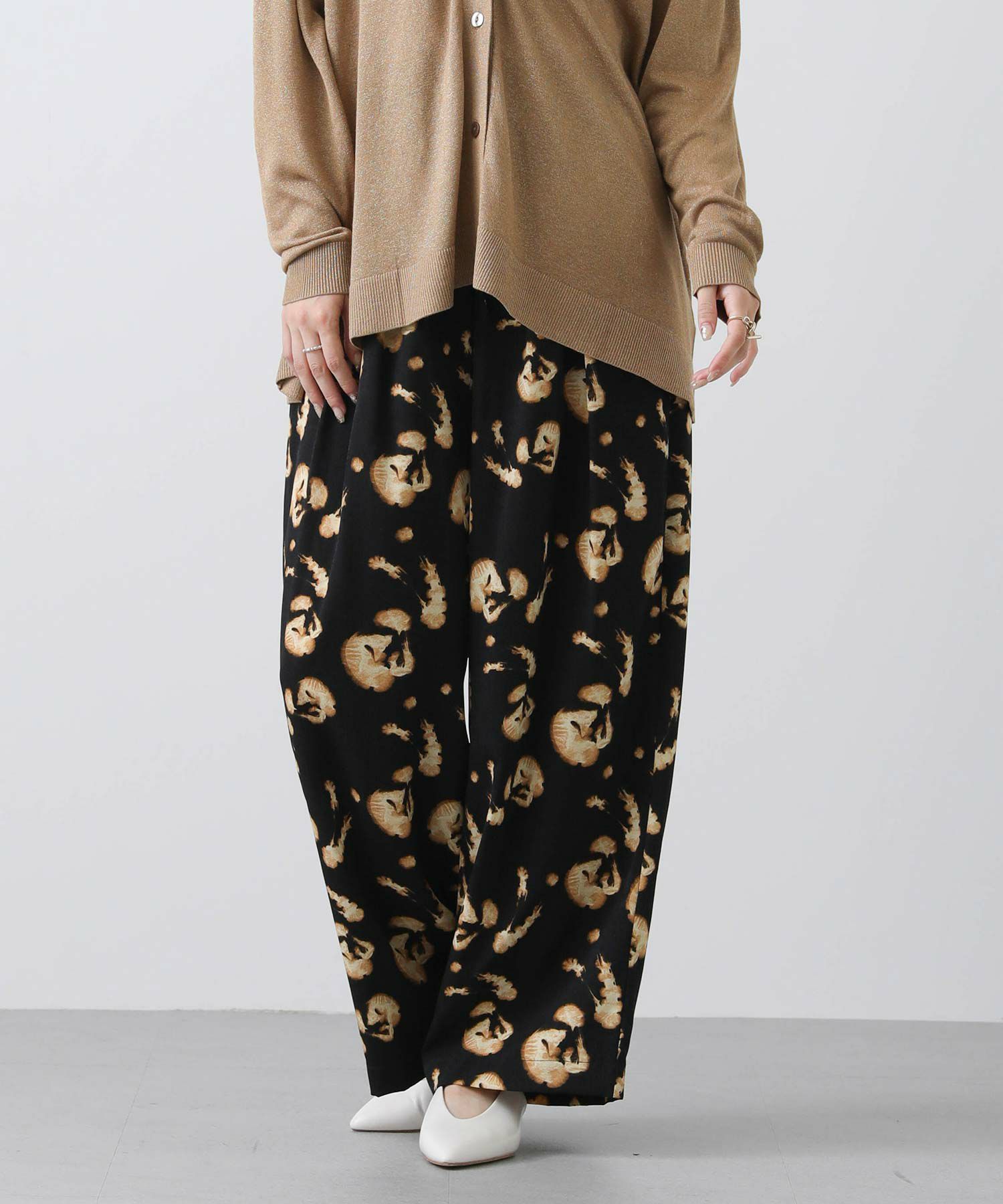ウエストゴムのイージーな仕様でリラックス感のある着心地。