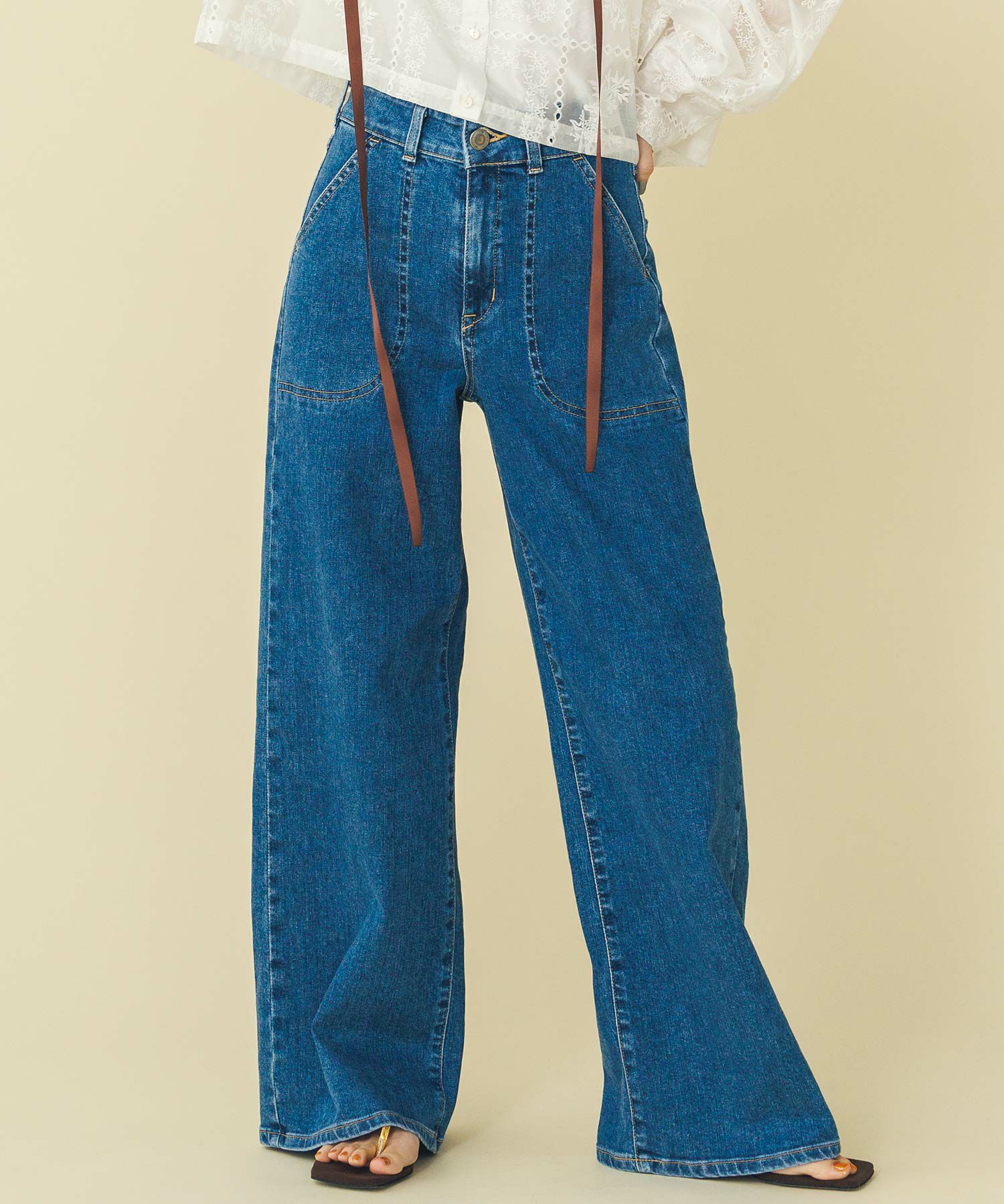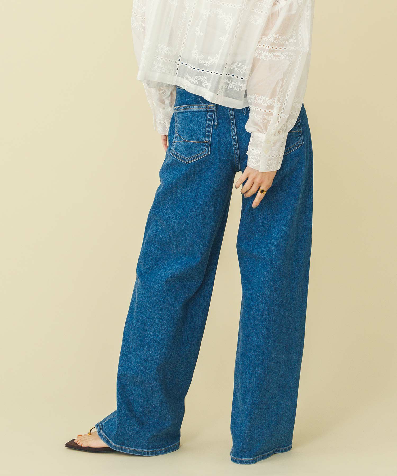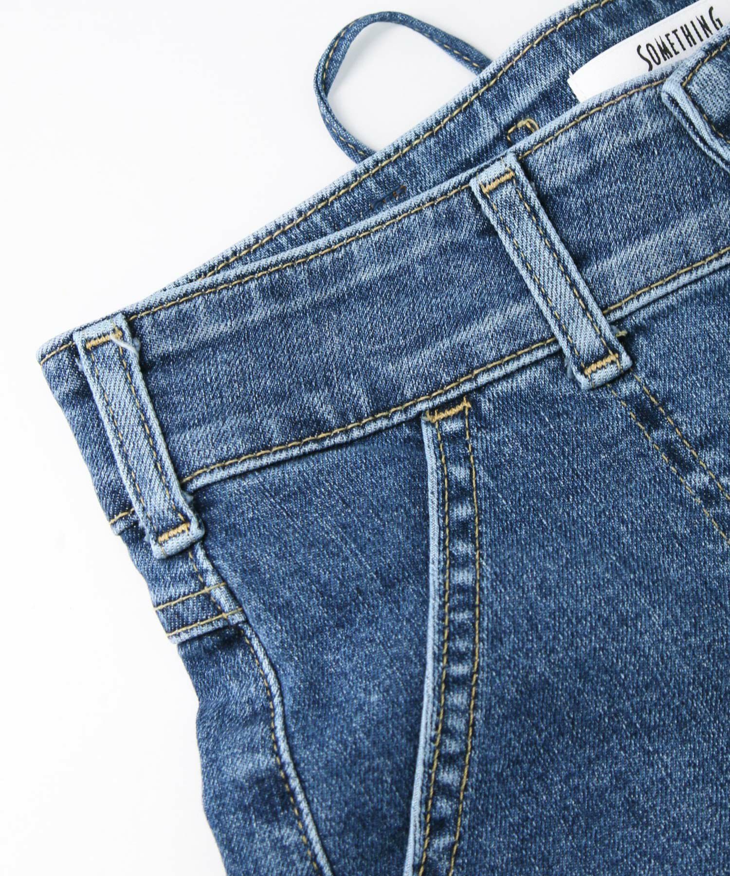 バックリボンがポイントなので、トップスはウエストインやショート丈のものがおすすめです。タテ糸に、植物由来で環境に配慮した繊維テンセルを使用した柔らかな風合いが特徴のSOMETHINGオリジナルデニムを使用。