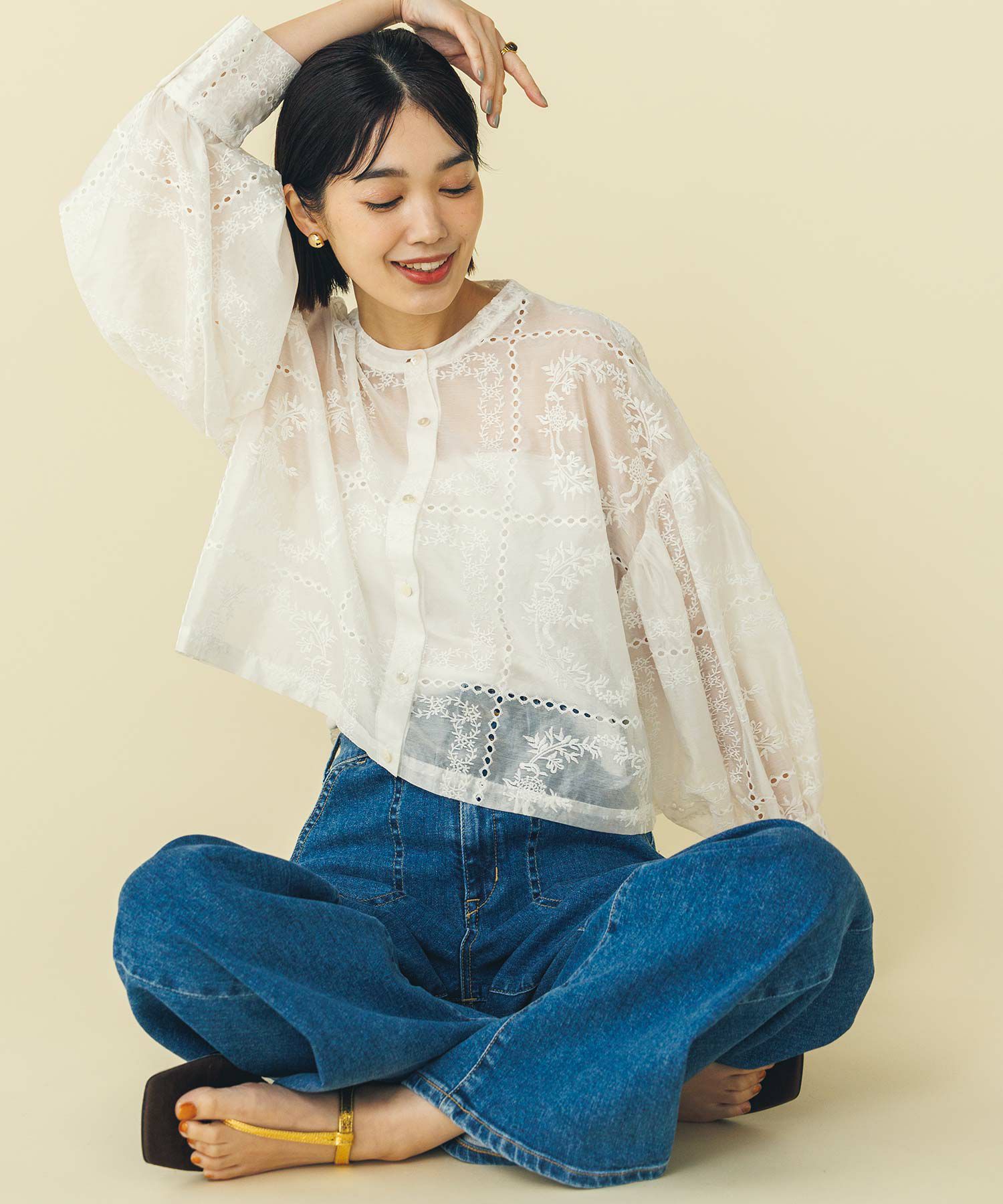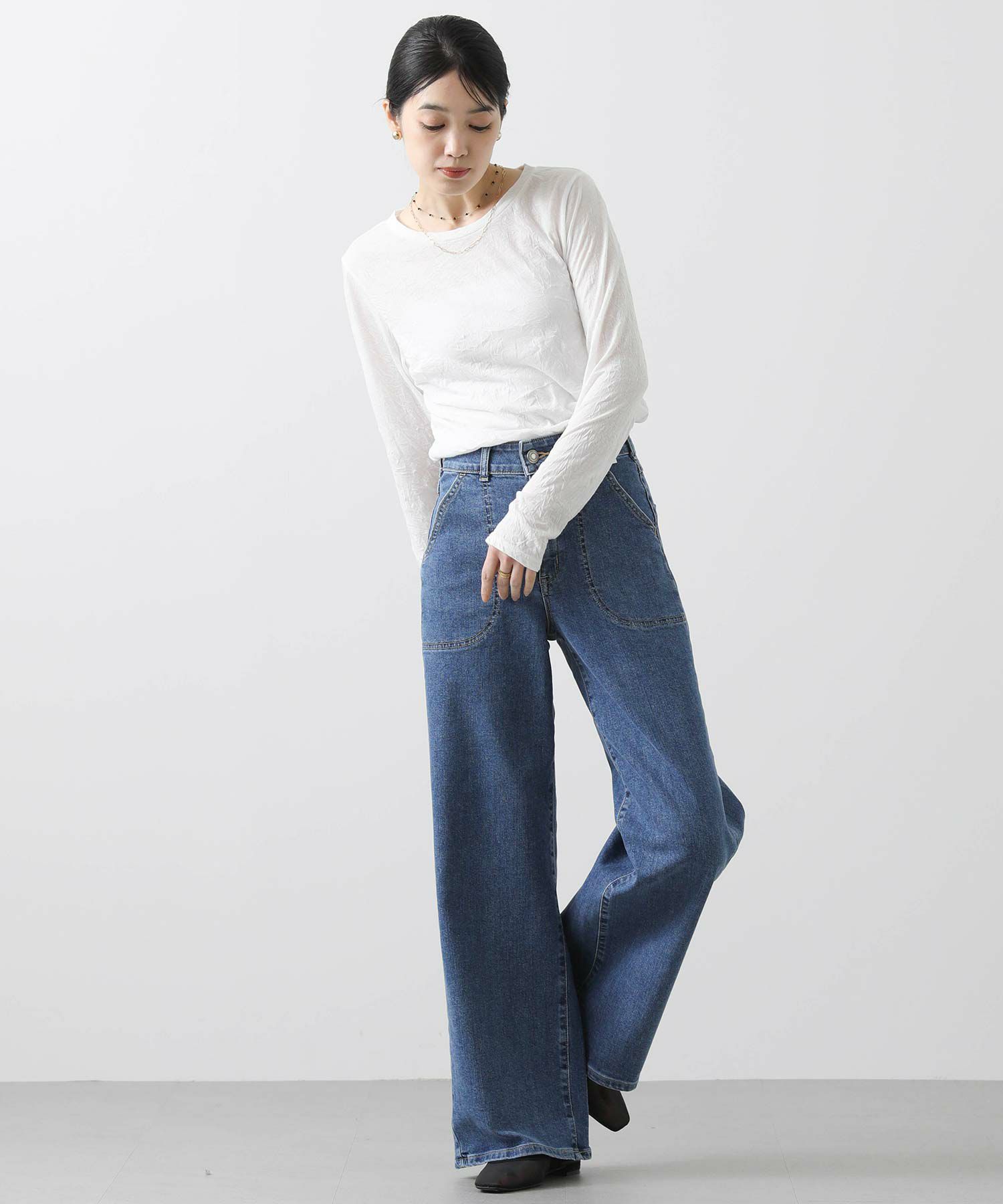 ※着用画像は撮影状況、光の当たり具合で色みが違って見える場合がございます。実際の色みについては、画像一覧の最後に掲載している詳細画像をご参照ください。