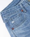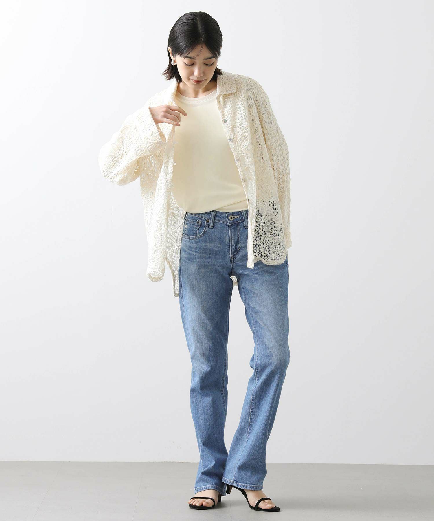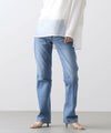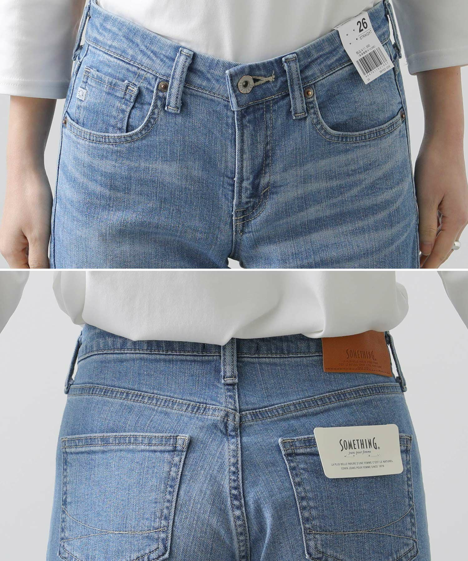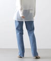 加工映えするよう、2種類のムラ形状を使用したSOMETHINGオリジナルストレッチデニムです。前身をやや小さめに設定し、裾まで真っすぐに引かれたパターンは、脚を細くまっすぐ魅せてくれる美脚シルエットです。