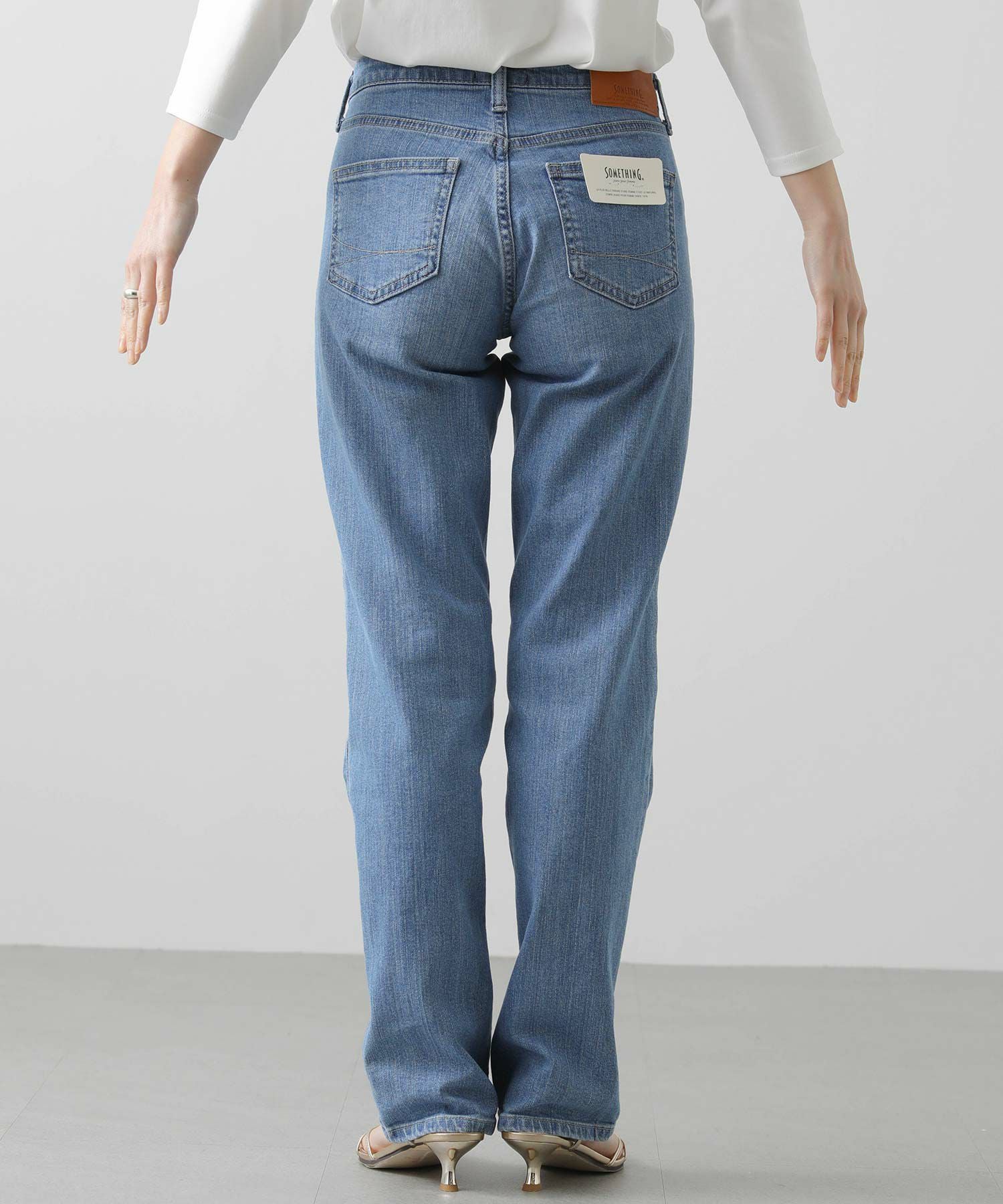 【SOMETHING(サムシング)】から、腰まわりゆったり、ヒザ下まっすぐなストレートパンツ〈ELSASTANDARDストレート〉をセレクト。