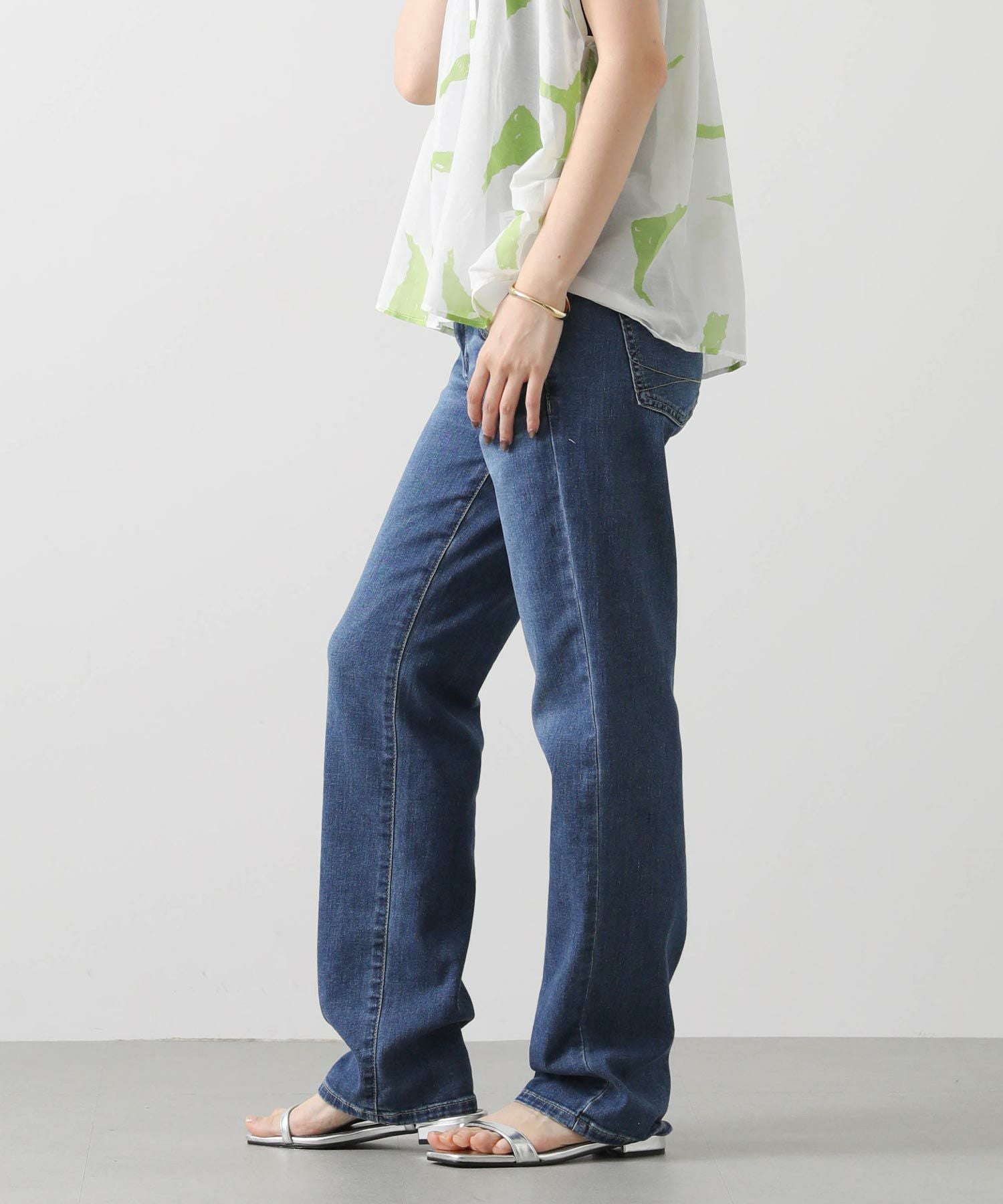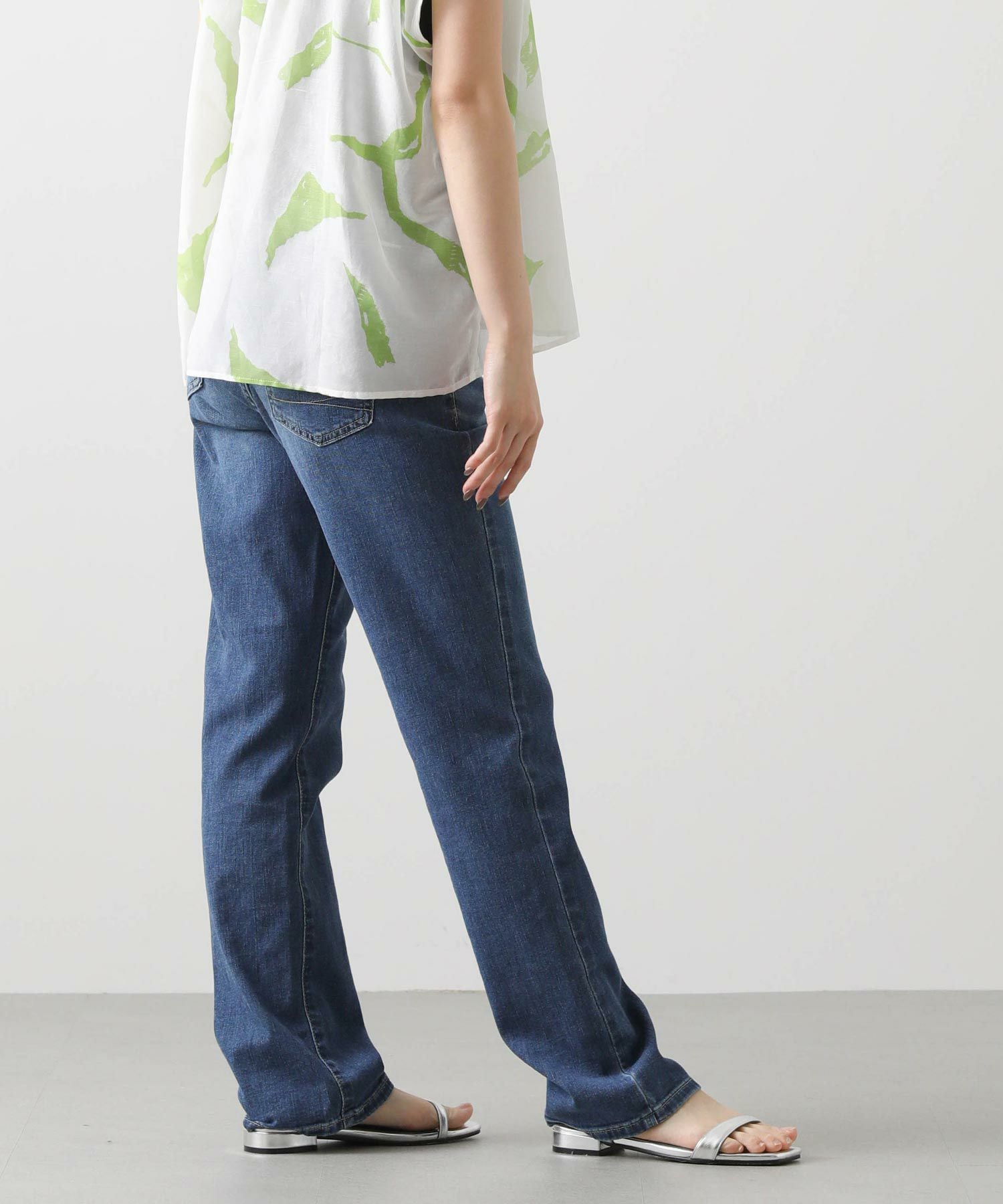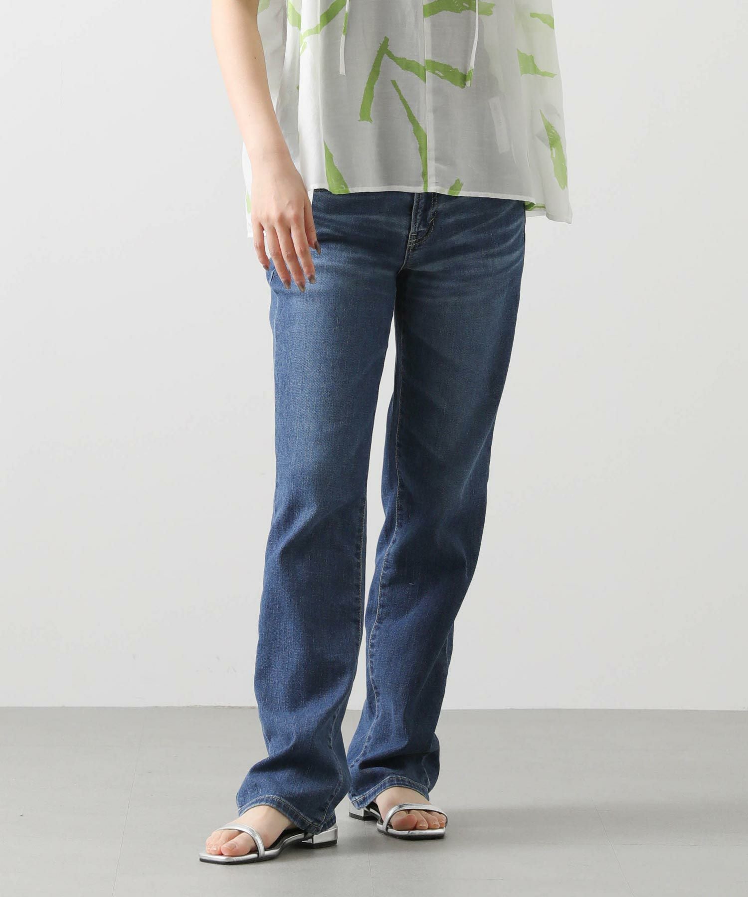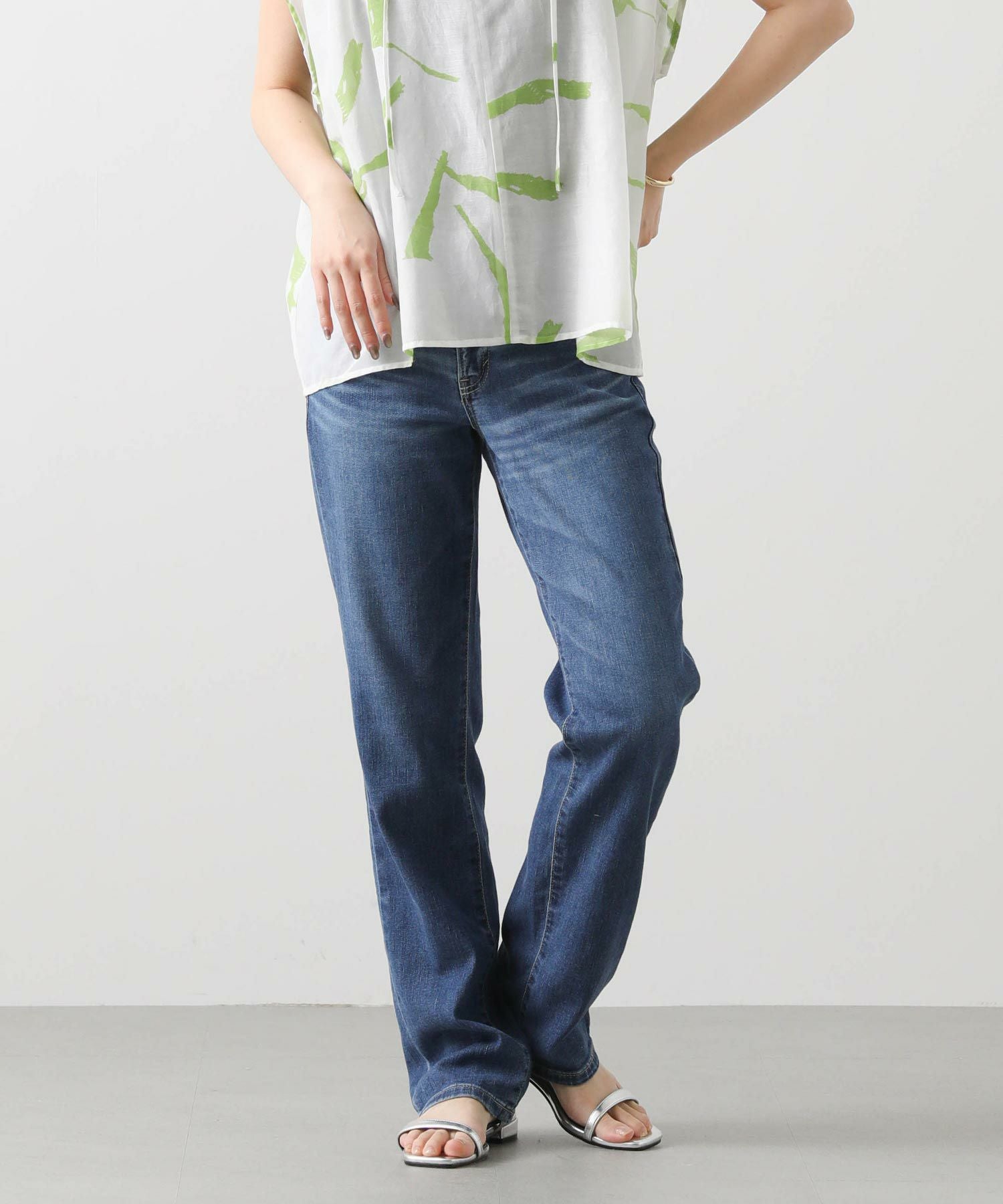 どんな着こなしにも合うストレートシルエットは、着回しやすい万能アイテム。フルレングスなので、トップスは少し肌見せをした抜け感のあるスタイルが夏らしくておすすめ。