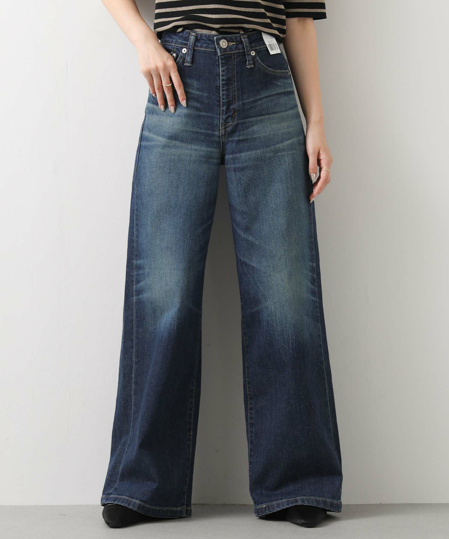 ハイウエストでしっかりとフィットした腰回りが、ワイド特有の着太りを解消。