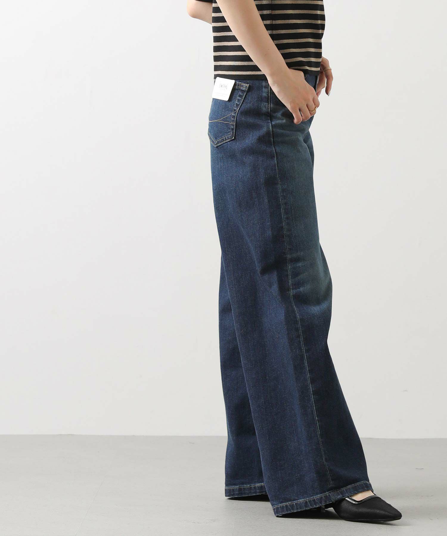 ハイウエストでしっかりとフィットした腰回りが、ワイド特有の着太りを解消。