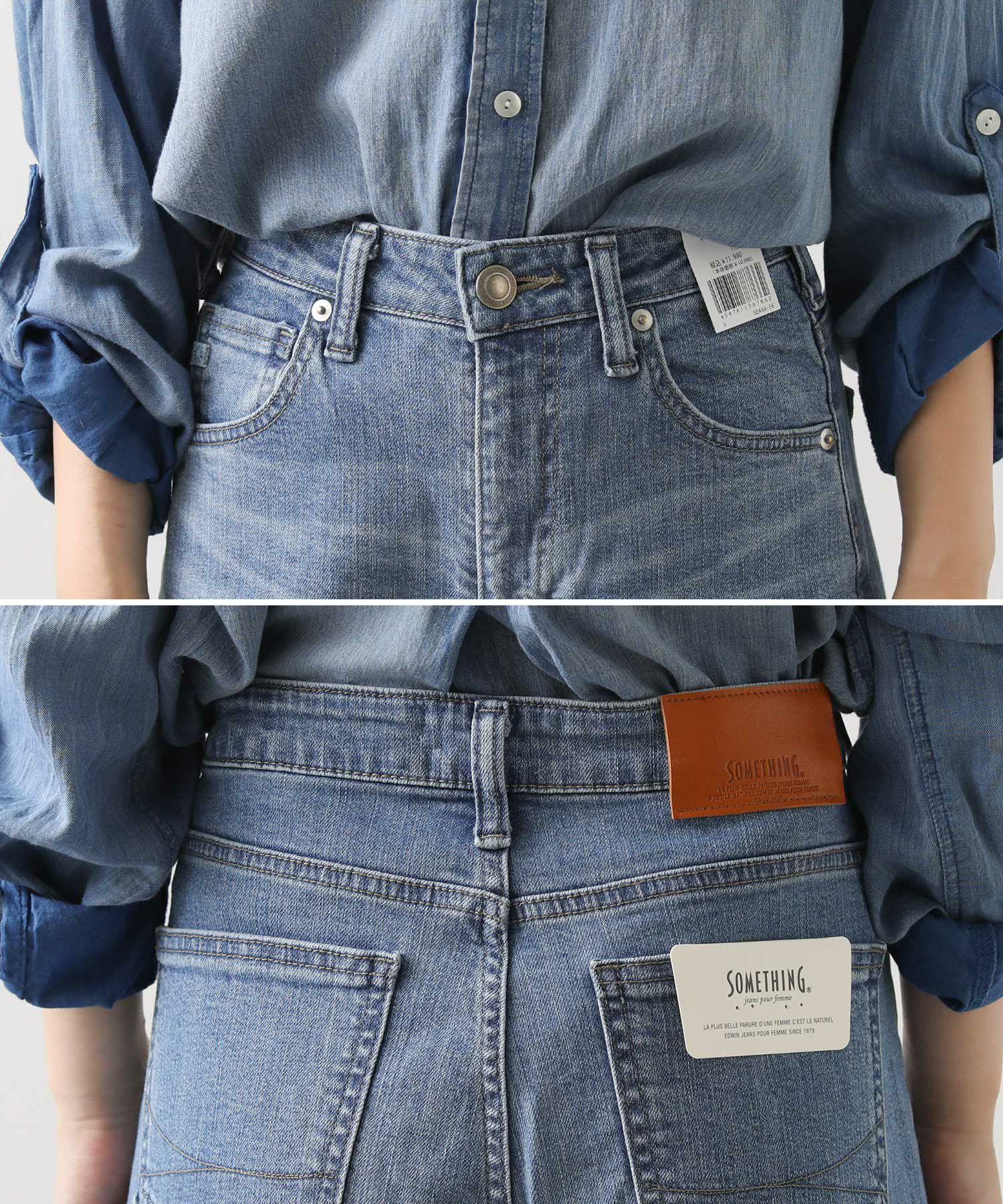 異番手、ムラ形状の違う2種のタテ糸を使用し、加工映えするよう設計した、SOMETHINGオリジナルストレッチデニムです。