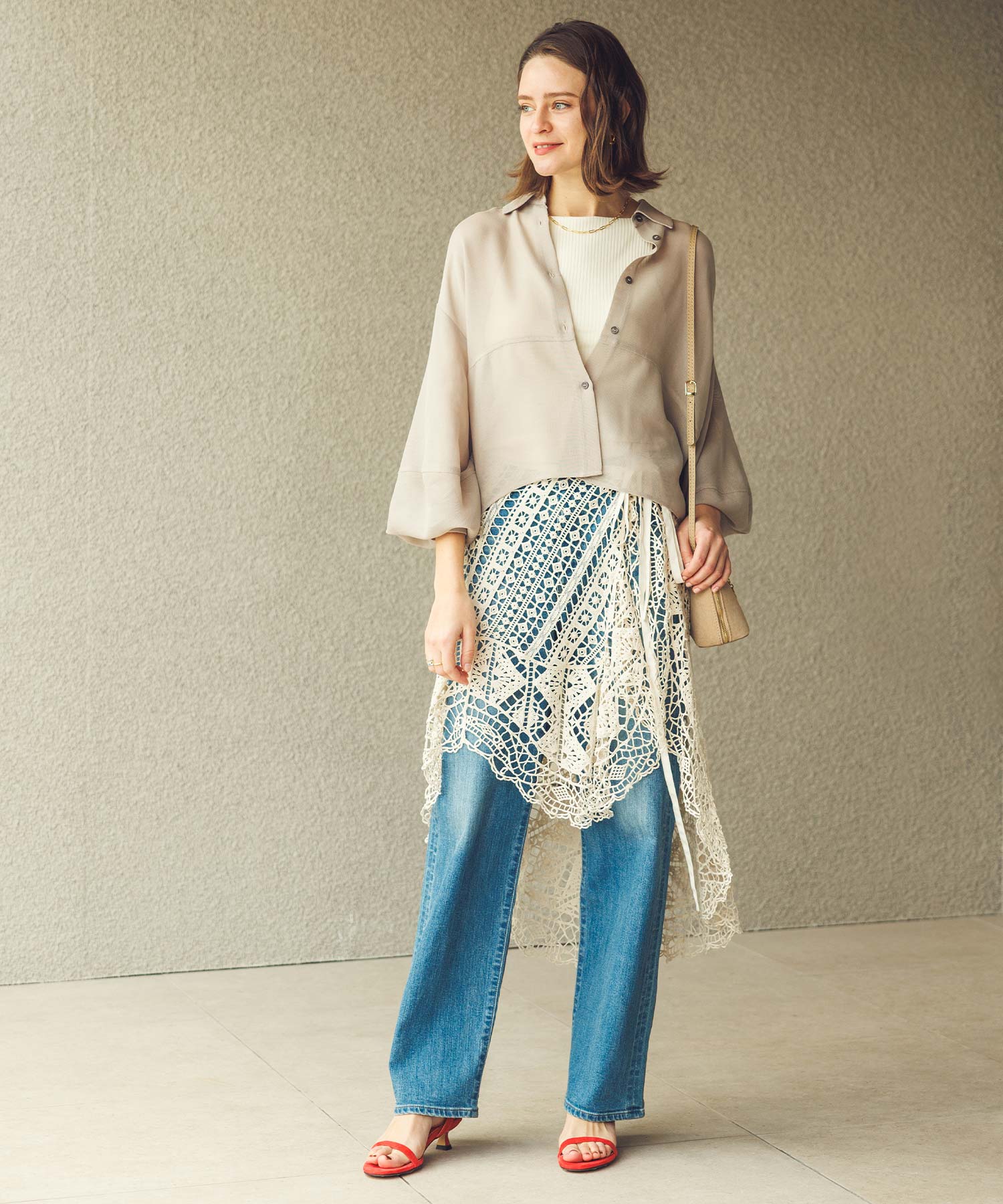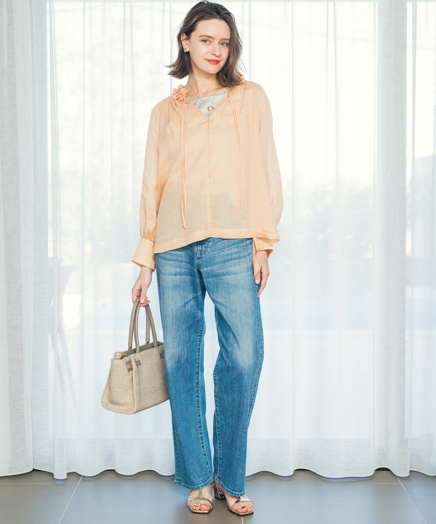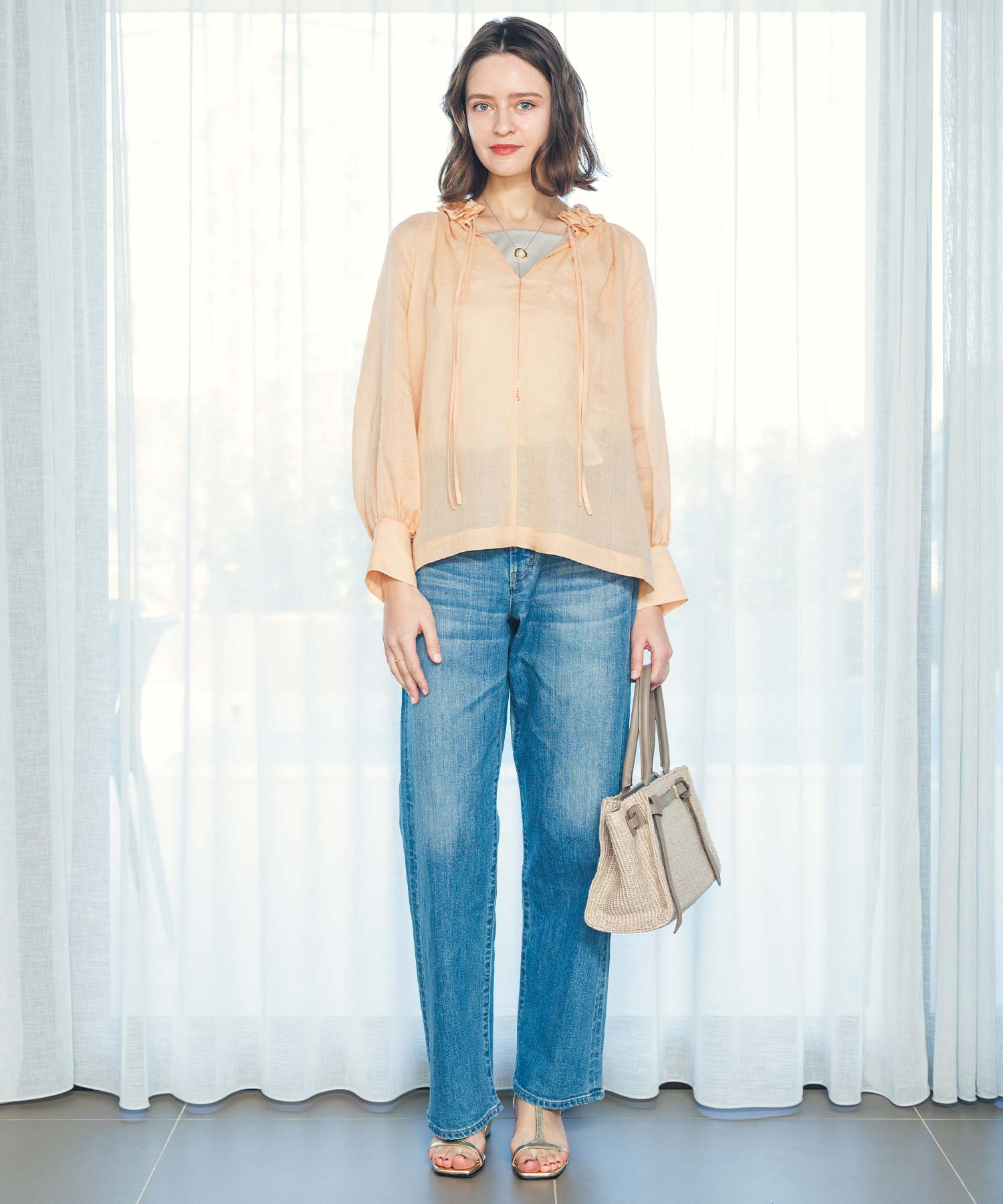 ※着用画像は撮影状況、光の当たり具合で色みが違って見える場合がございます。実際の色みについては、画像一覧の最後に掲載している詳細画像をご参照ください。