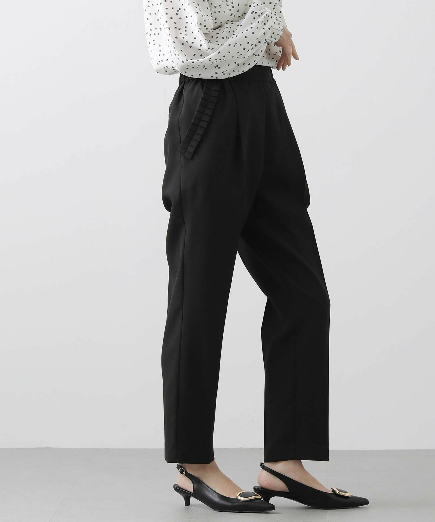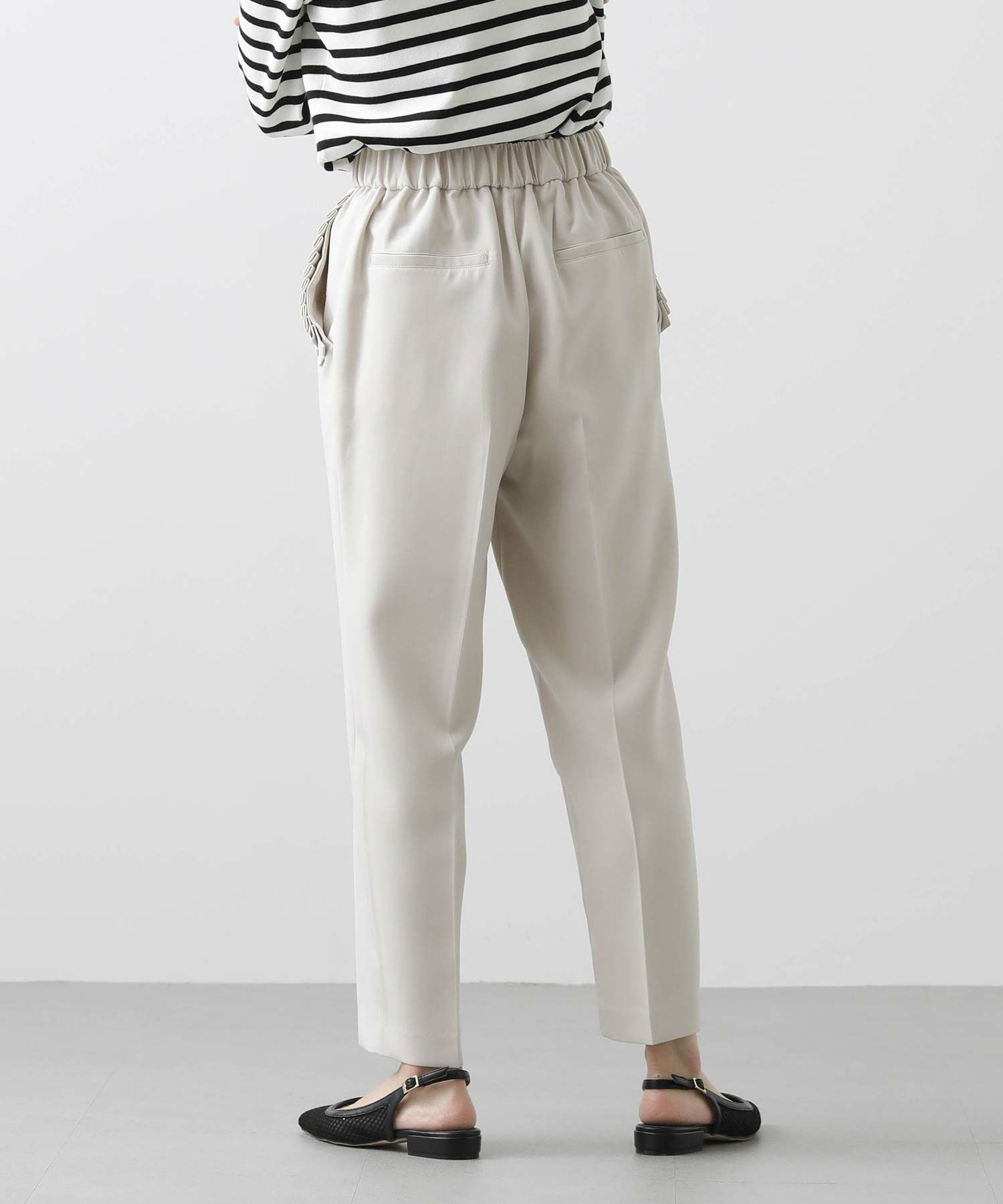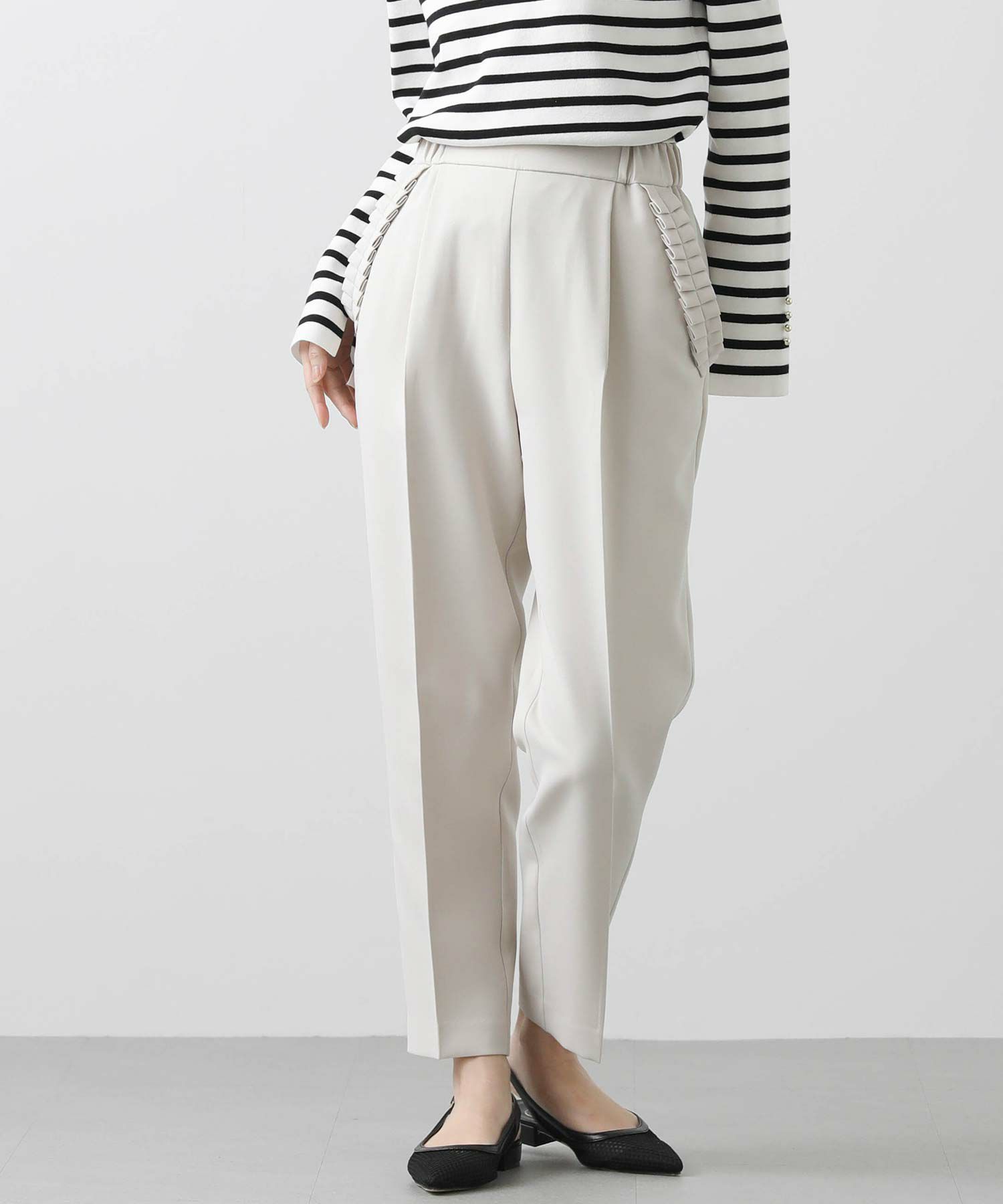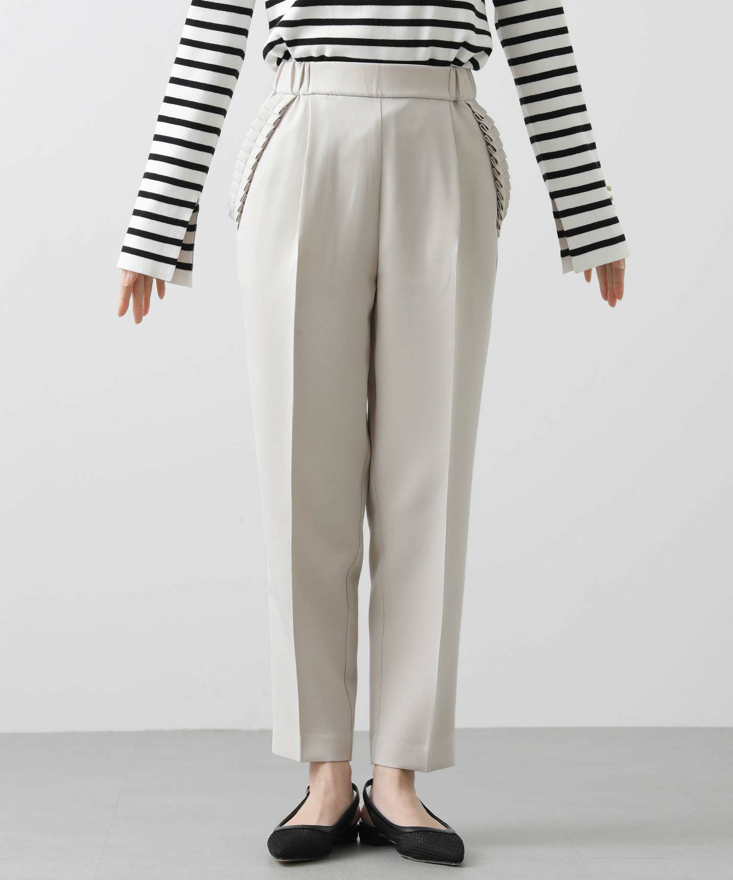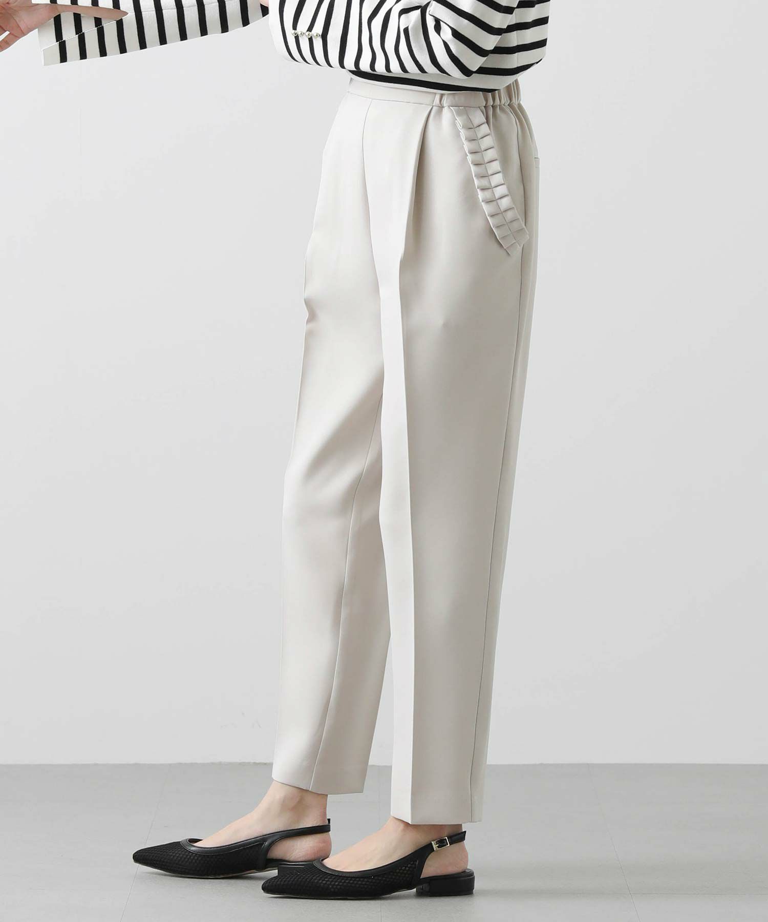 【minkchair(ミンクチェアー)】から、ポケット口のタックフリルが可愛いテーパードパンツをセレクト。