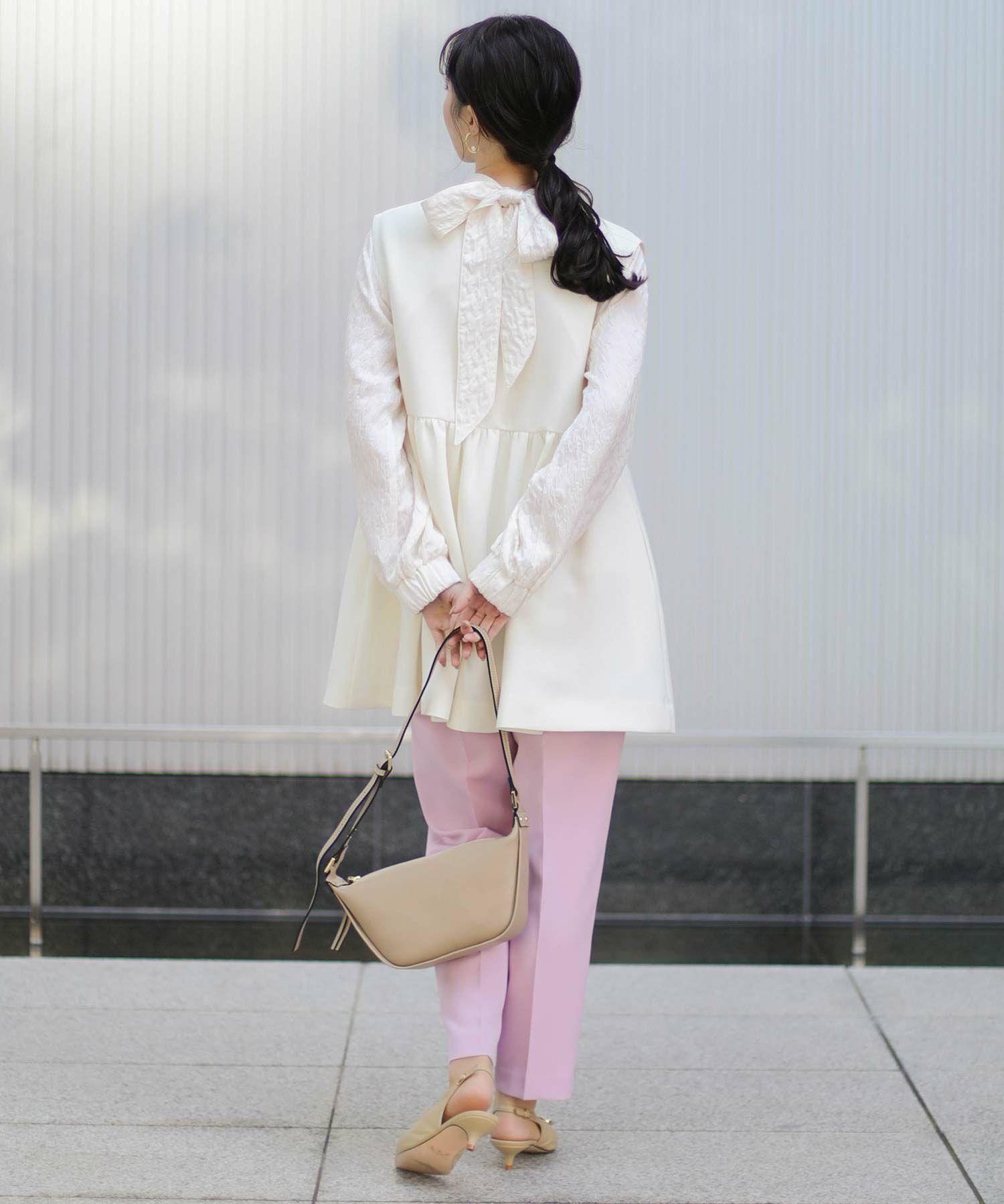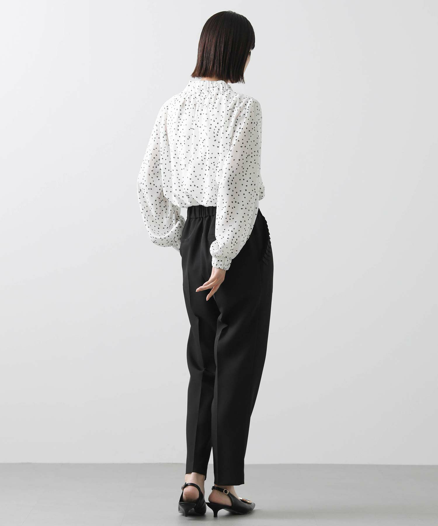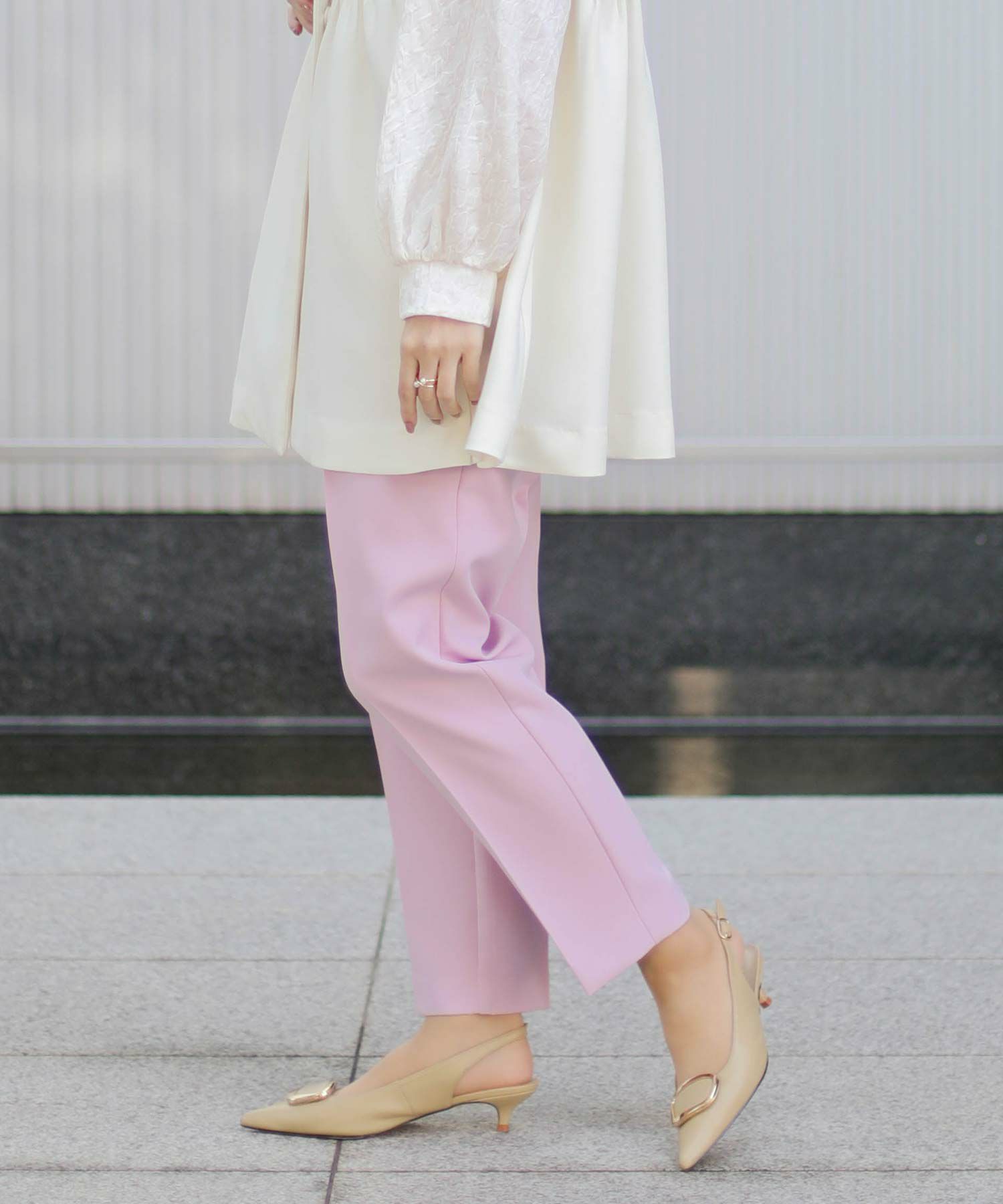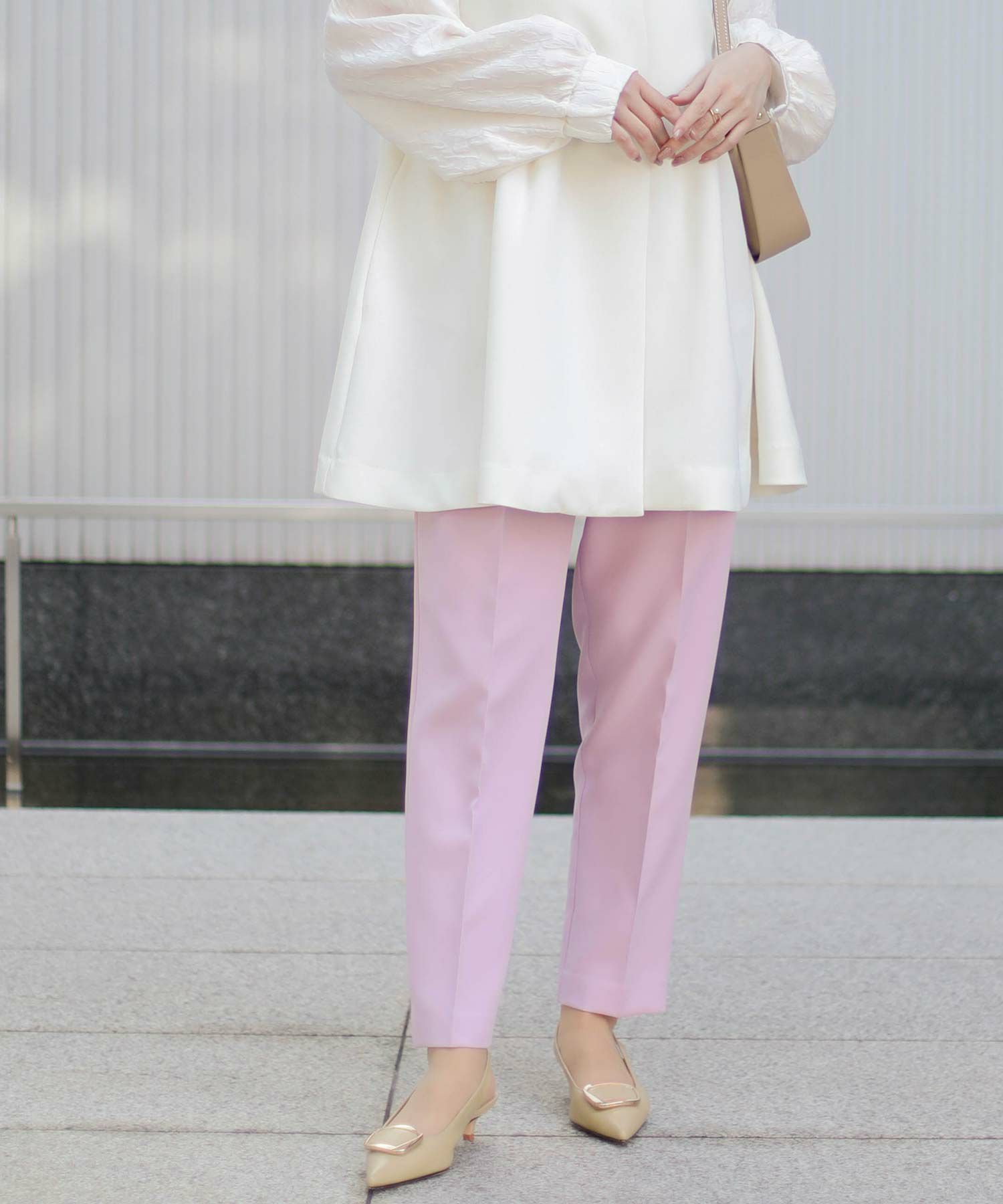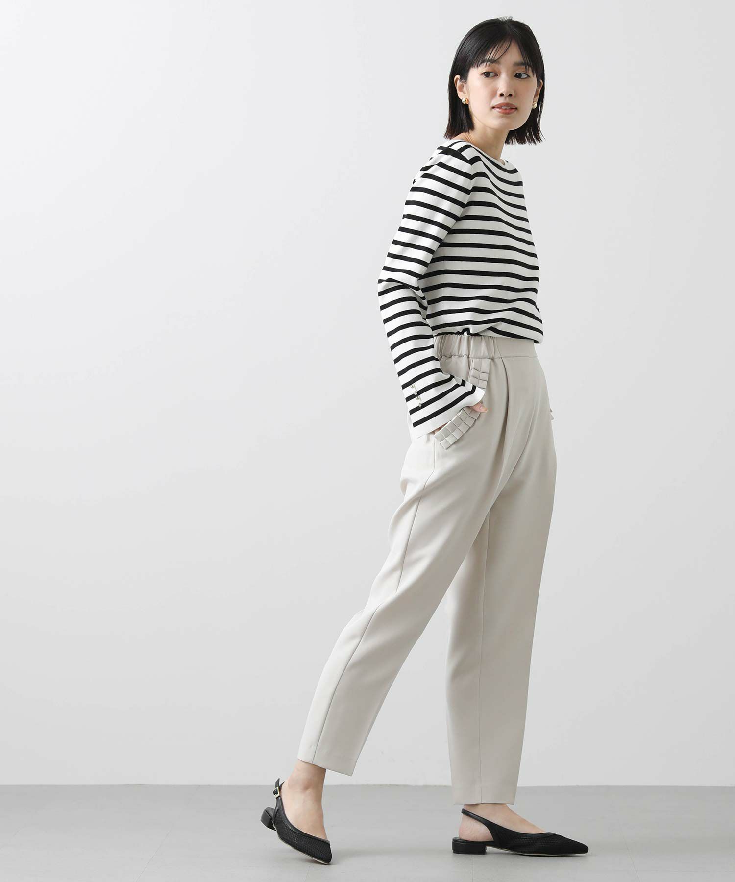 【minkchair(ミンクチェアー)】から、ポケット口のタックフリルが可愛いテーパードパンツをセレクト。