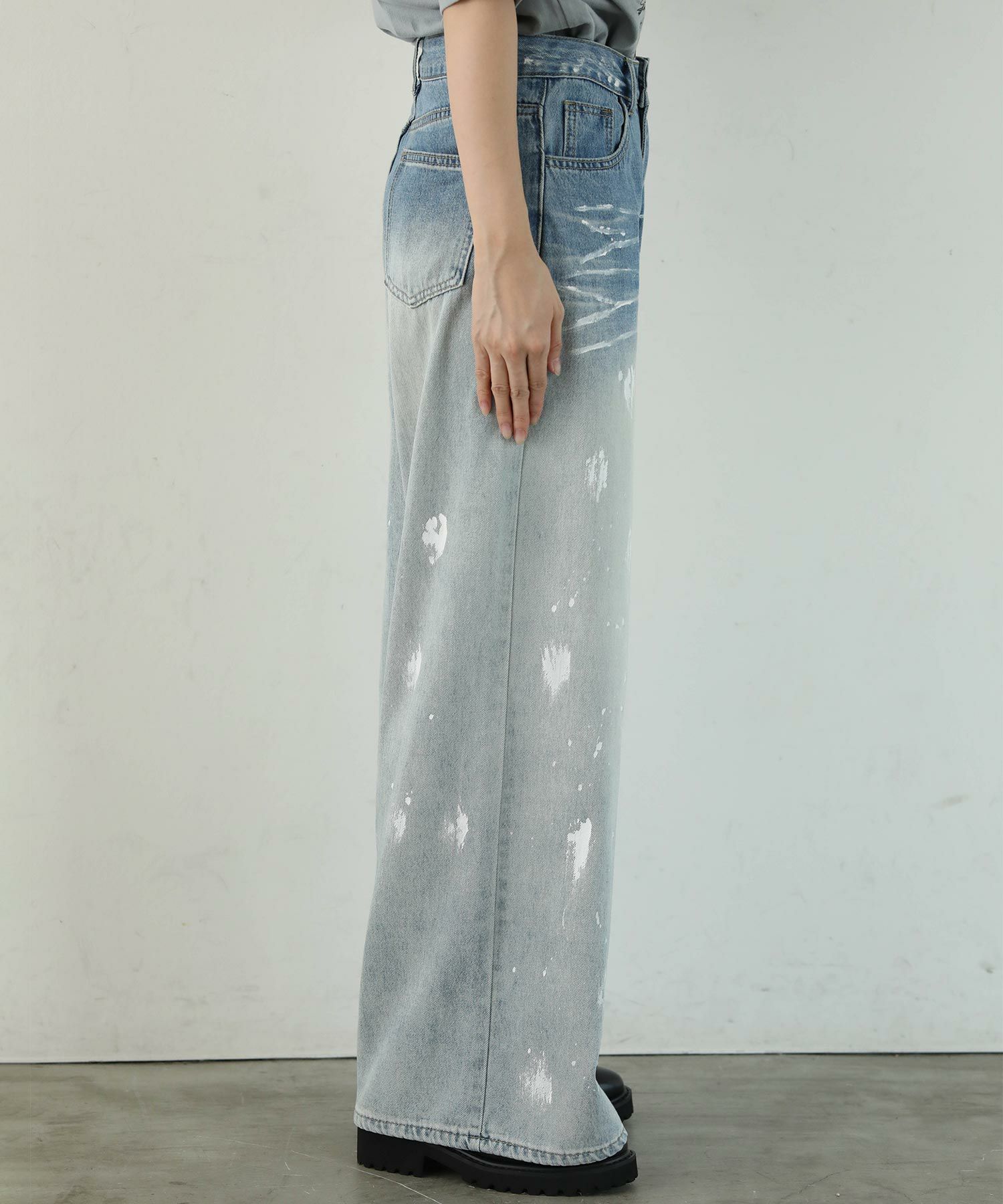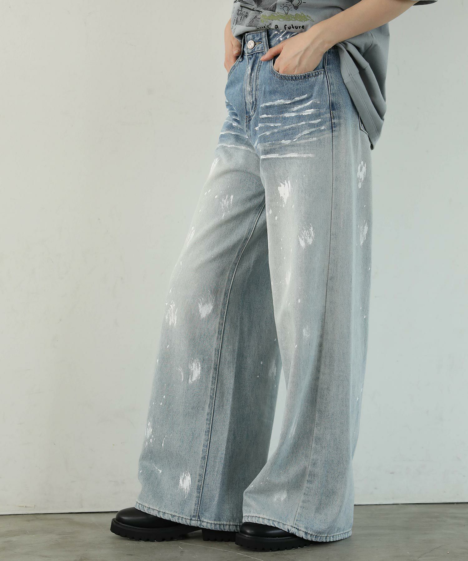 大胆なペイントデザインが目を引くデニムパンツ