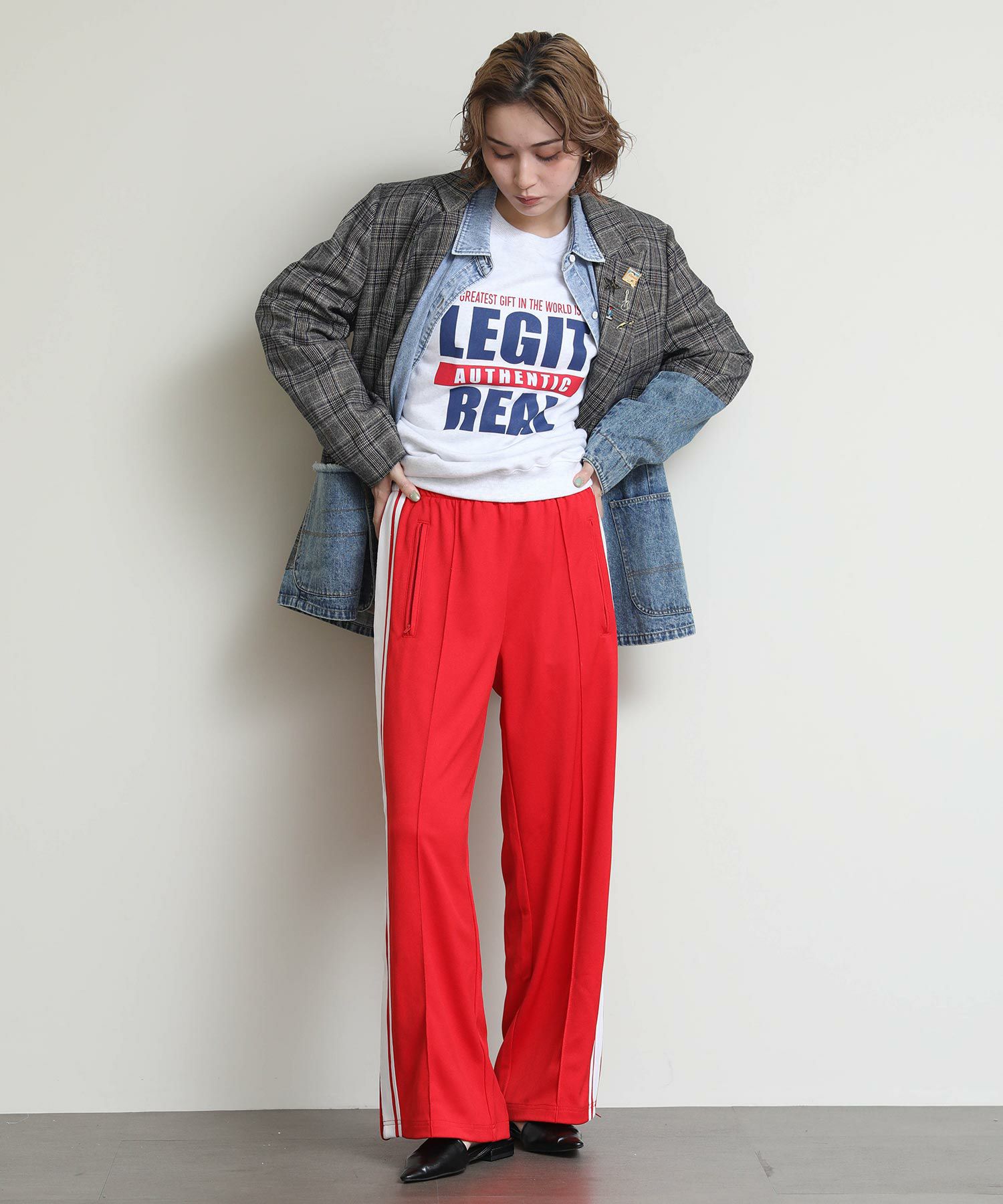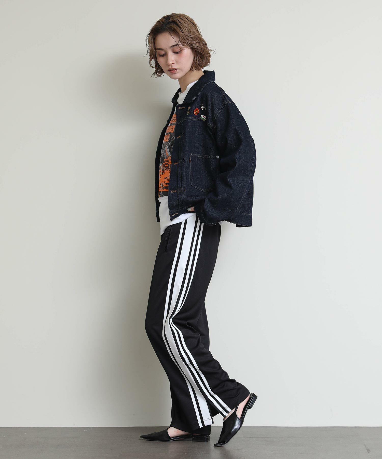 レトロな雰囲気とルーズなシルエットが魅力のアイテムとなっており、ルーズ過ぎず、よりシルエットにこだわった一着で、サイドラインをあえて大きく見せることでスタイルアップ効果も◎