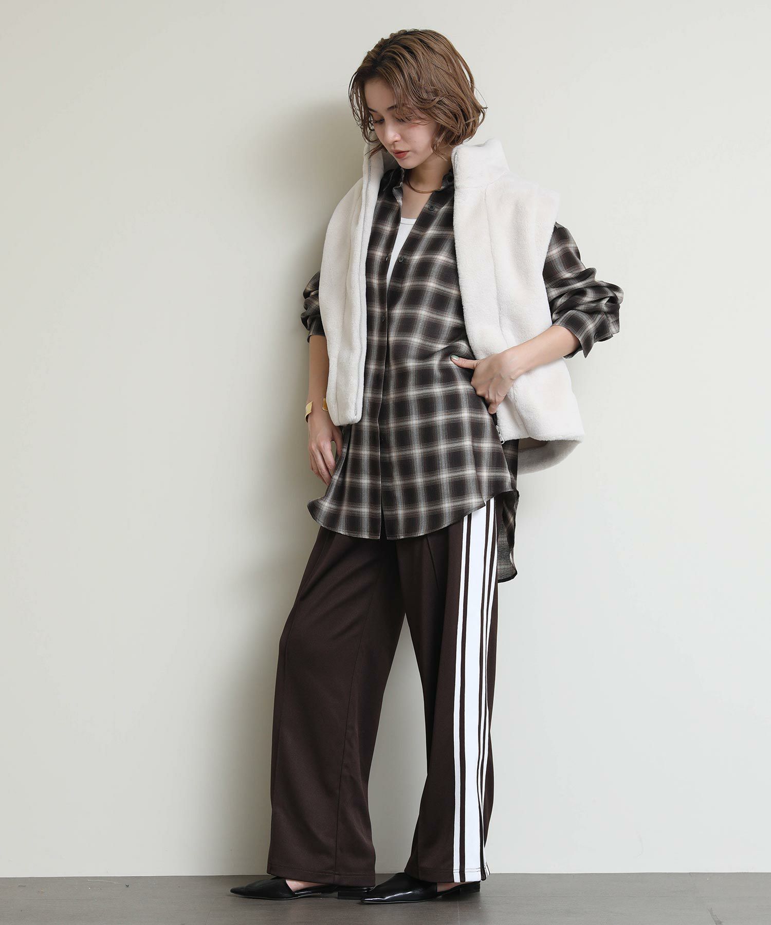 ※着用画像は撮影状況、光の当たり具合で色みが違って見える場合がございます。実際の色みについては、画像一覧の最後に掲載している詳細画像をご参照ください。