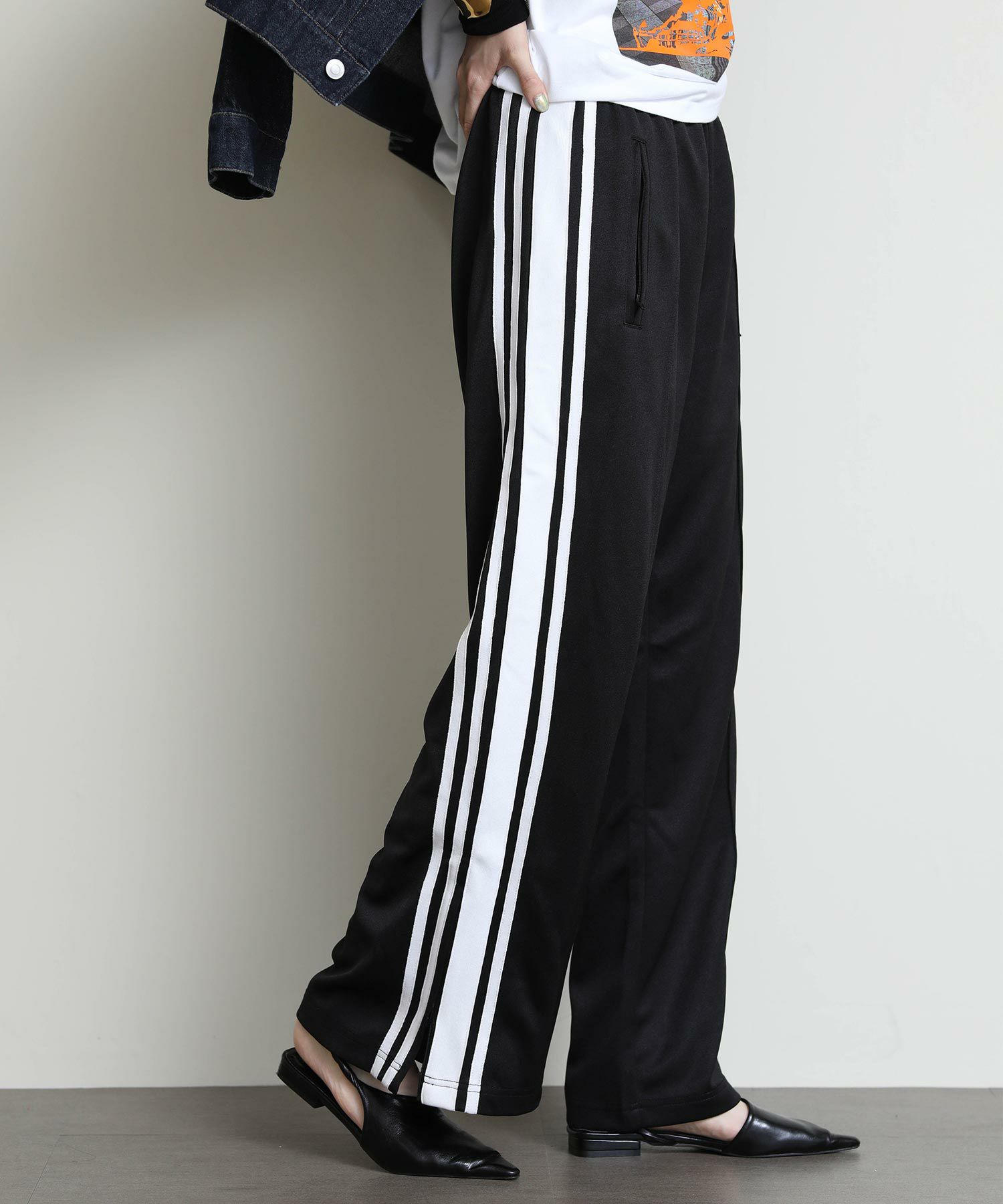 90年代のトラックパンツをインスピレーション源にデザインしたルーズパンツ。