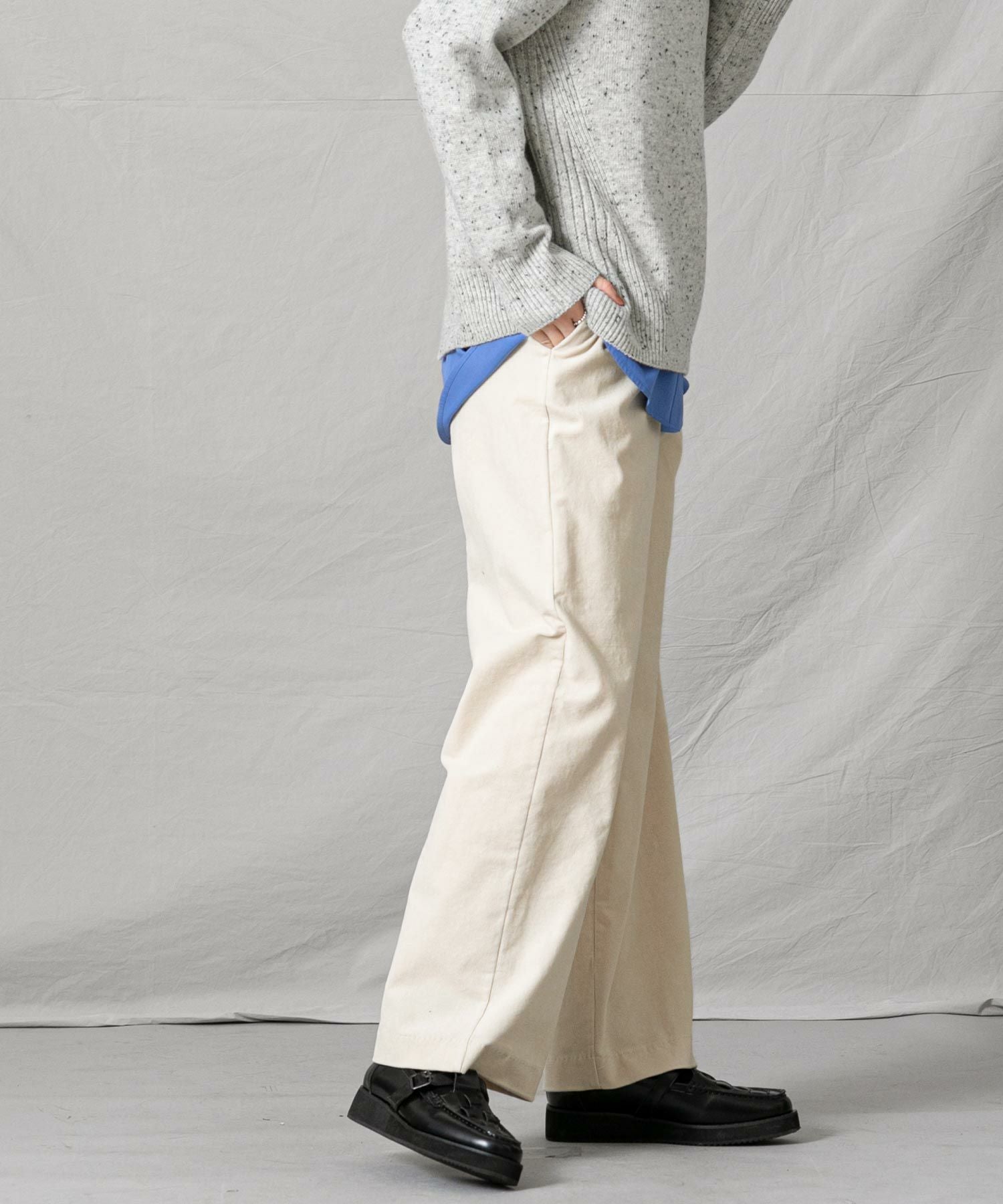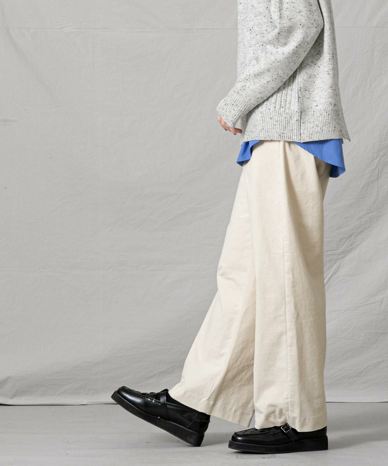 足のラインを拾わないワイドストレートのシルエットも嬉しいポイントです。