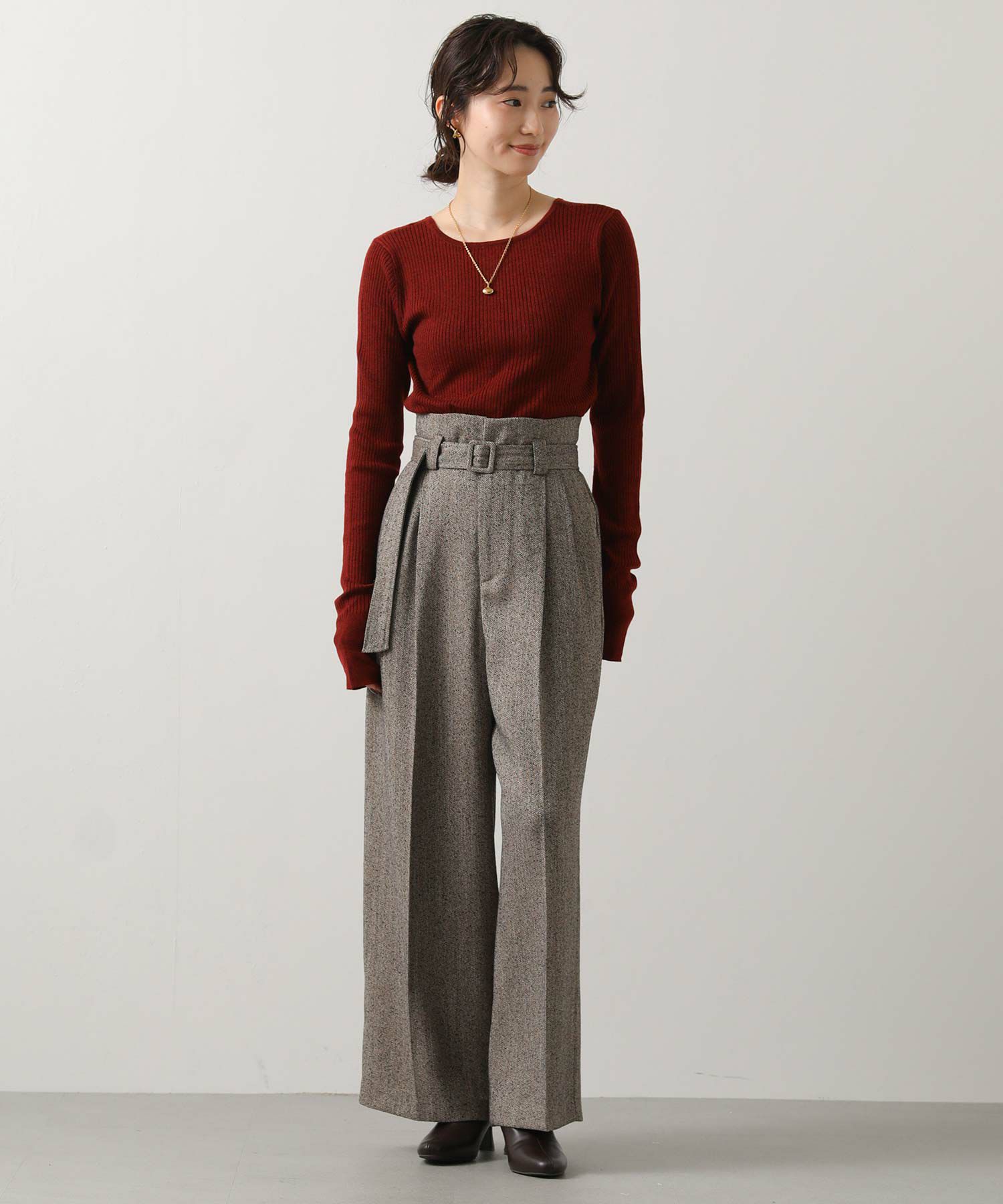 秋冬らしい温かみのある表情が魅力的なツイードパンツ。