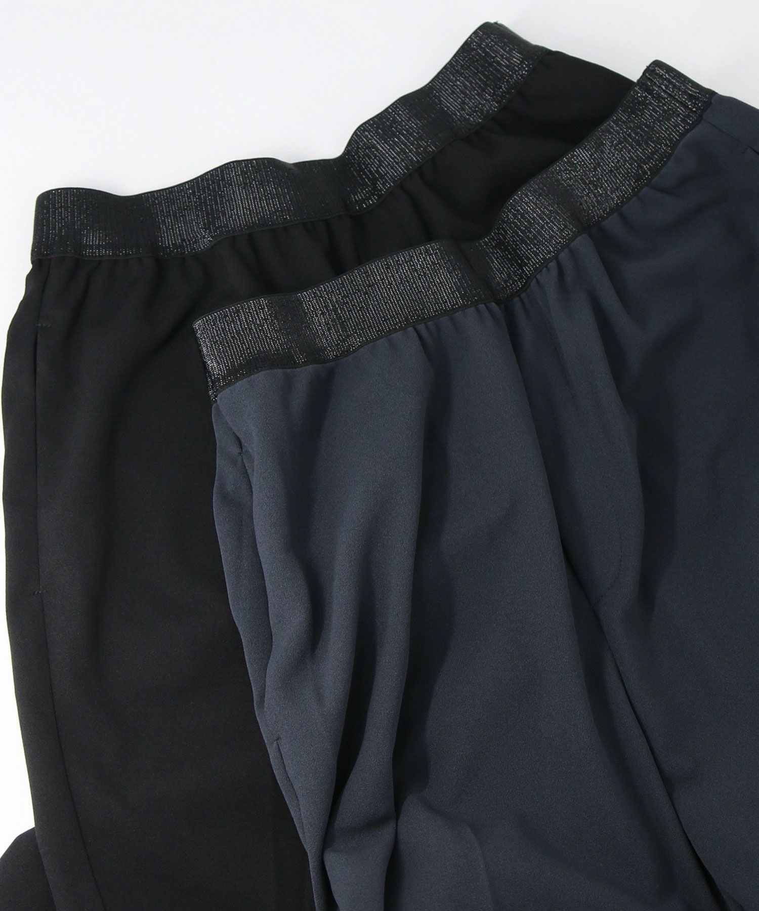 さらっと軽やかなストレッチジョーゼットを使用し、ポイントのラメ入りベルトは総ゴムで穿き心地◎