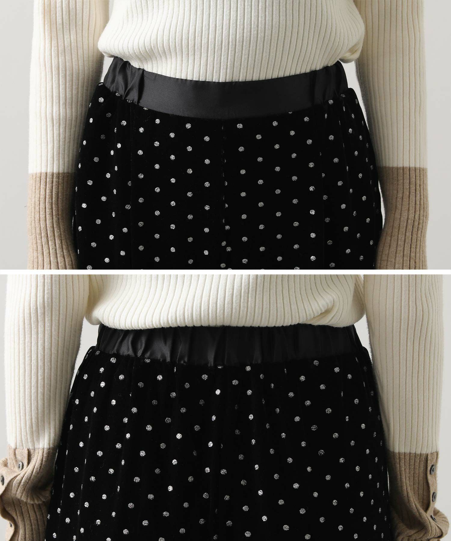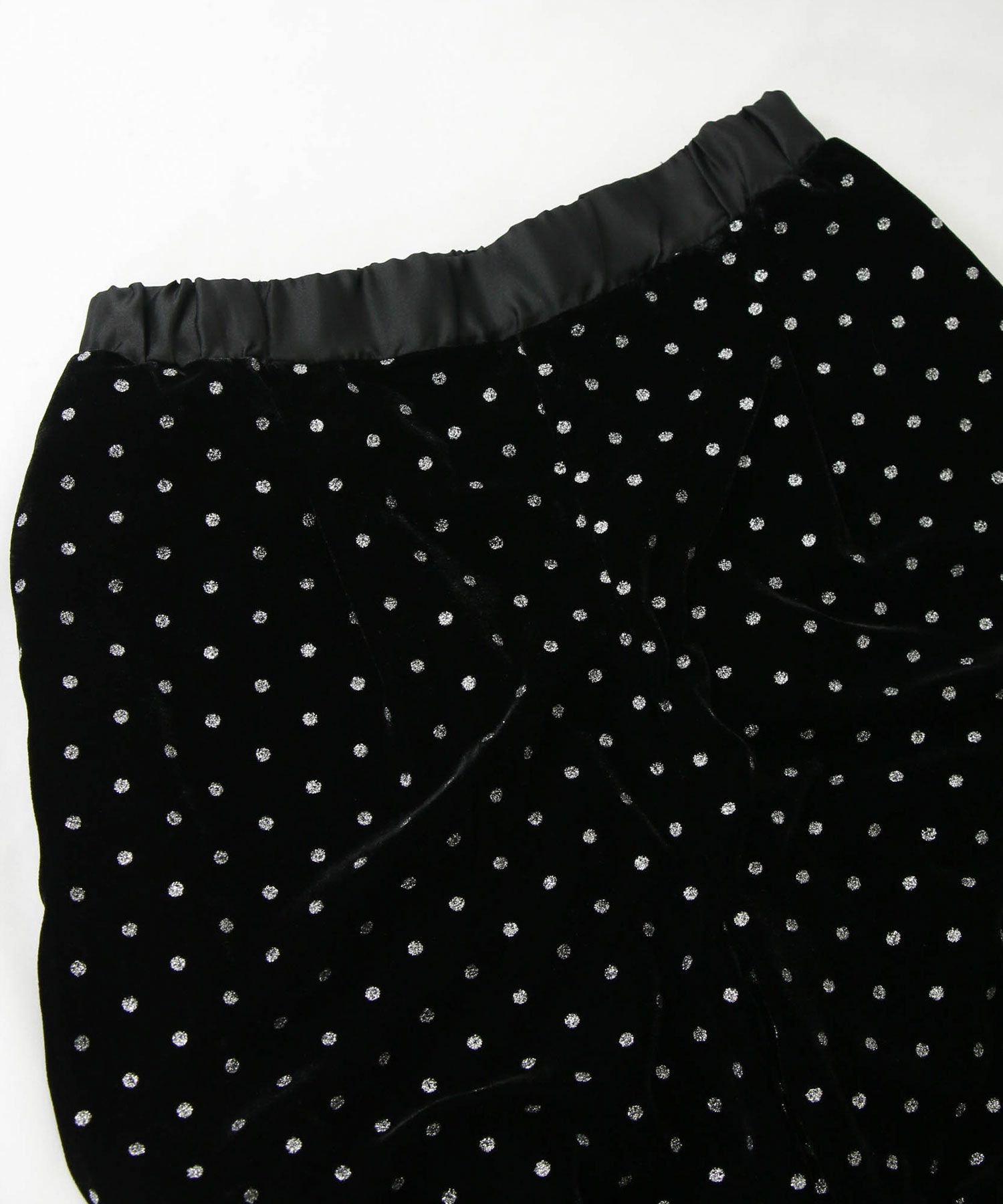 今年注目素材のベロアにラメドットのプリントを施しています。