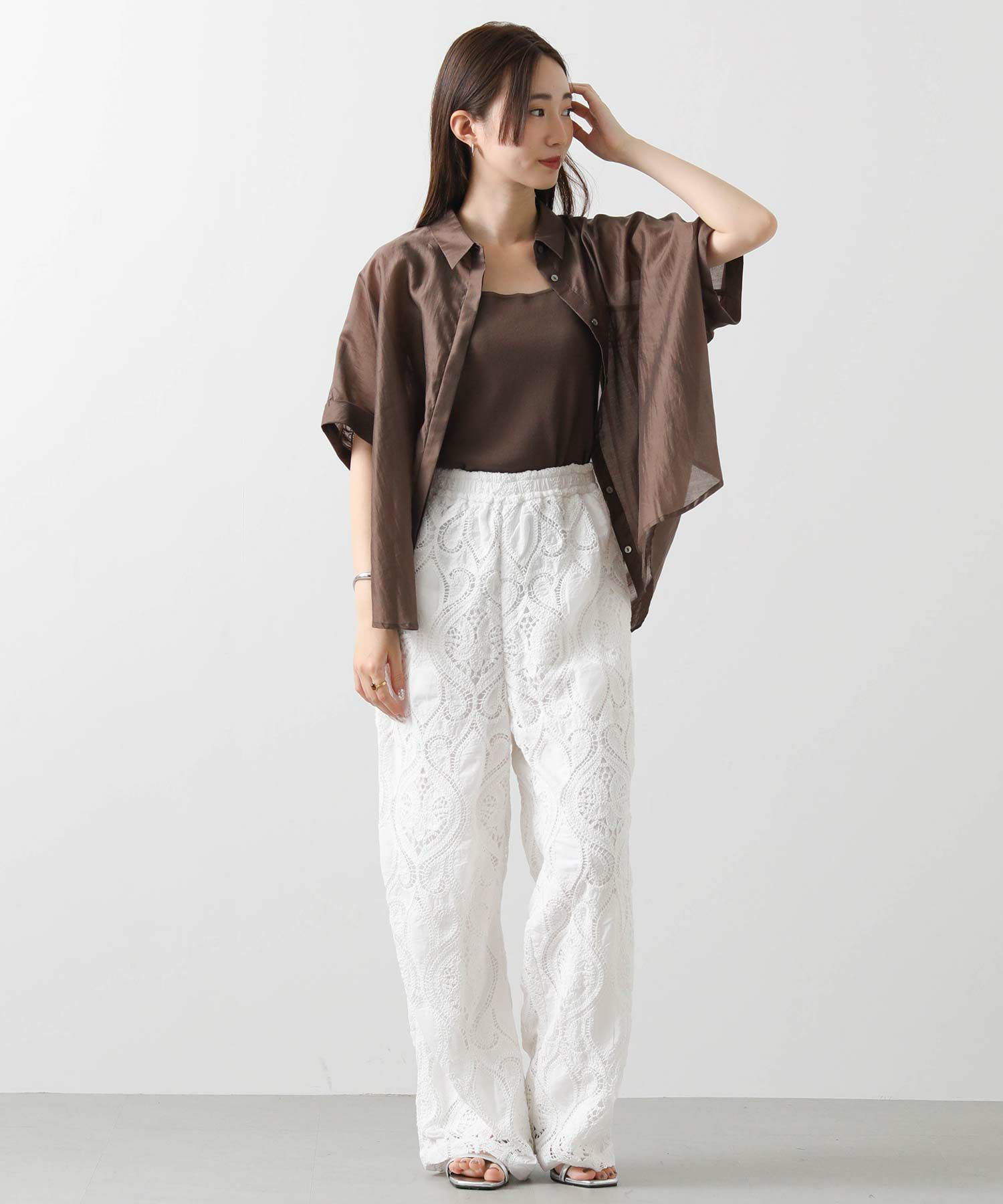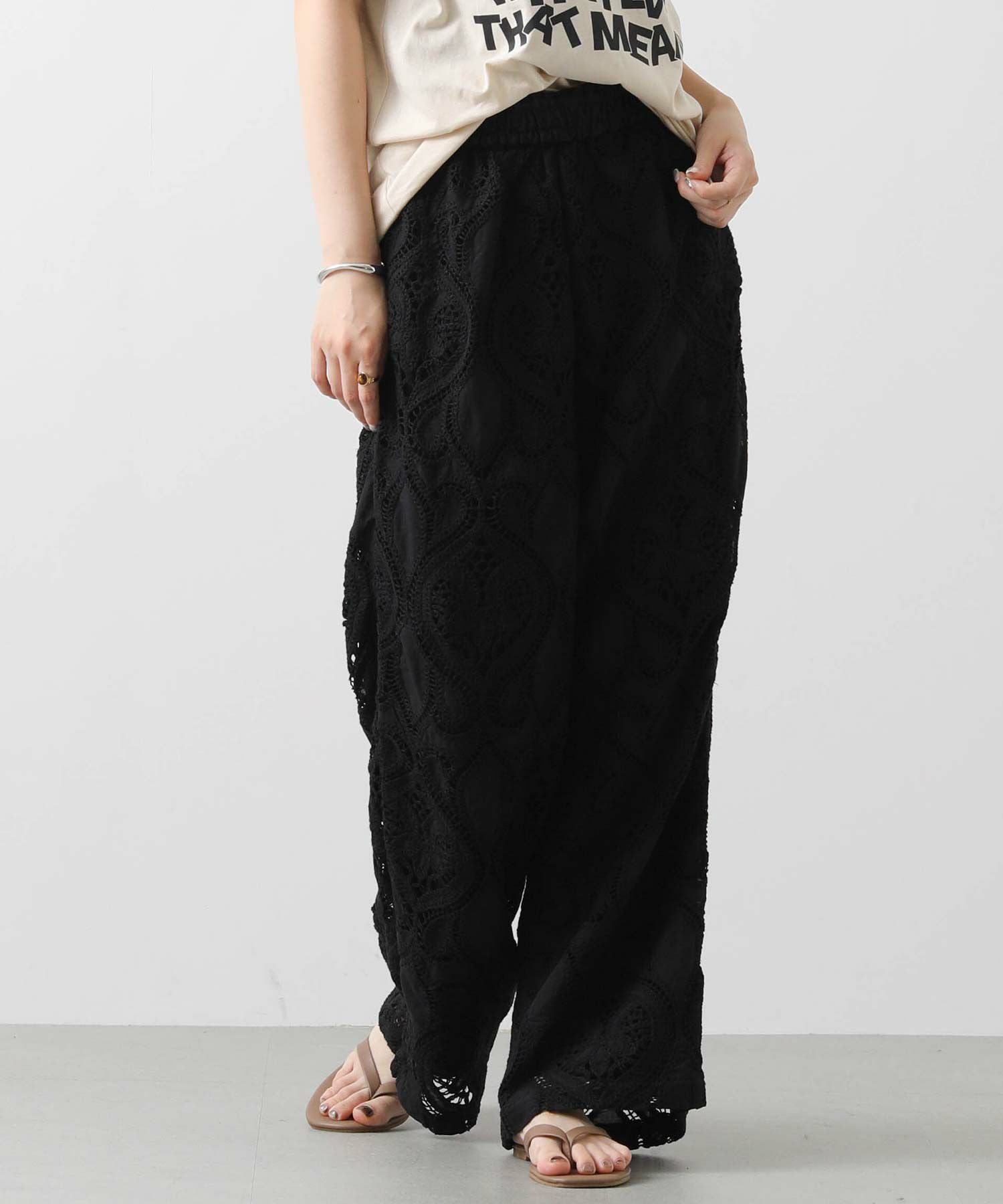ざっくりとした刺繍レースを全面に使用したイージーパンツ。