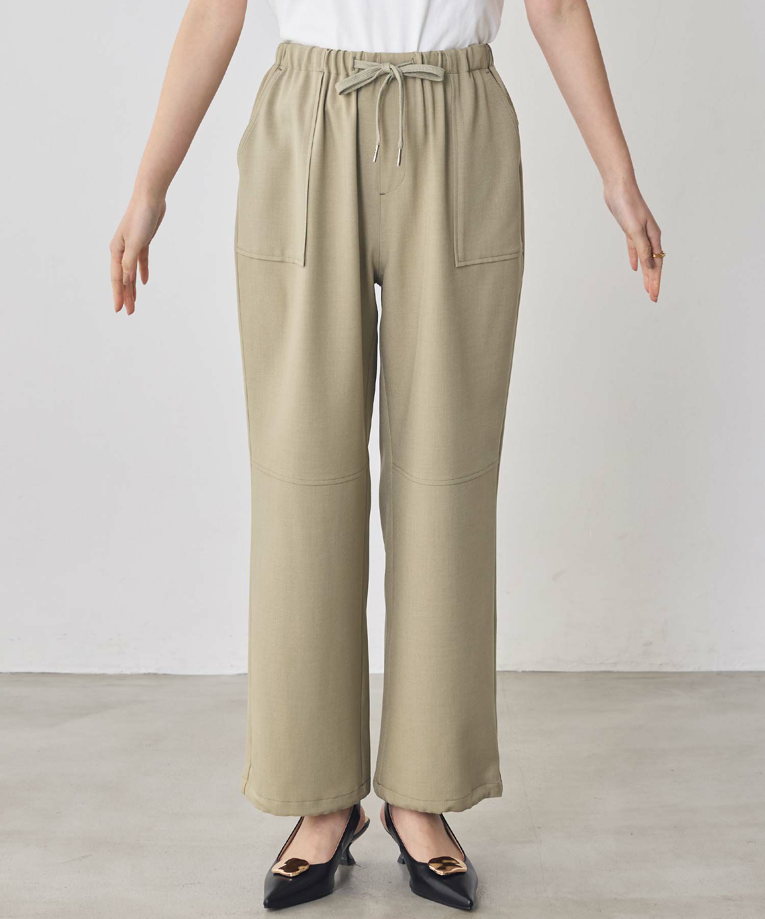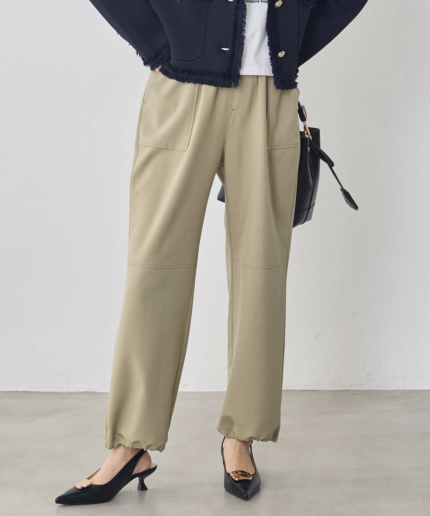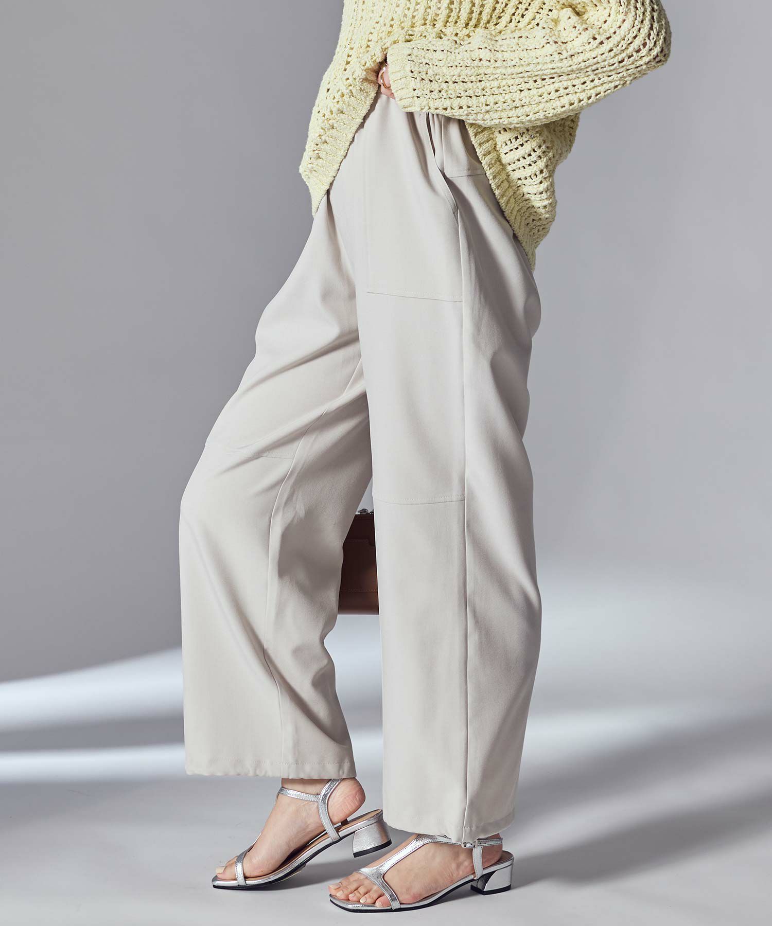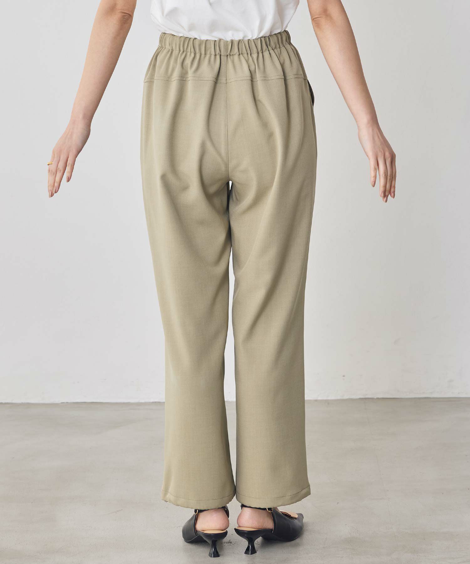 ウエストは総ゴム仕様でラフな着用感ながらも、脚のラインを綺麗に魅せてくれるシルエットにこだわった1着。