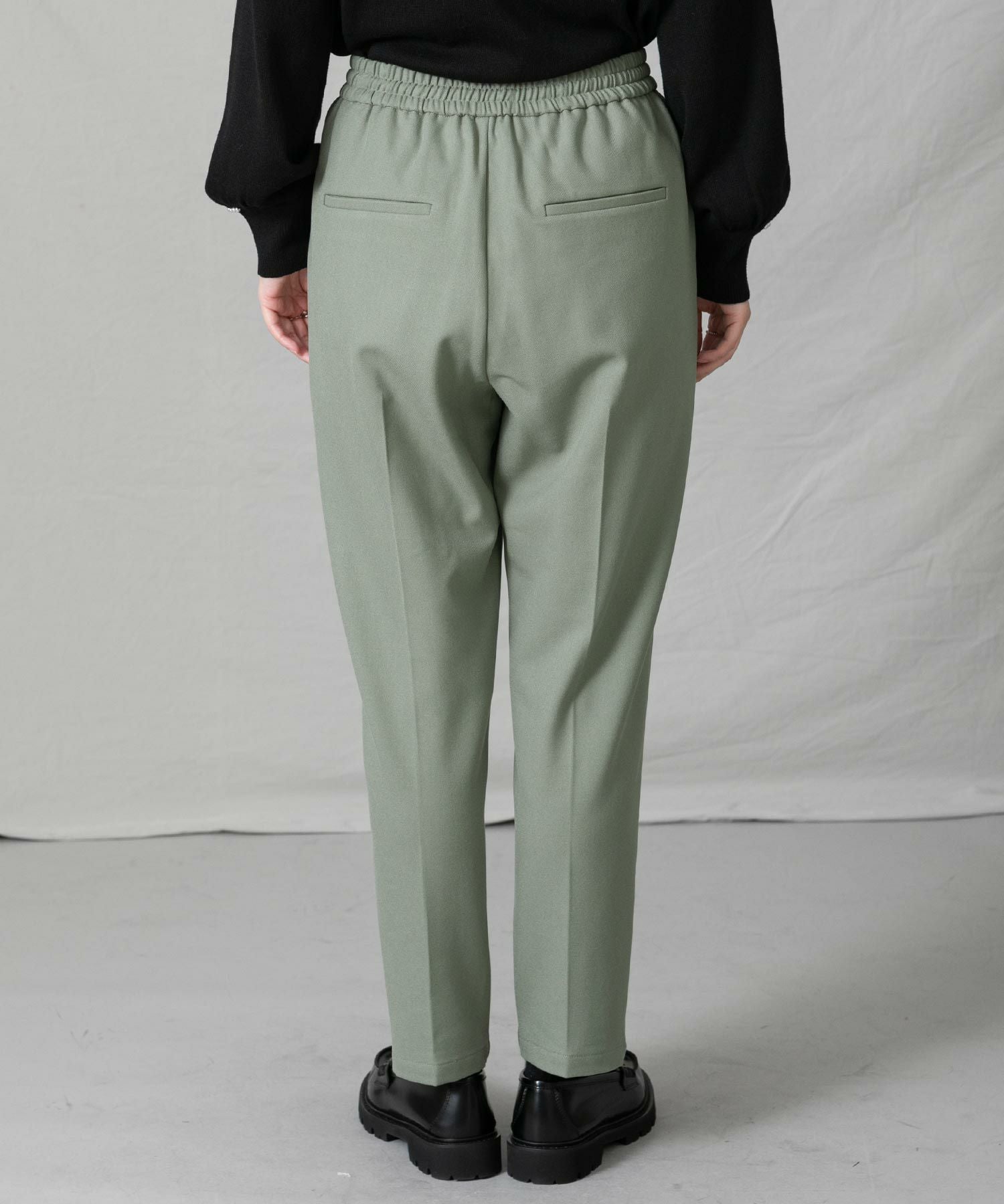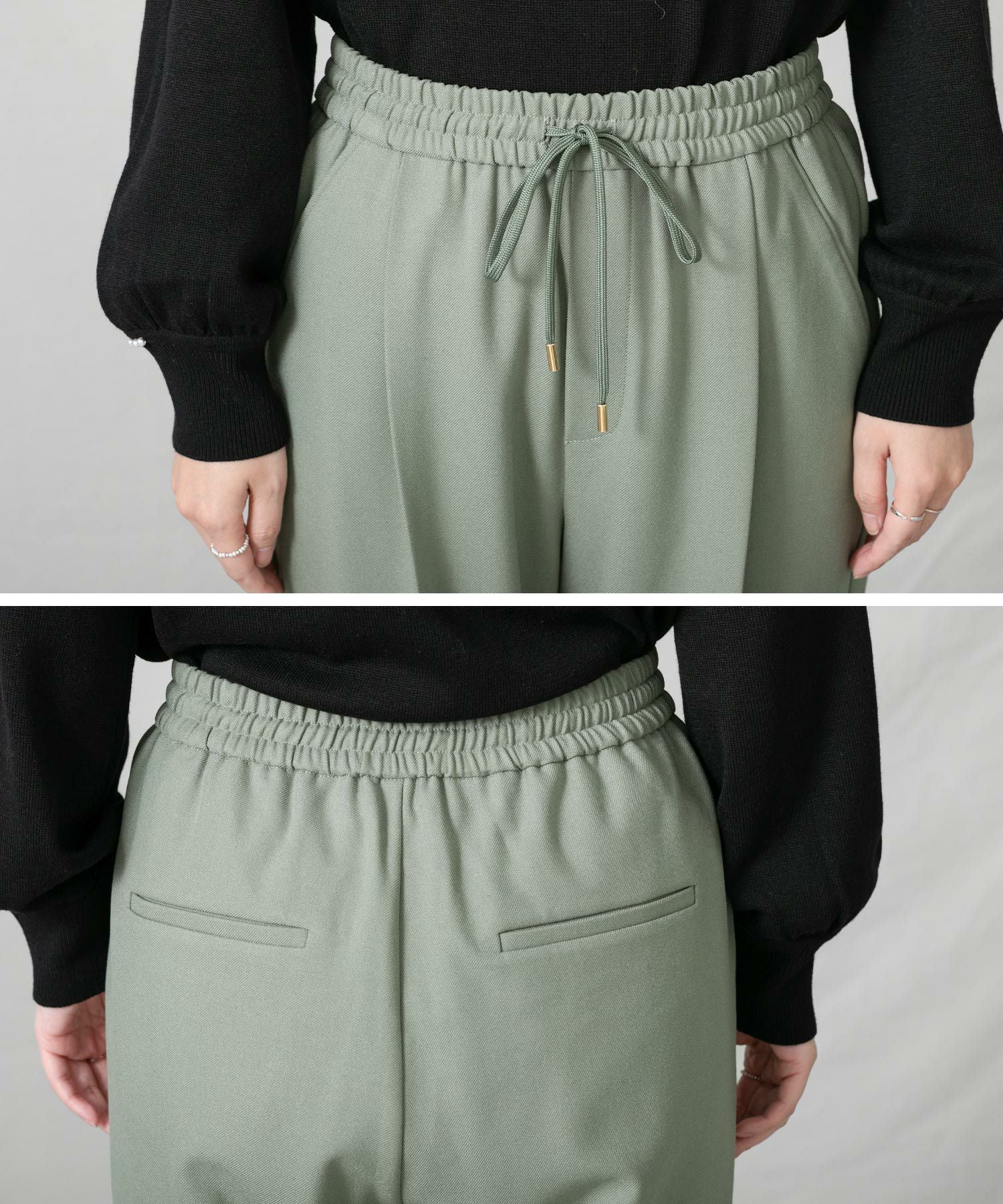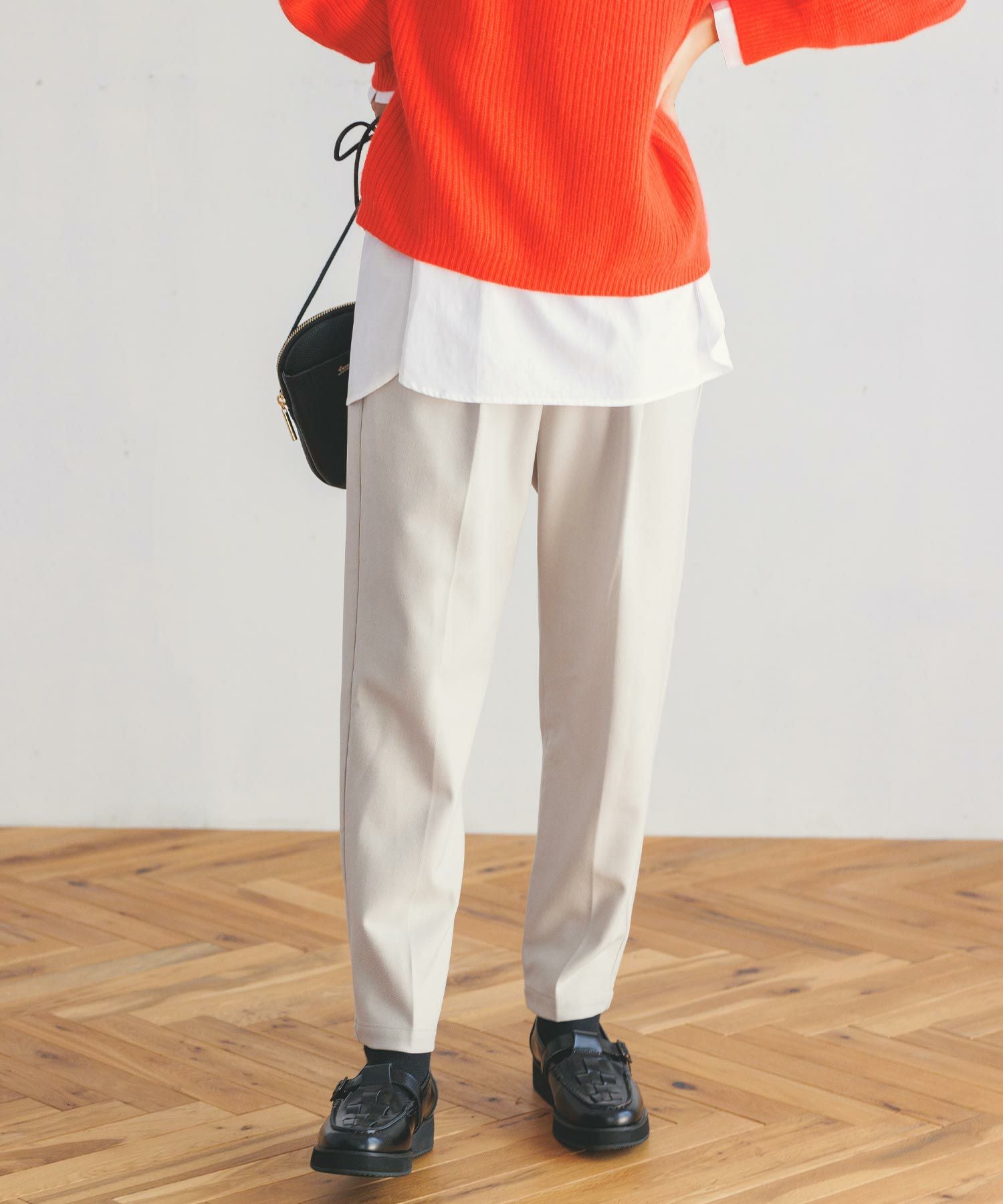 総ゴムのイージーな仕様ながら、足をきれいに見せてくれるシルエットが魅力の1本。ワンタックが腰回りの気になる部分をカバーしてくれます。