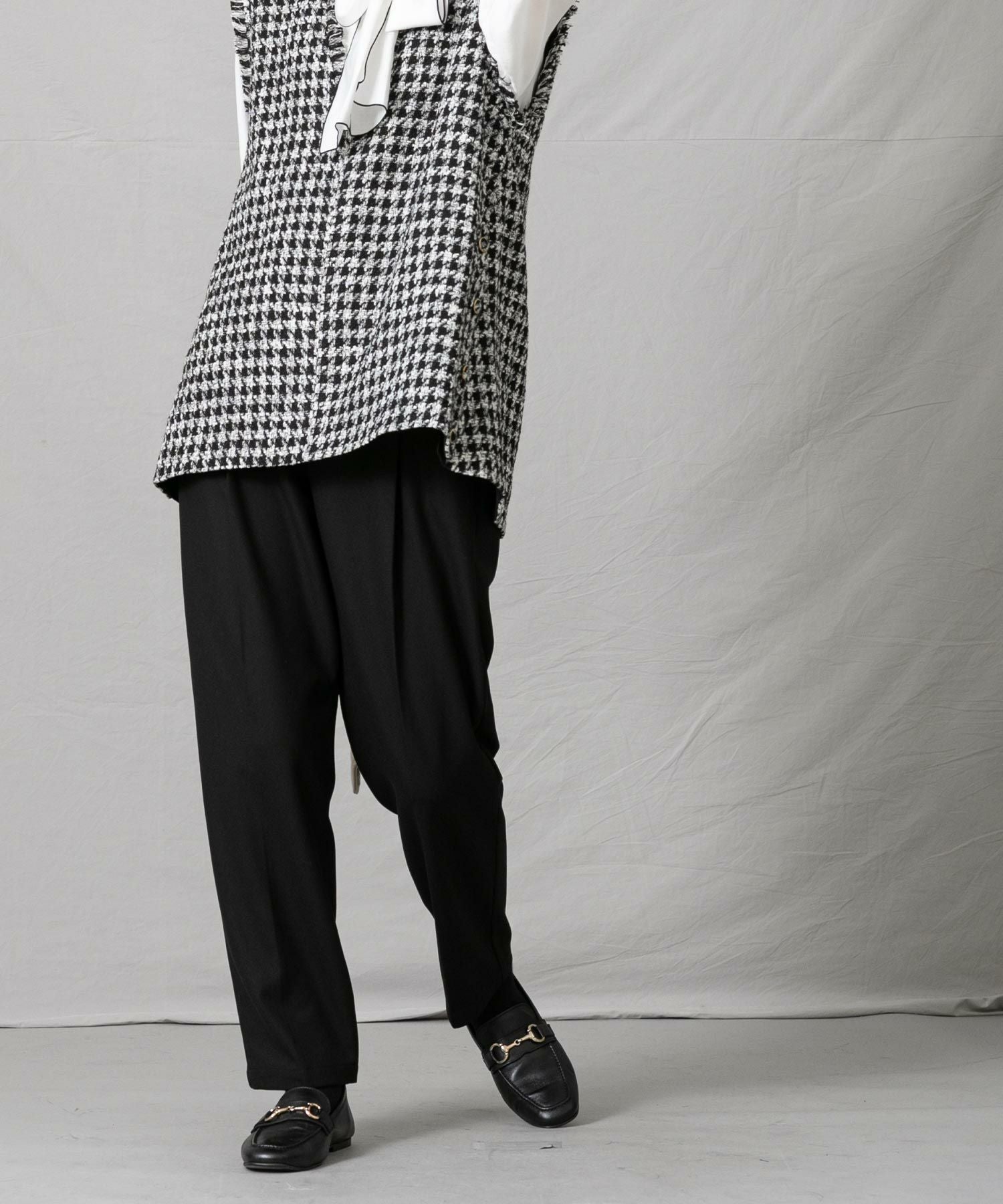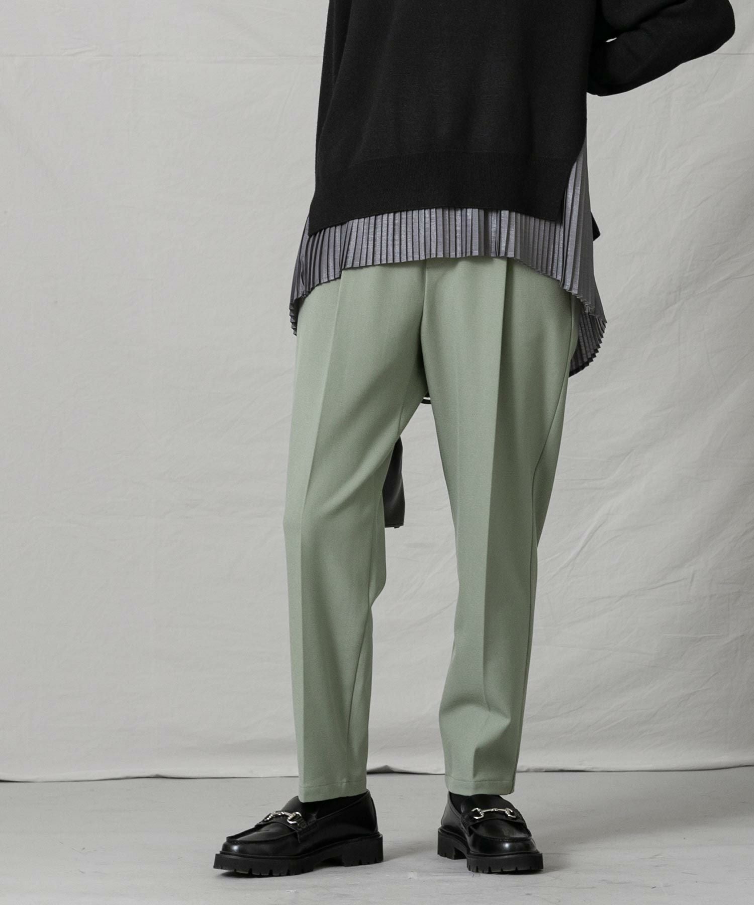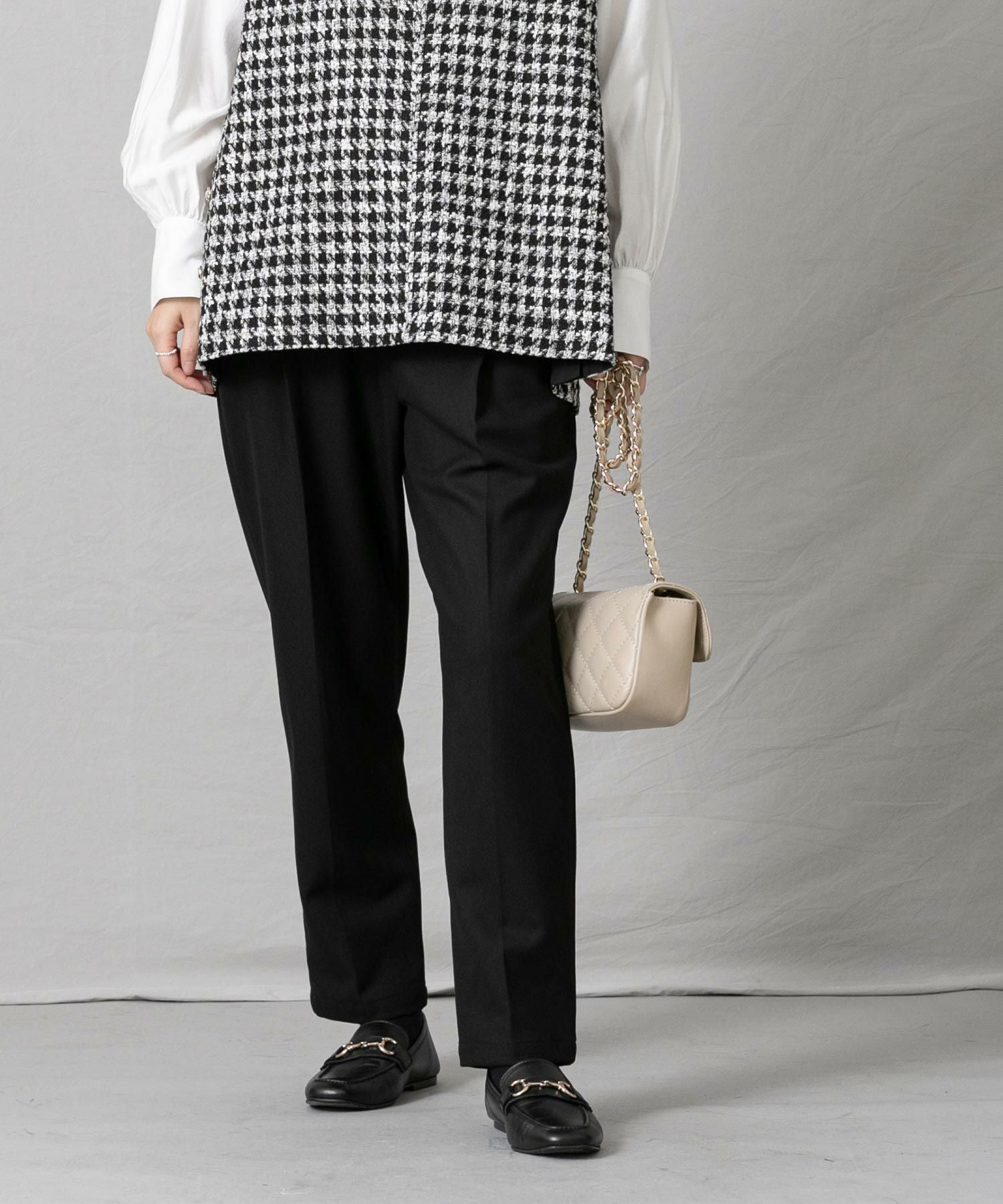 総ゴムのイージーな仕様ながら、足をきれいに見せてくれるシルエットが魅力の1本。ワンタックが腰回りの気になる部分をカバーしてくれます。
