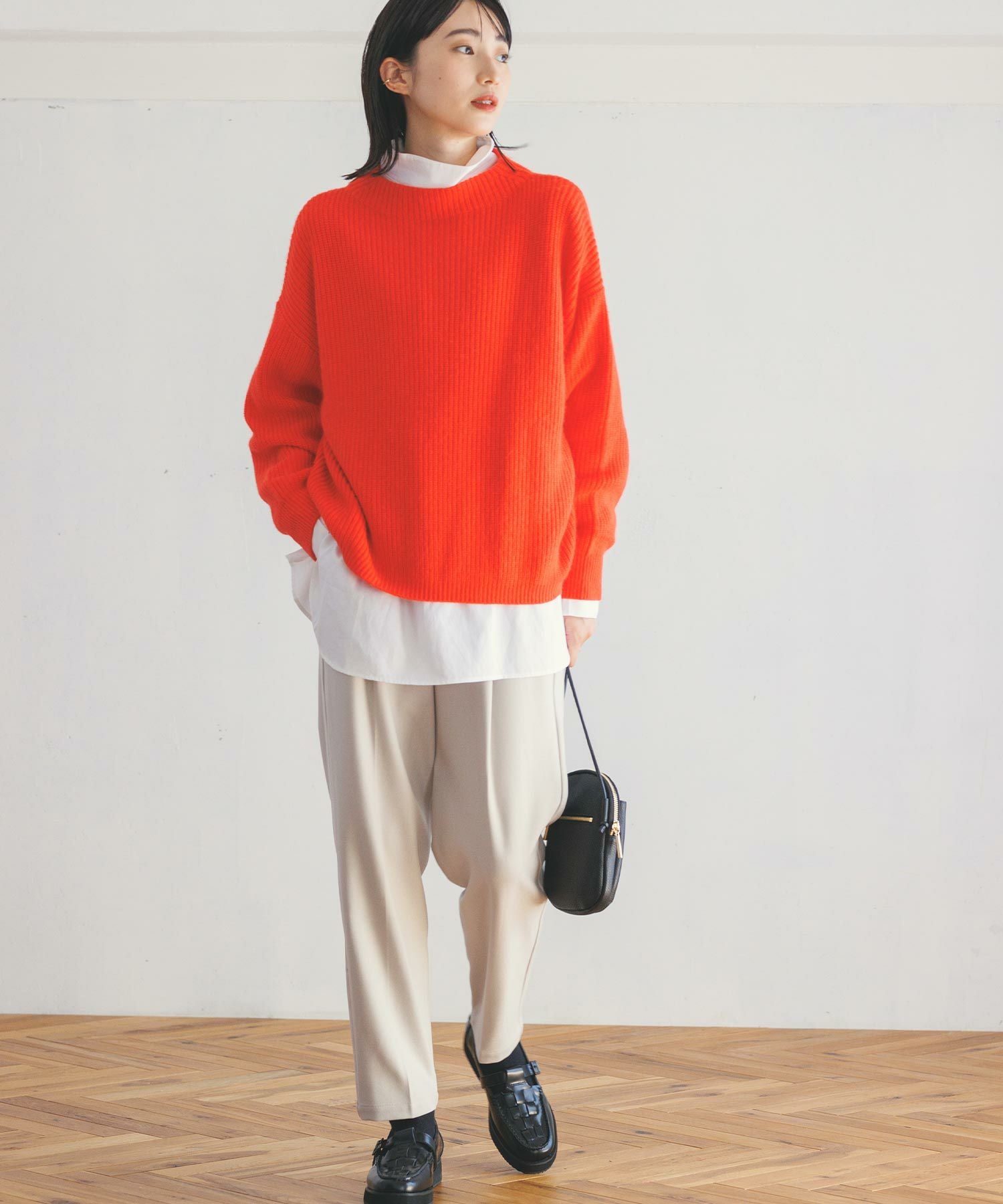 素材は毛羽立ちや毛玉になりにくく、糸の特性により暖かさが持続する生地を使用。ストレッチ性があるので動きやすく型崩れも防いでくれます。様々なシーンに愛用いただける万能アイテムです。