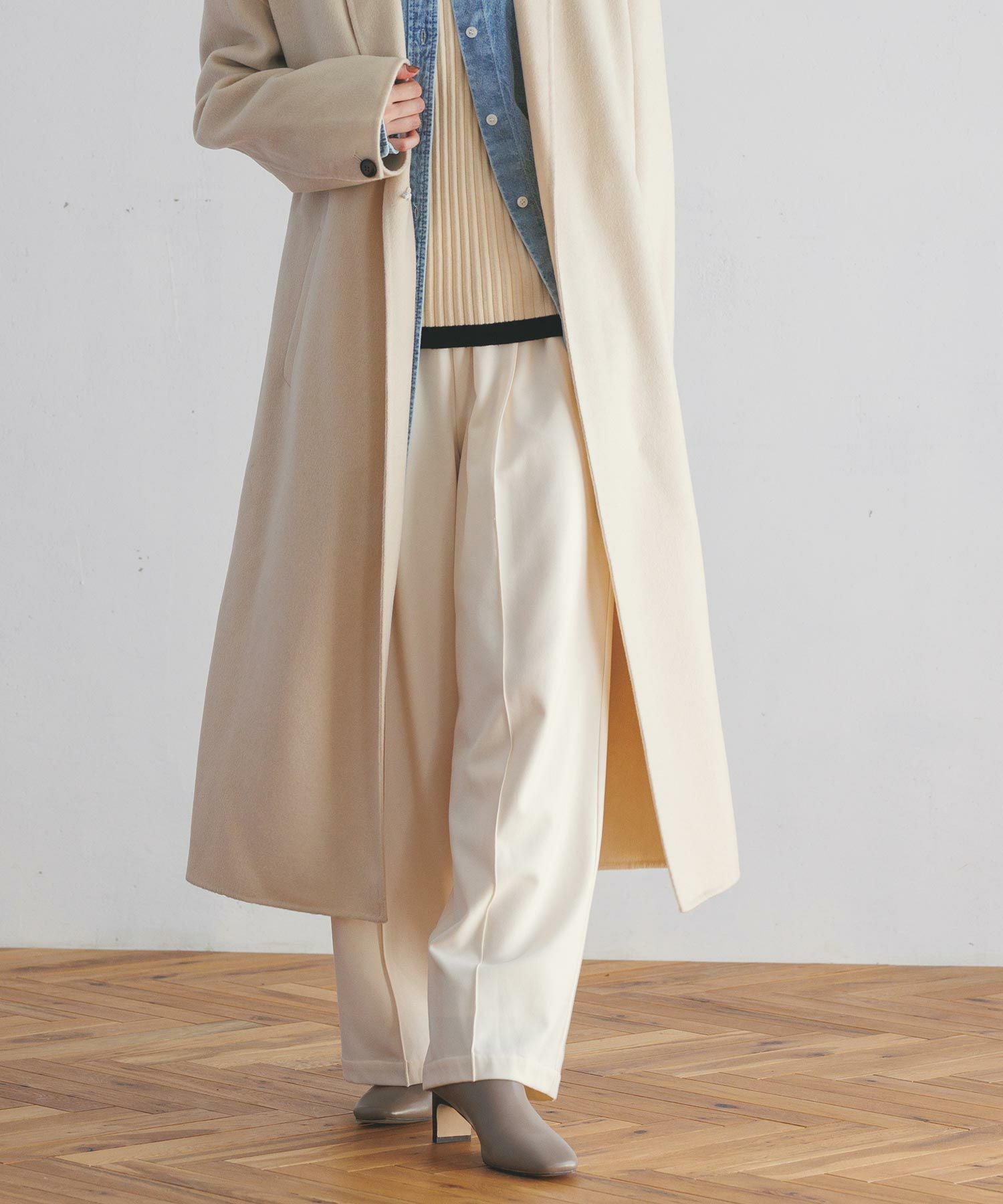 センターのピンタックでキレイめな印象で穿いていただけます。