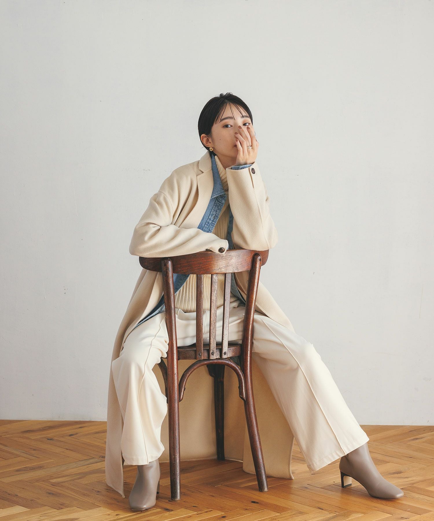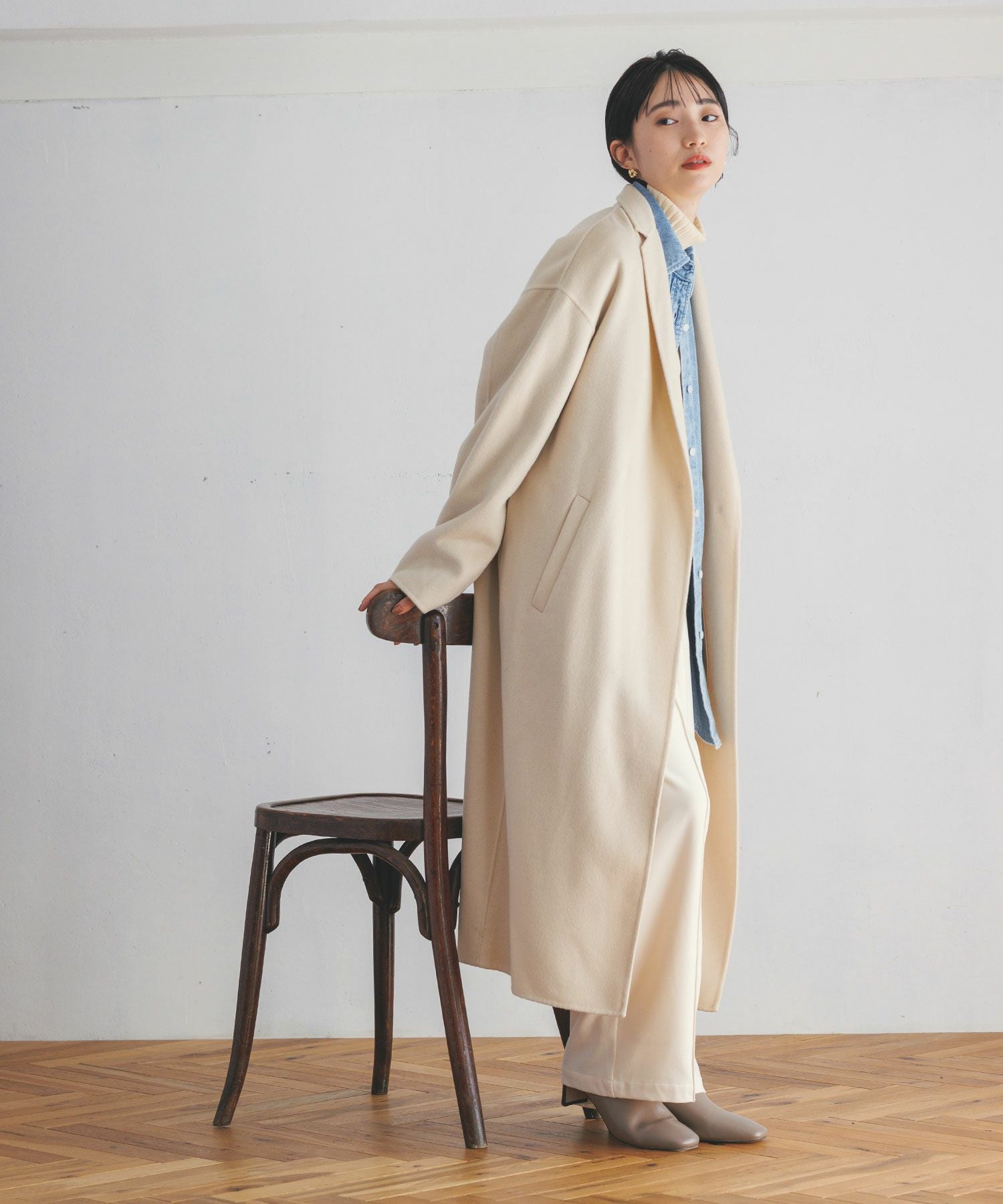 ※着用画像は撮影状況、光の当たり具合で色みが違って見える場合がございます。実際の色みについては、画像一覧の最後に掲載している詳細画像をご参照ください。