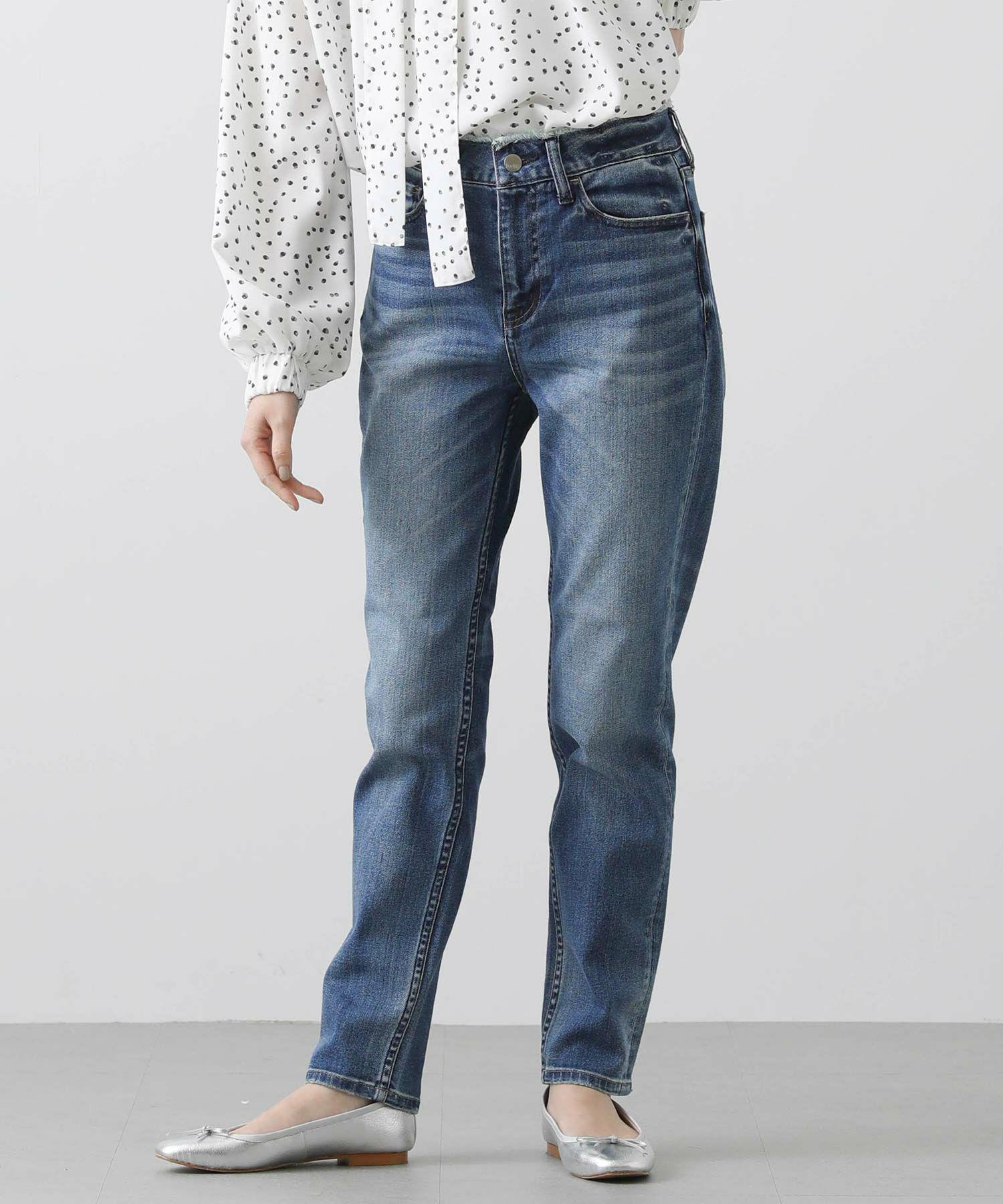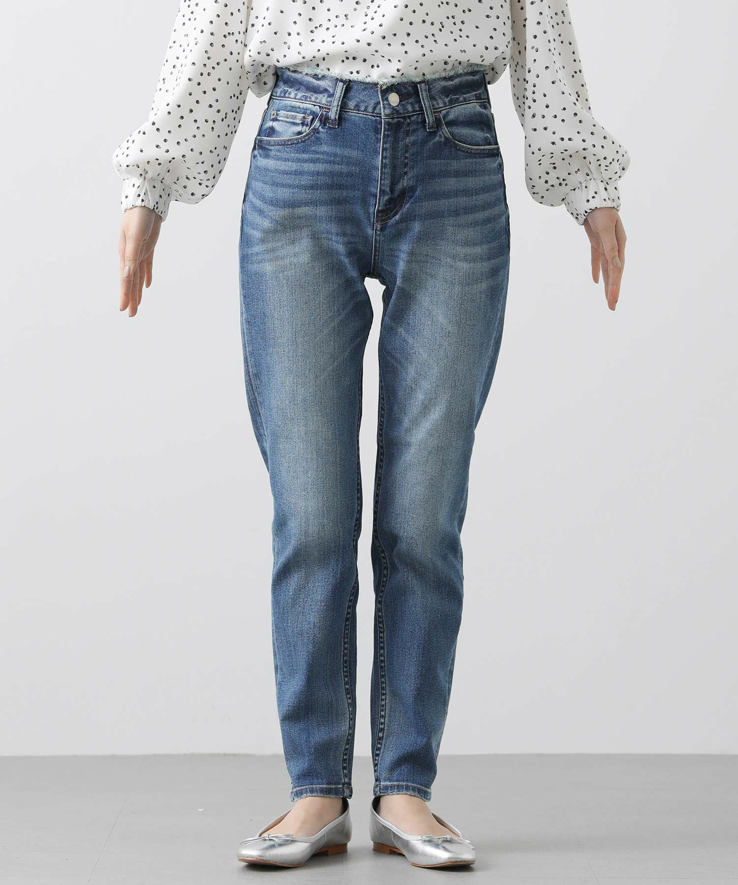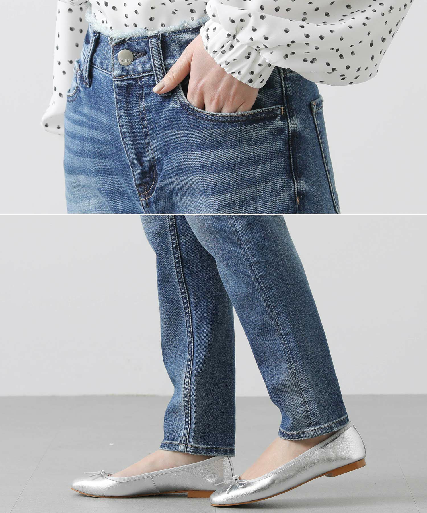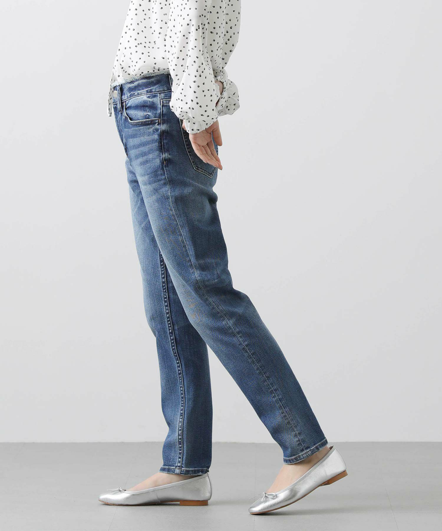 ぴたぴたになりすぎず、少しのゆるみが逆に脚をすっきりと見せてくれるボーイフレンドフィットです。カイハラの3者混ハイパワーストレッチデニム地採用で、従来のポリウレタンストレッチより伸縮性も大幅にUPしました。