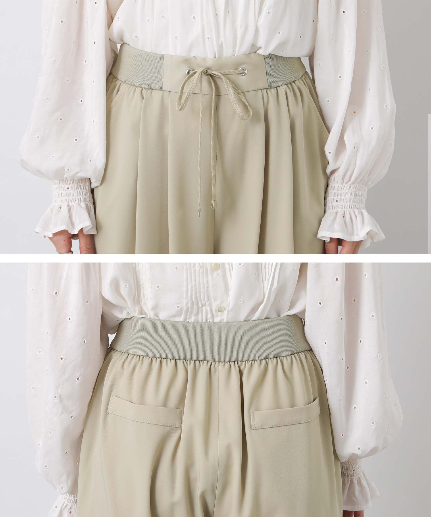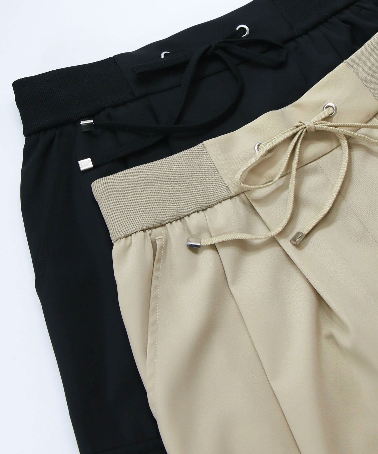 ウエストはリブ仕様でリラックス感がありながら、落ち感のある素材とスッキリしたシルエットでラフに見えすぎないバランスに。