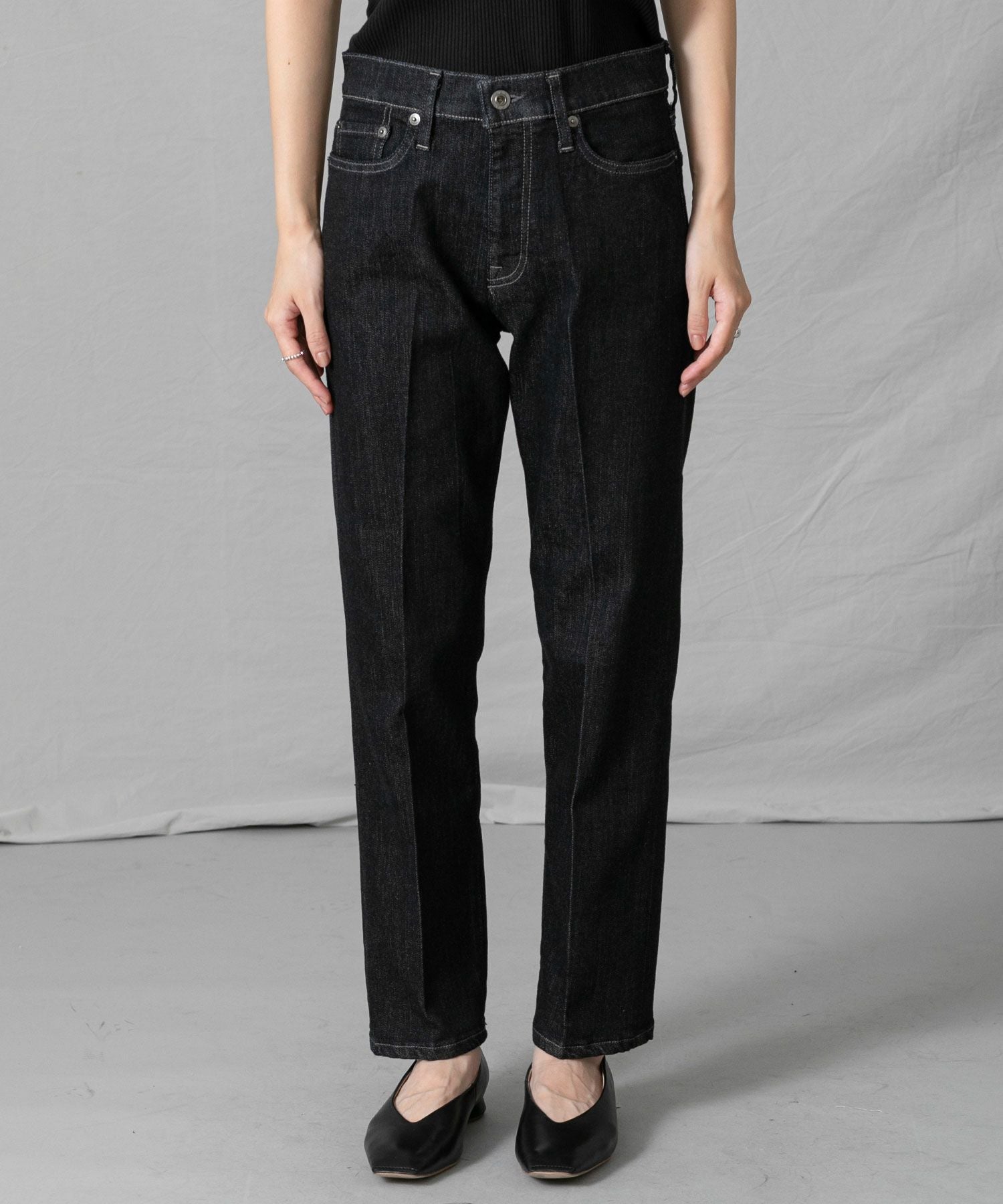 深めの股上にウエストからヒップにかけて優しい丸みを持たせ、裾にかけて程よくテーパードしたシルエット。センタープレス加工を施し、キレイめなストレートに仕上げています。