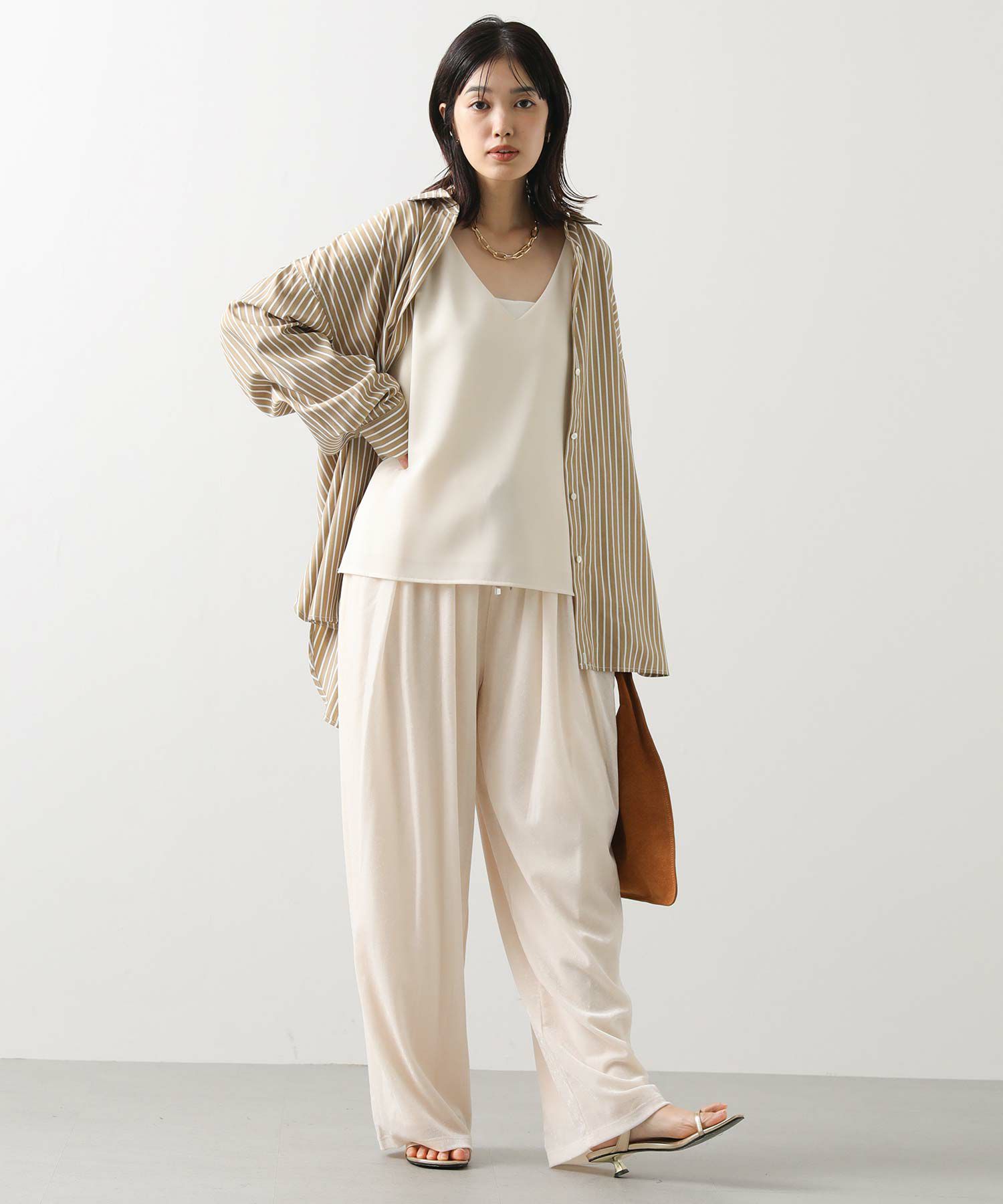 シンプルなタックデザインで、ゆったりとしたワイドシルエット。