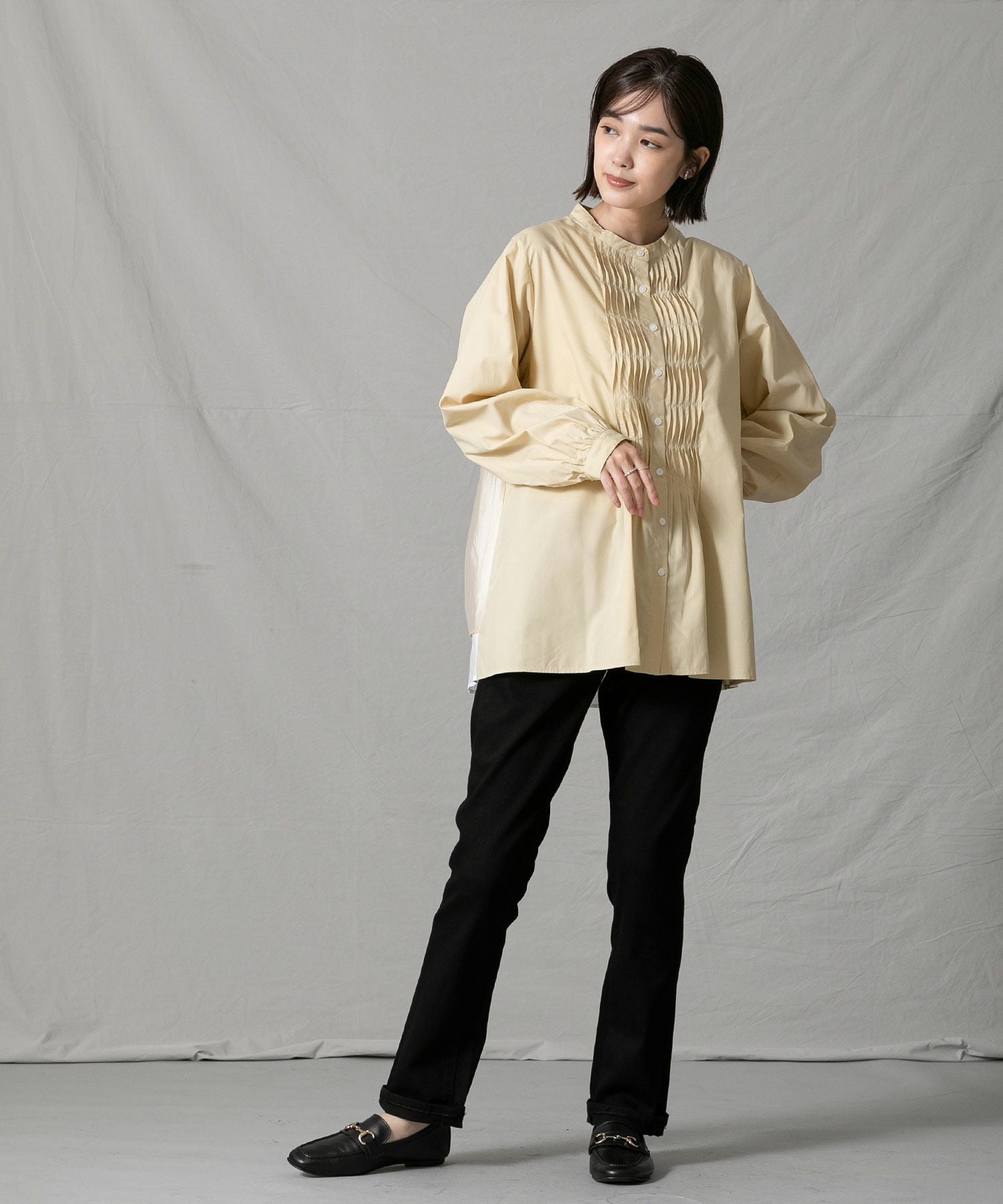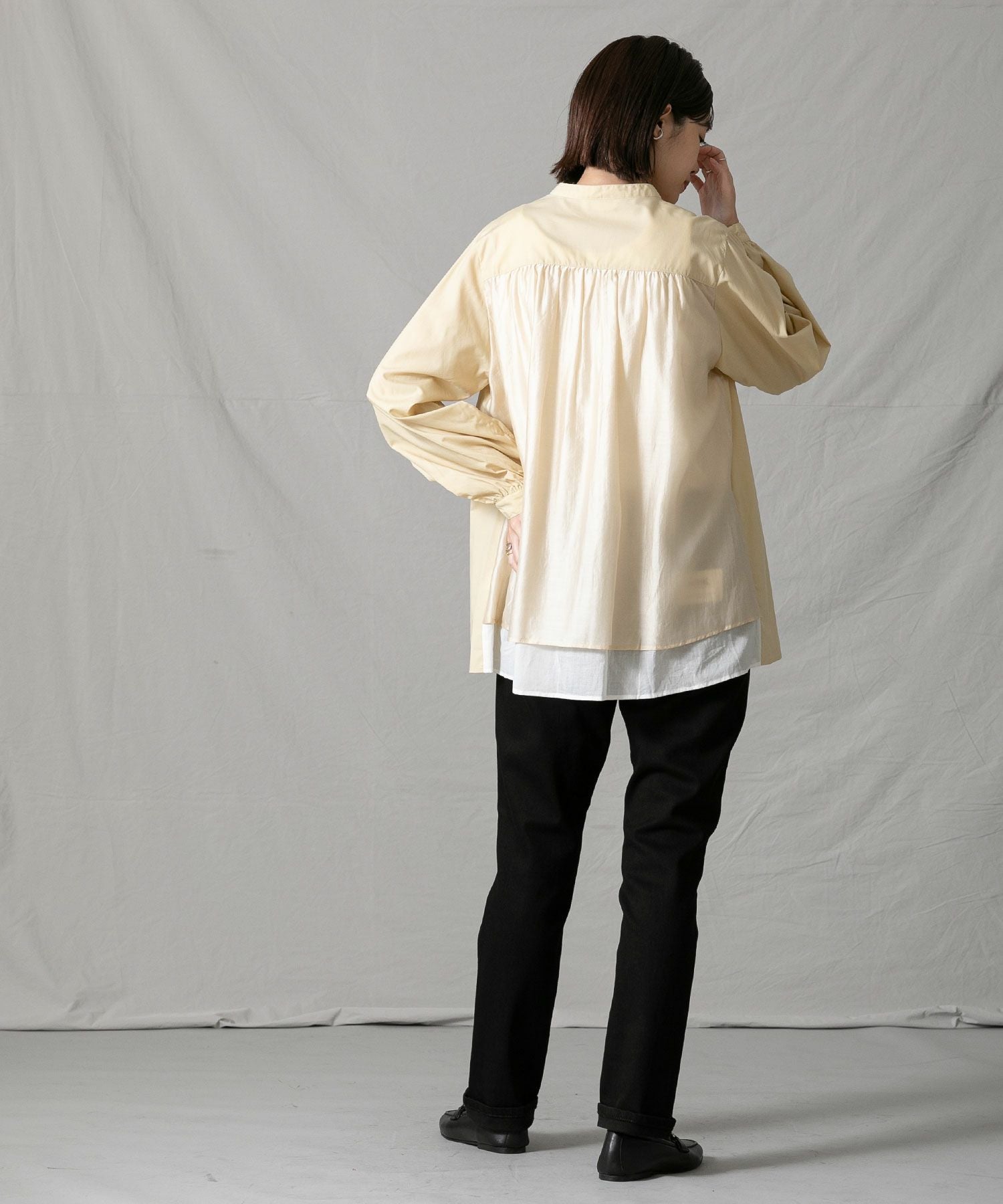 ※着用画像は撮影状況、光の当たり具合で色みが違って見える場合がございます。実際の色みについては、画像一覧の最後に掲載している詳細画像をご参照ください。