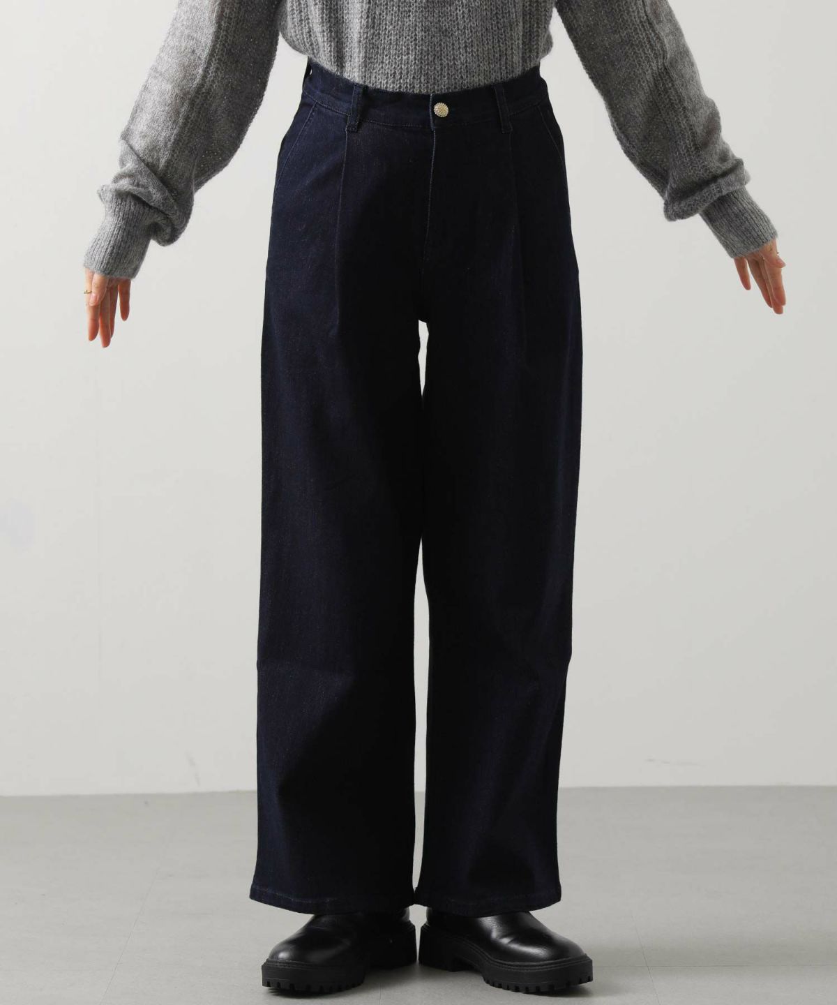 他の画像を見る Gready Brilliant【2026年3月10日AM10:00販売終了】ストレッチタックワイドデニムパンツ 定価 ¥ 17,600 のところ ¥ 10,560 税込 カートに入れる お気に入りに登録する MORE