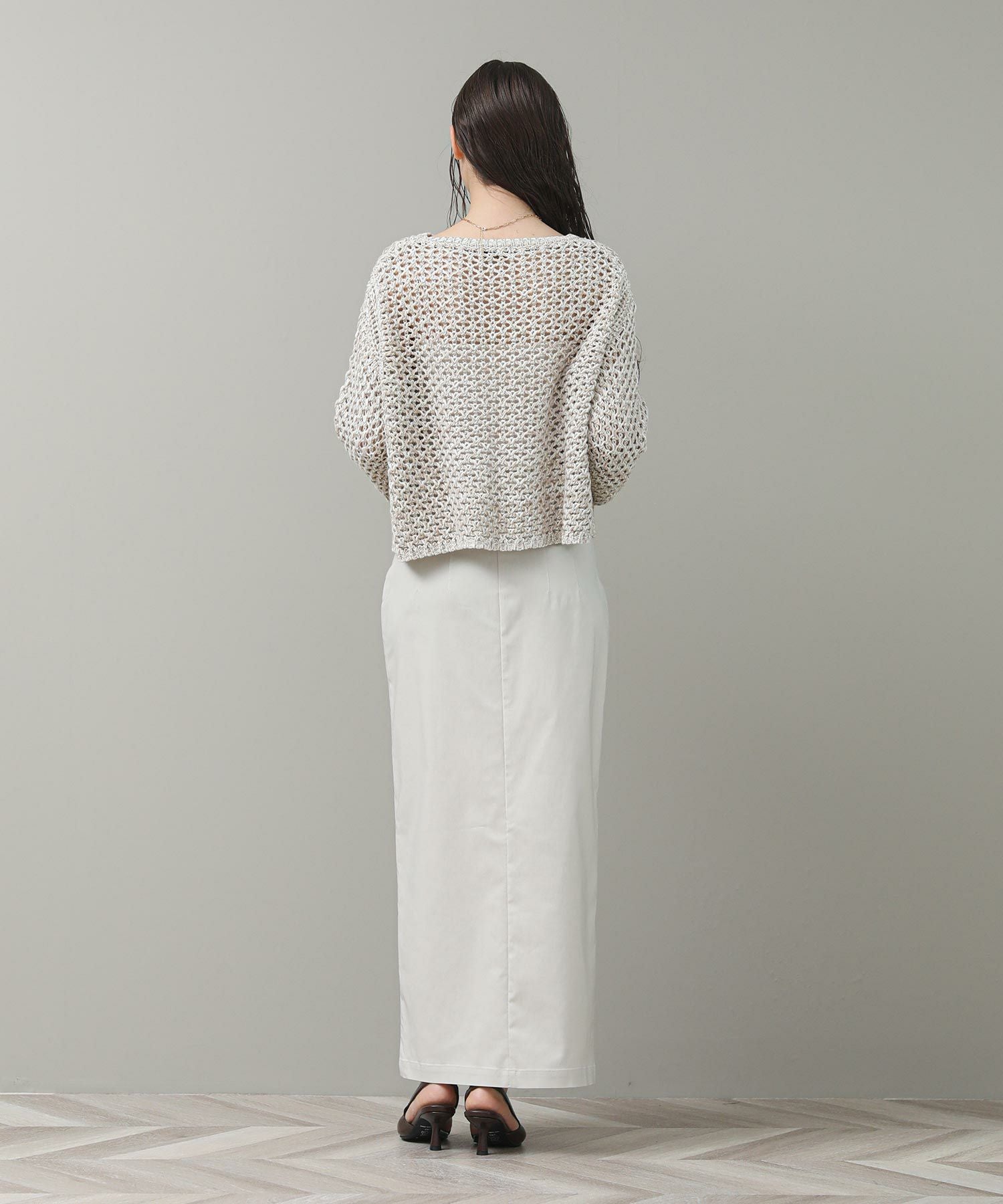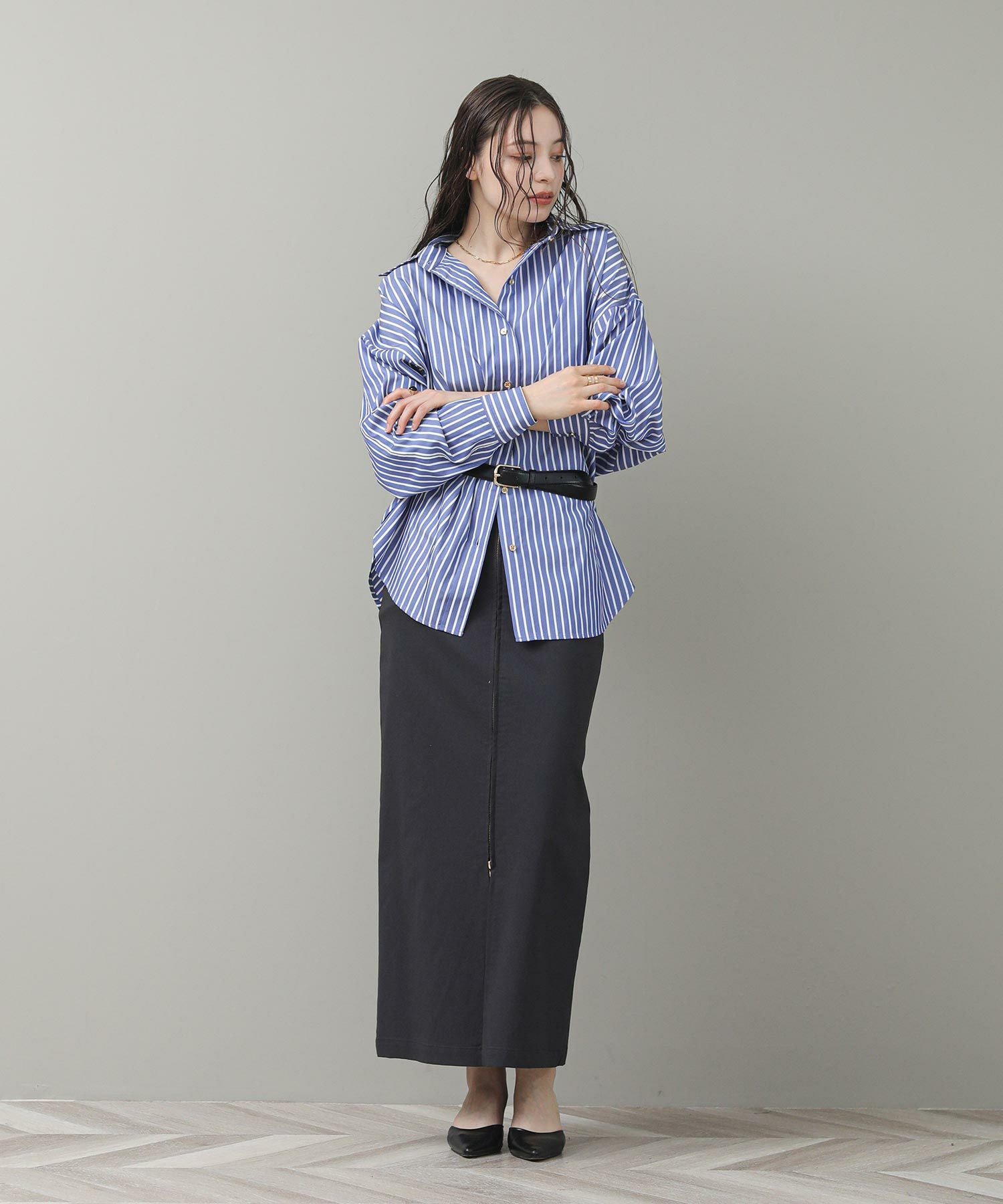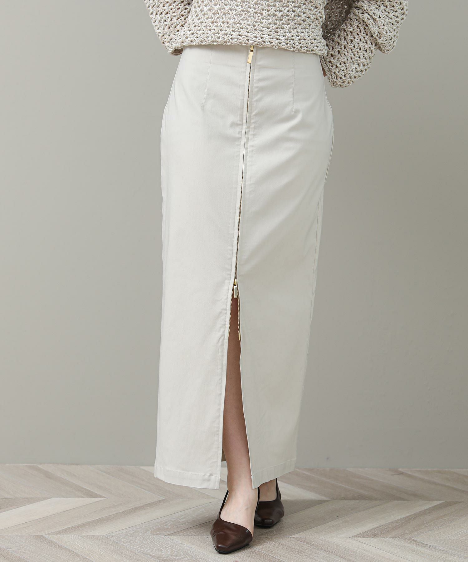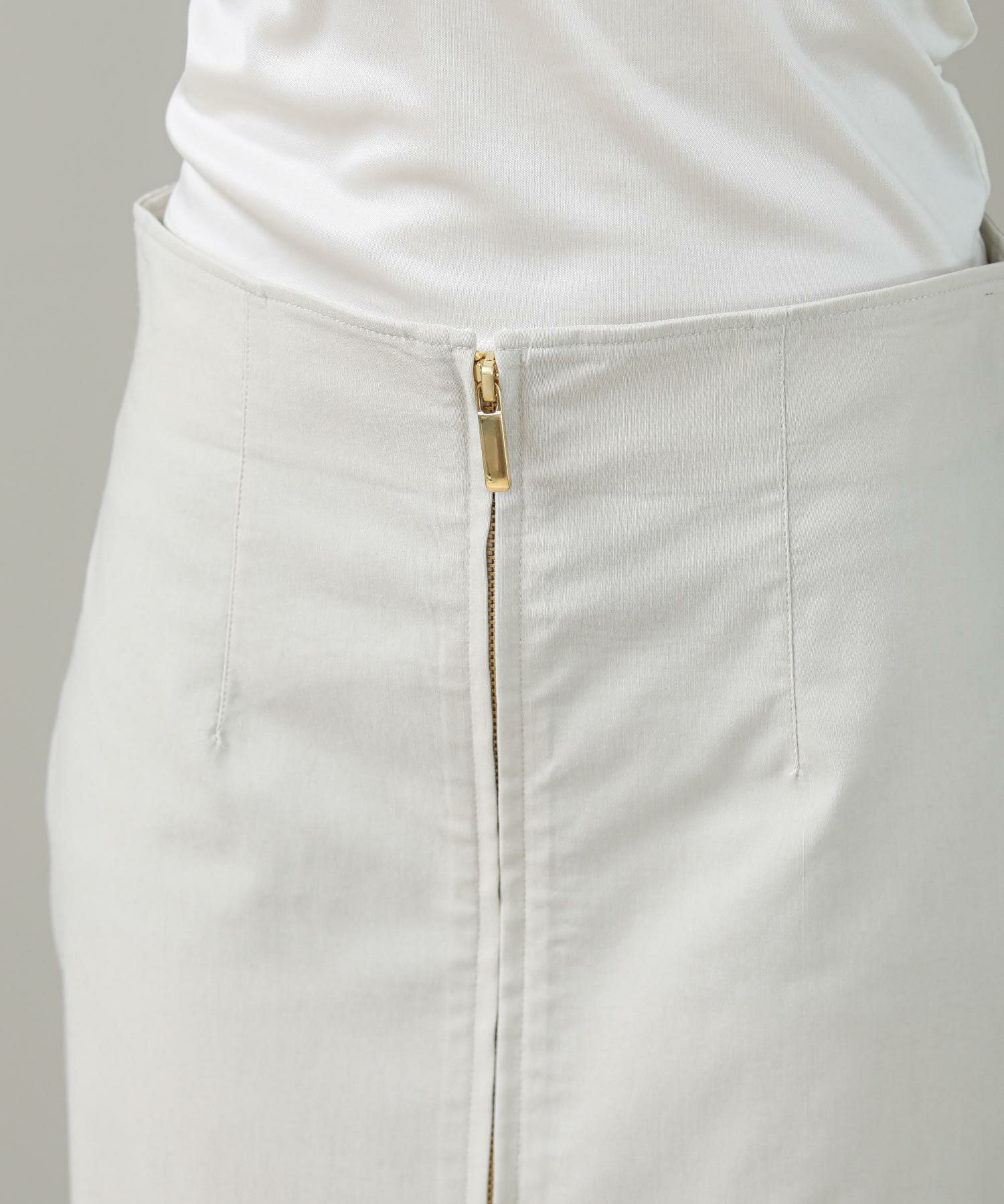伸縮性があり、長時間座るのもストレスフリー。ドライタッチで春夏シーズンも快適に着られます。フロントのZIPがデザインポイントで、スリット丈を調整していただけます。