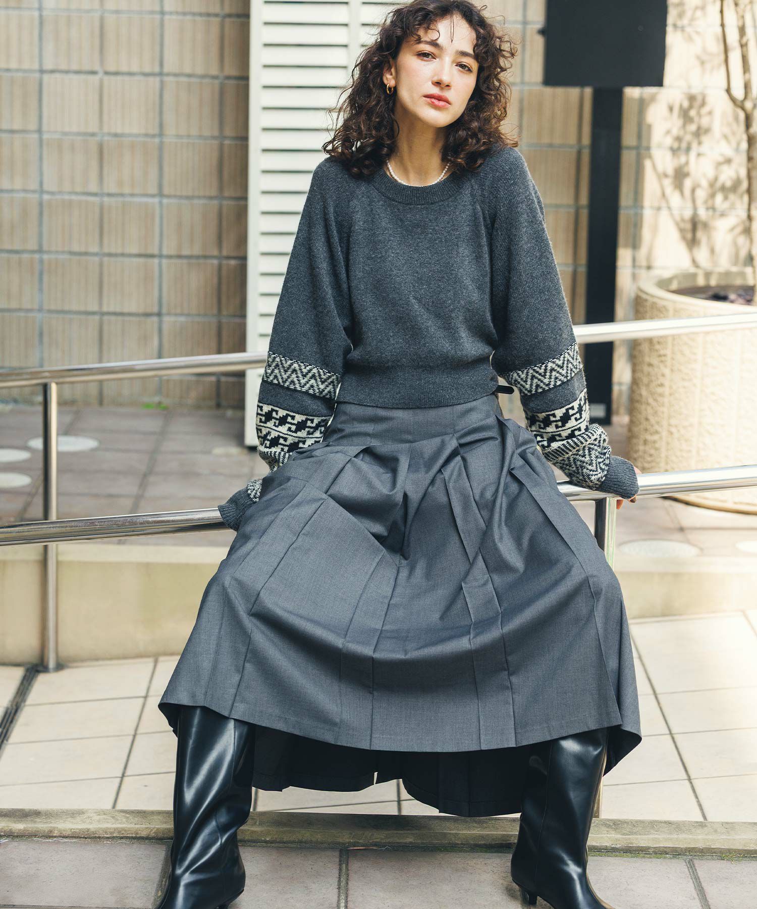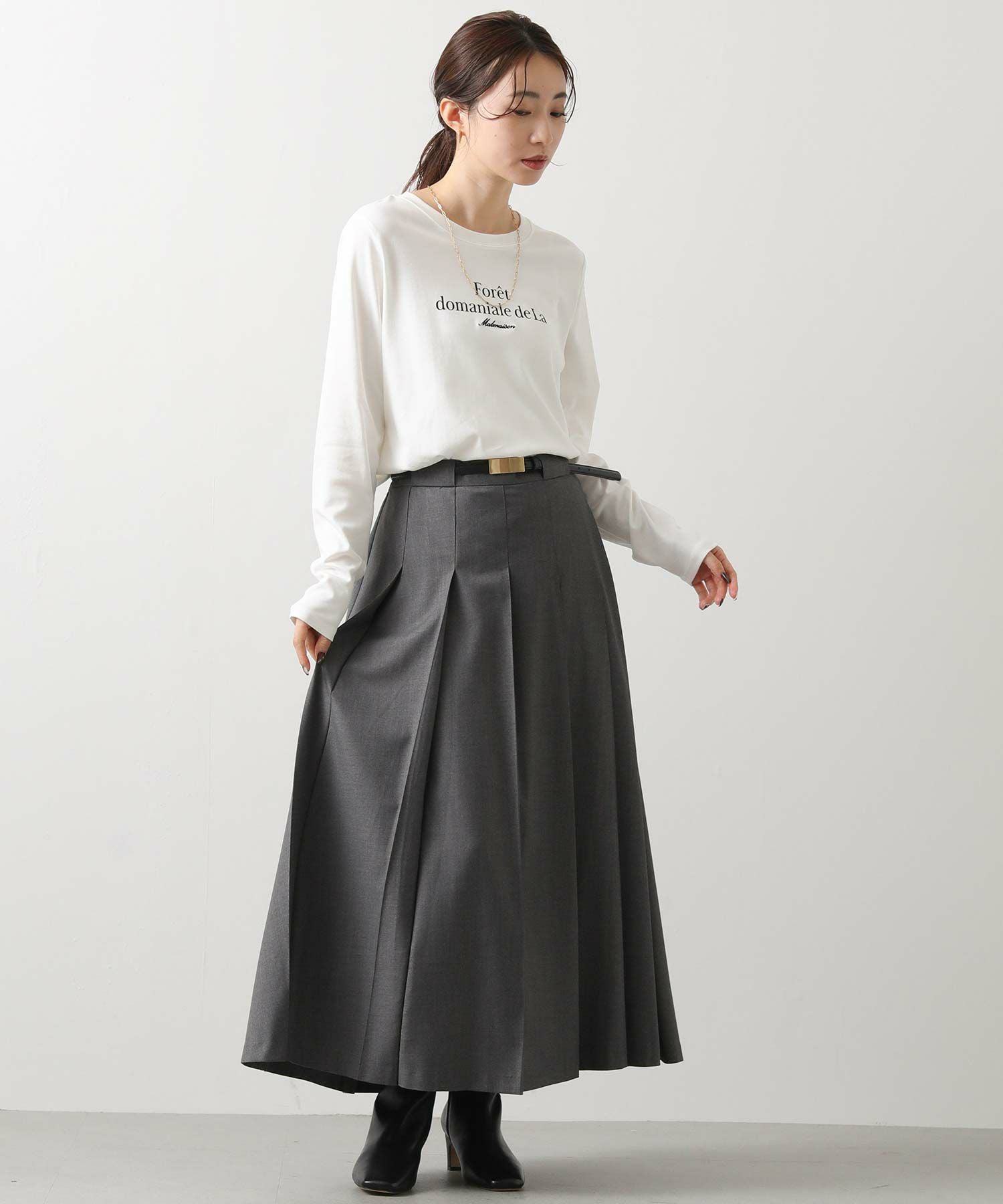 今季トレンドのワイドプリーツがトラッドでクラシカルな印象のスカート。