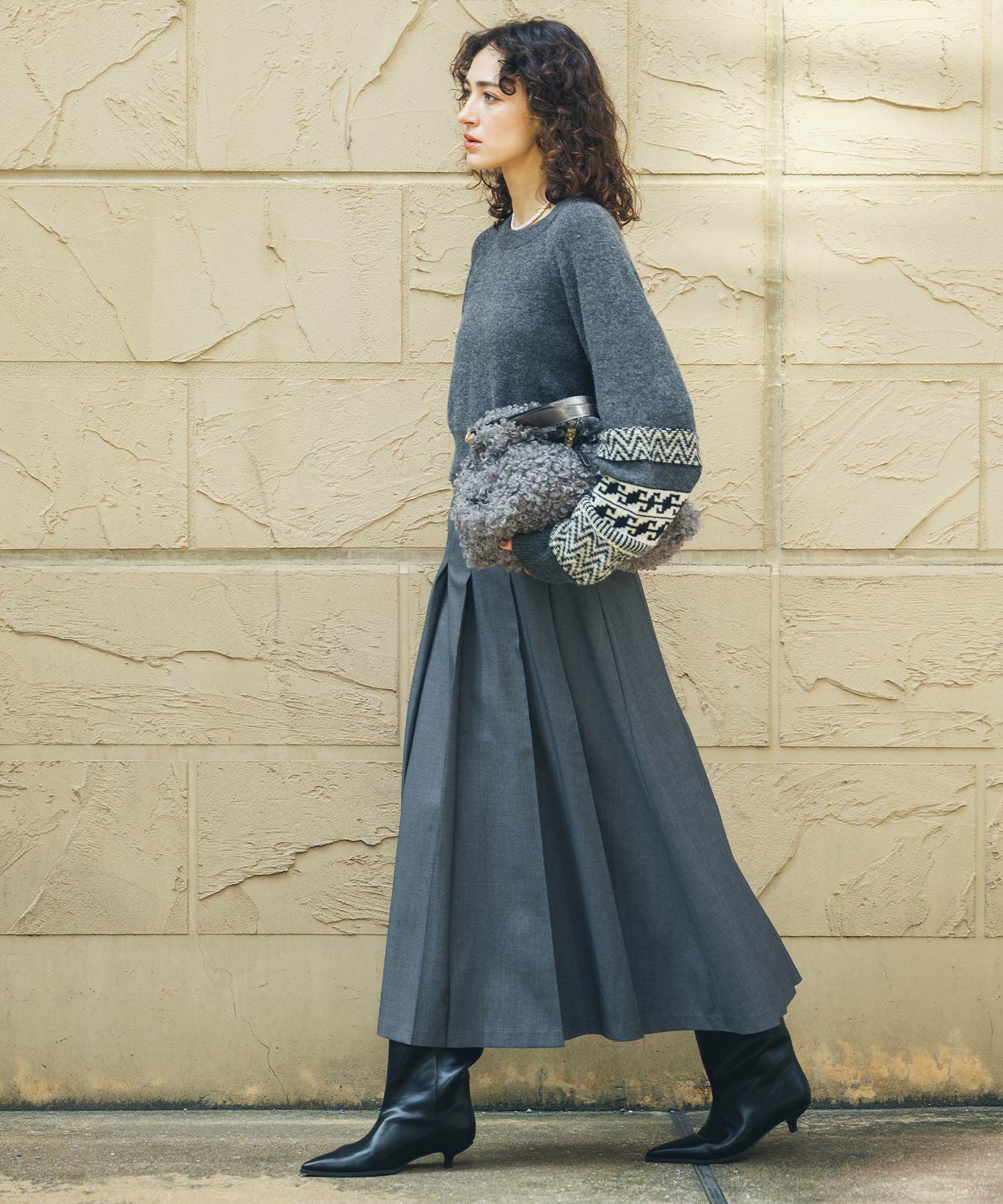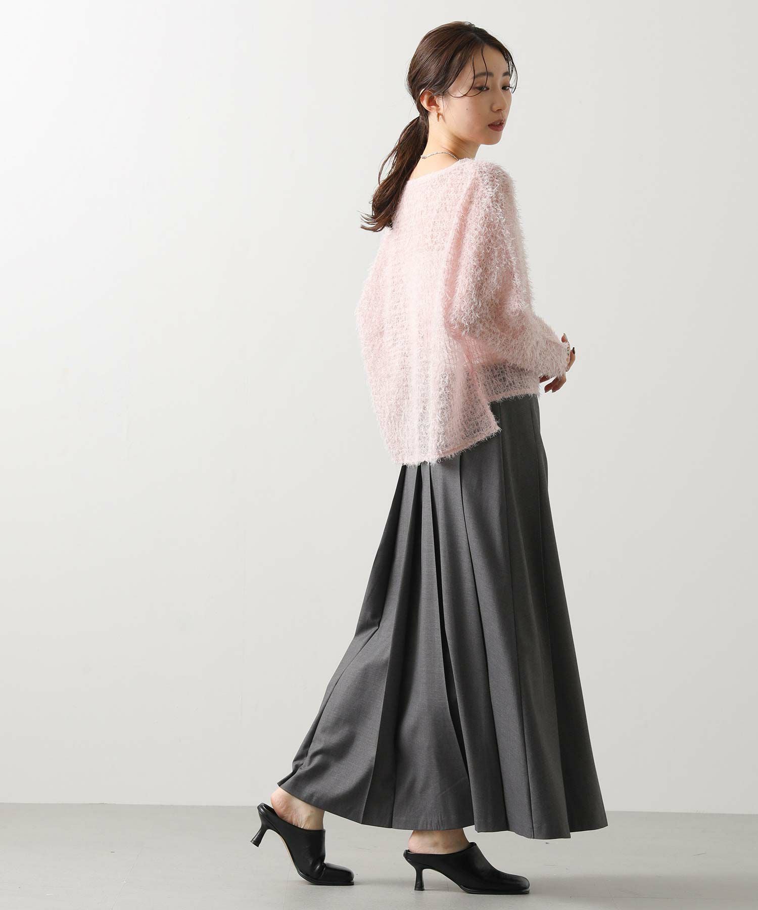 さらっとキレイ目の素材感で暑い時季から穿け、毛足のあるニットとの相性も良いので長いシーズン楽しめます。"