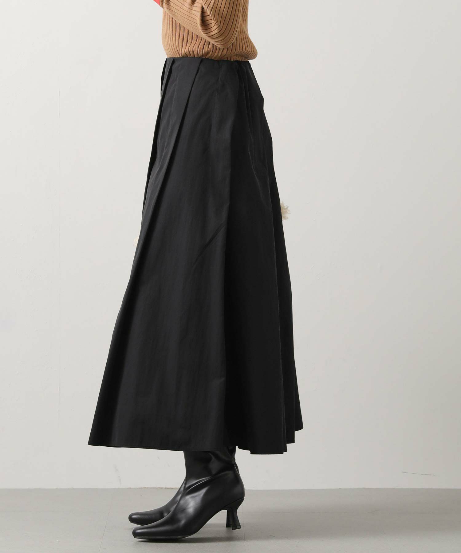 斜めに入ったタックが、ドラマティックなアシメラインを作るスカート。