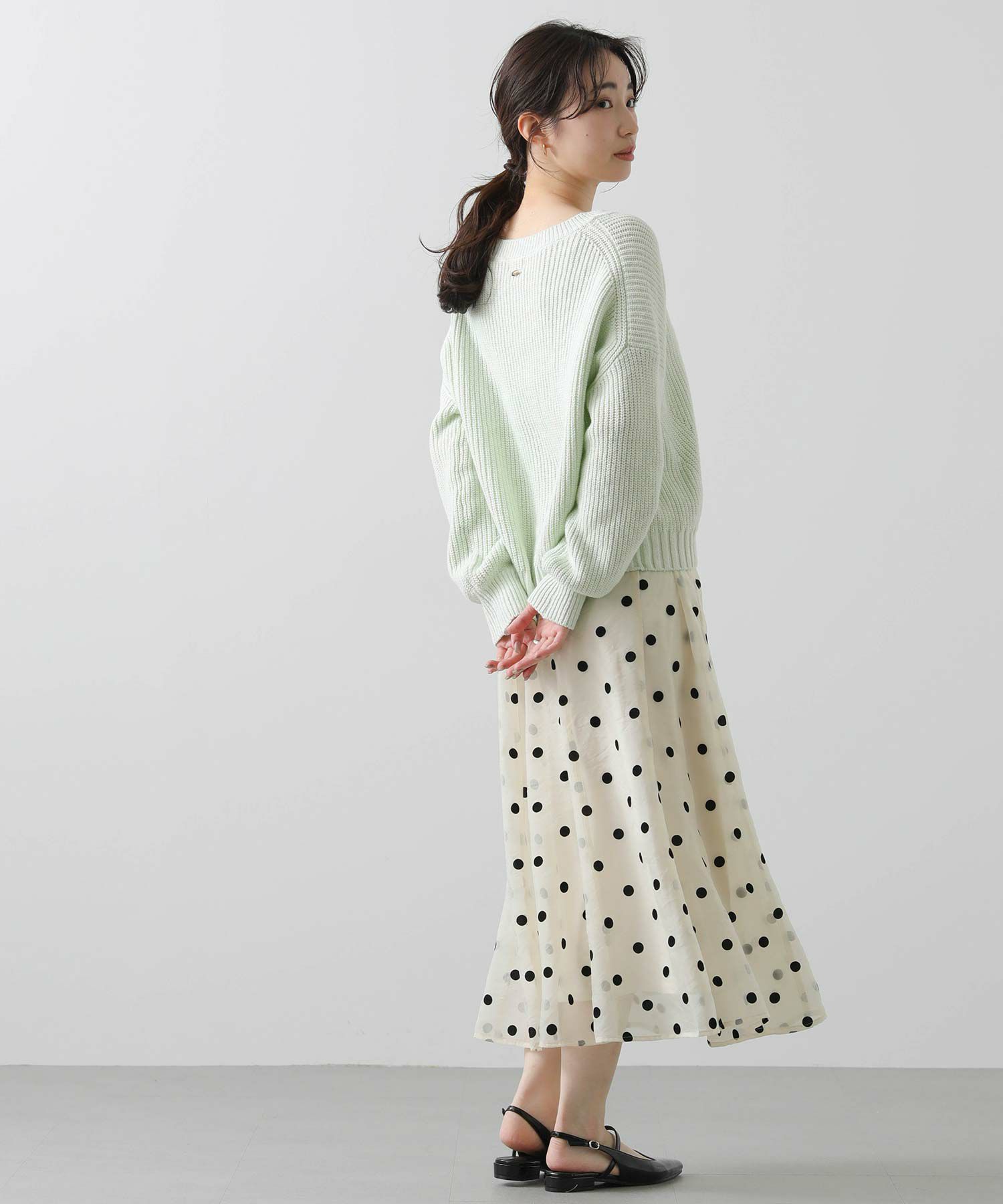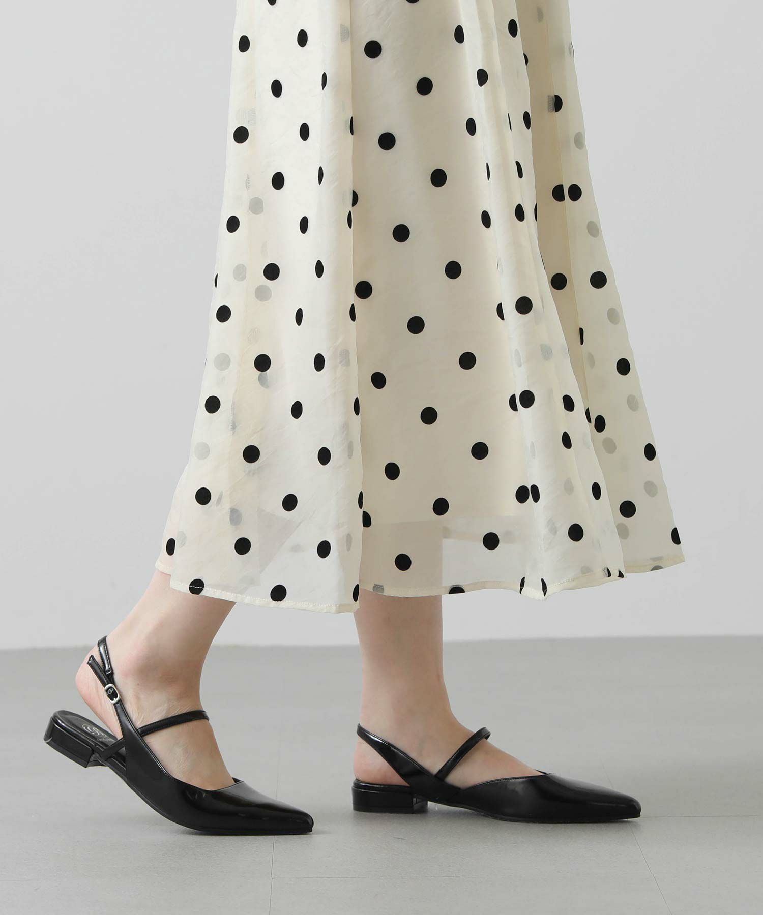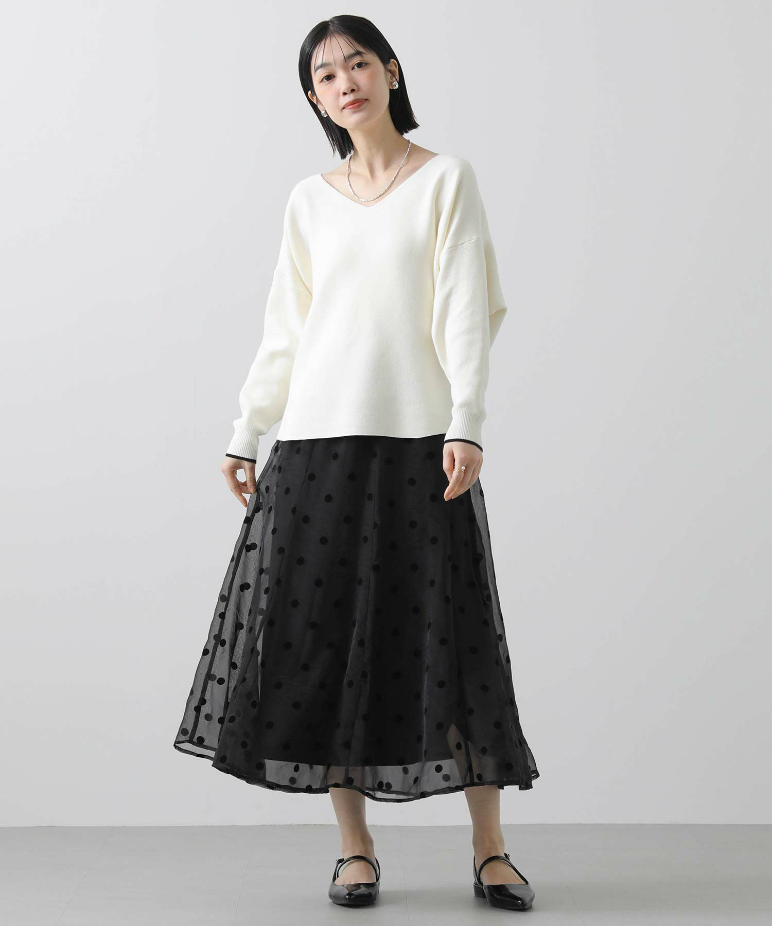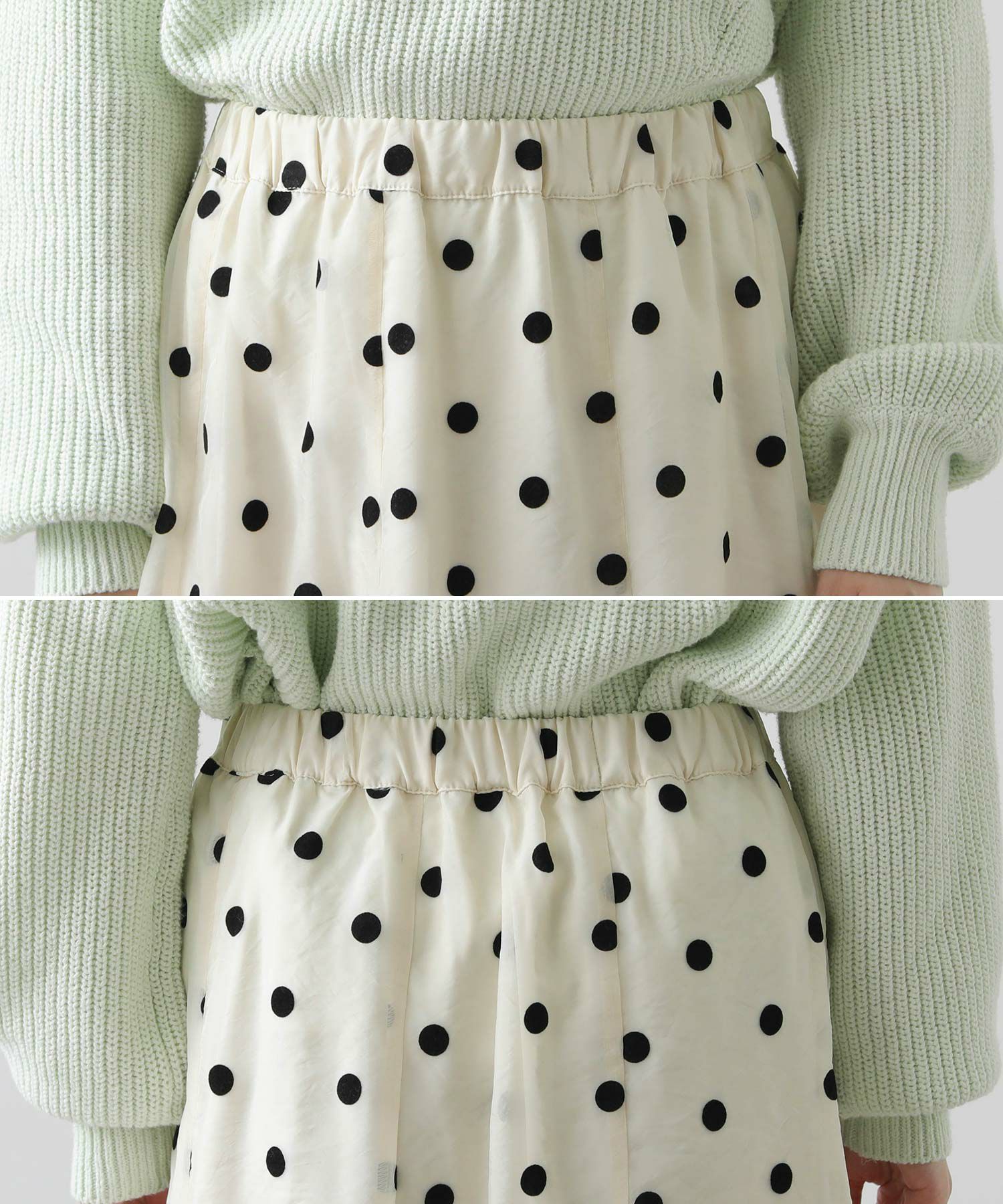 ドット柄の透け感があるオーガンジーが目を惹くギャザースカート。