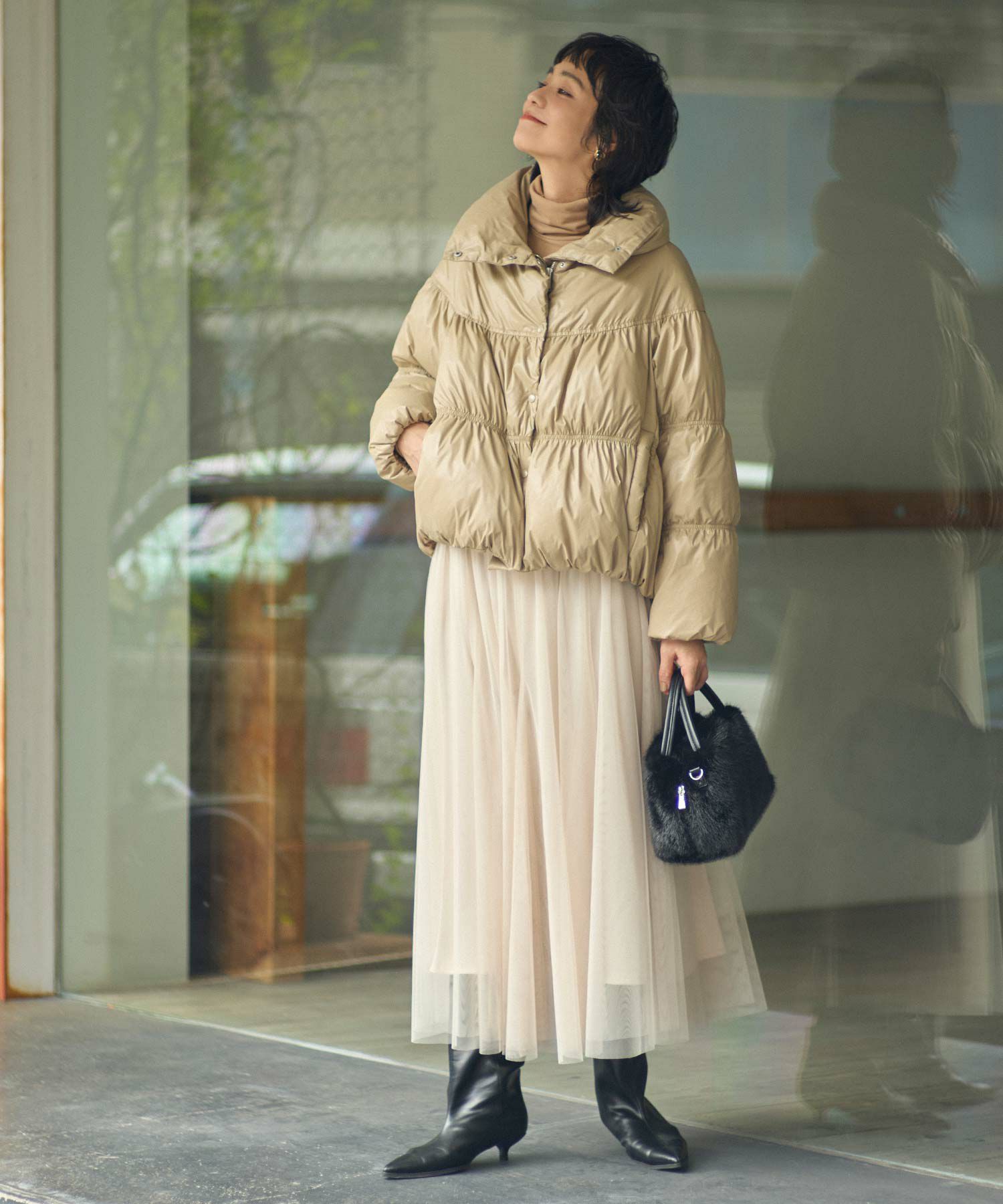 ※着用画像は撮影状況、光の当たり具合で色みが違って見える場合がございます。実際の色みについては、画像一覧の最後に掲載している詳細画像をご参照ください。