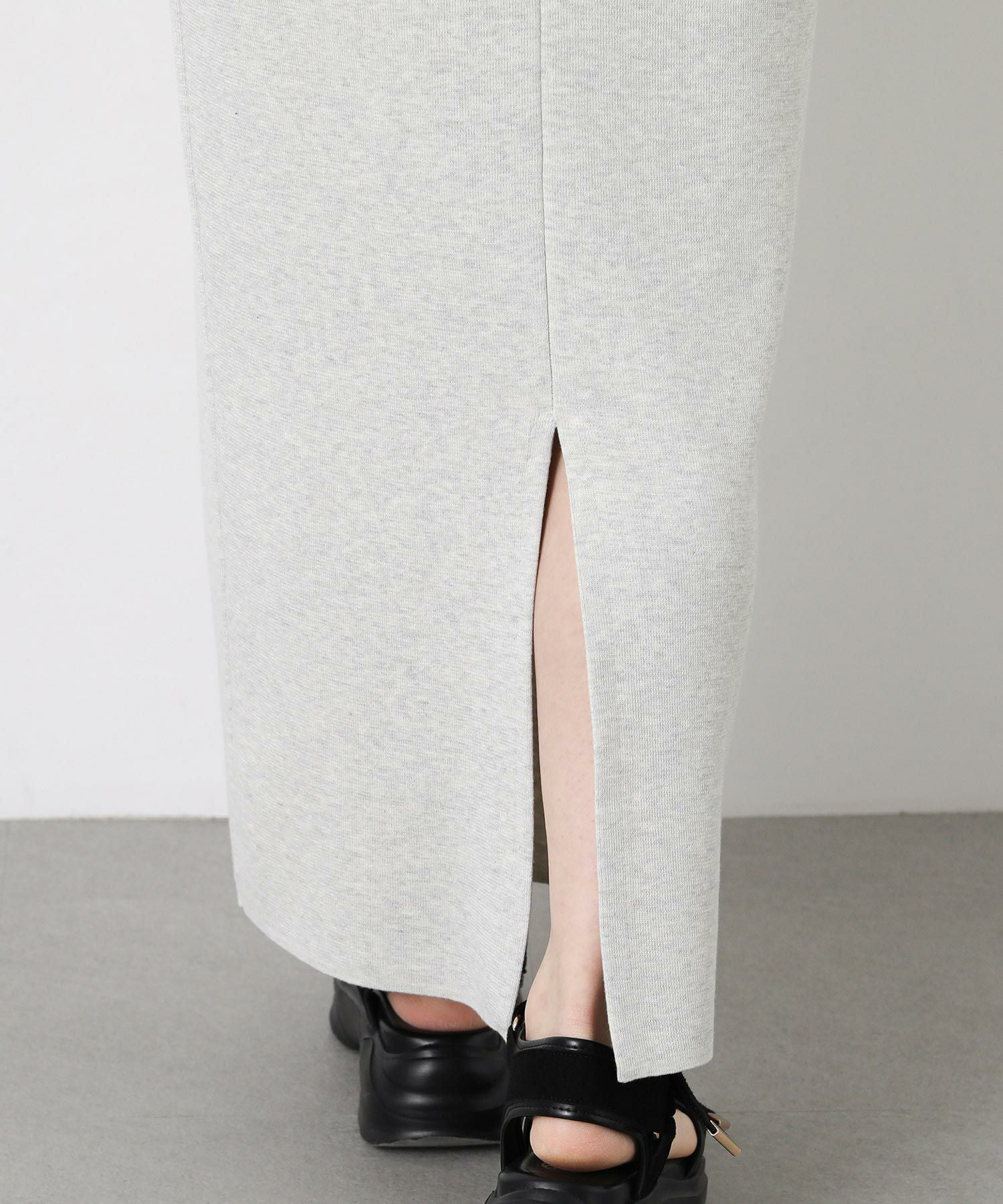 さりげない光沢感のあるサラっとした着心地の糸を使用したタイトスカート。