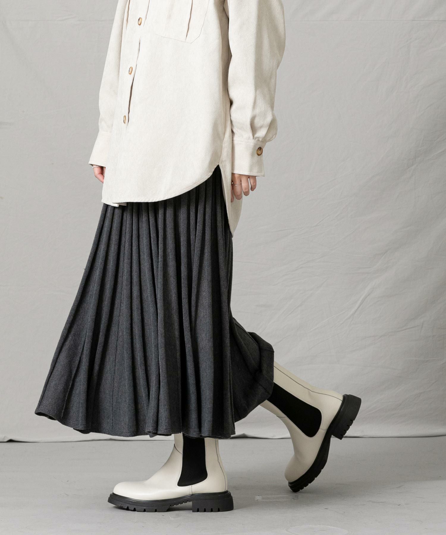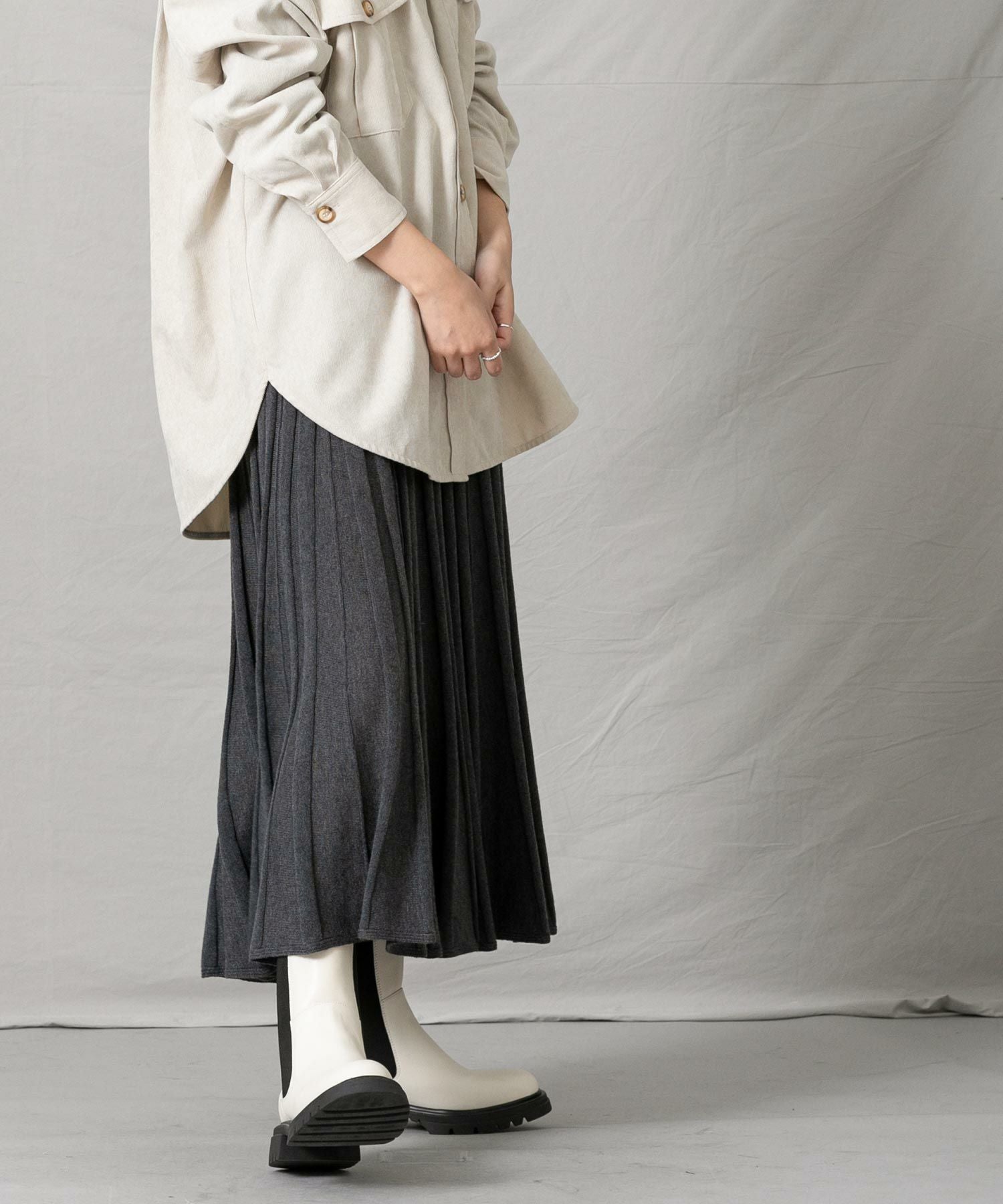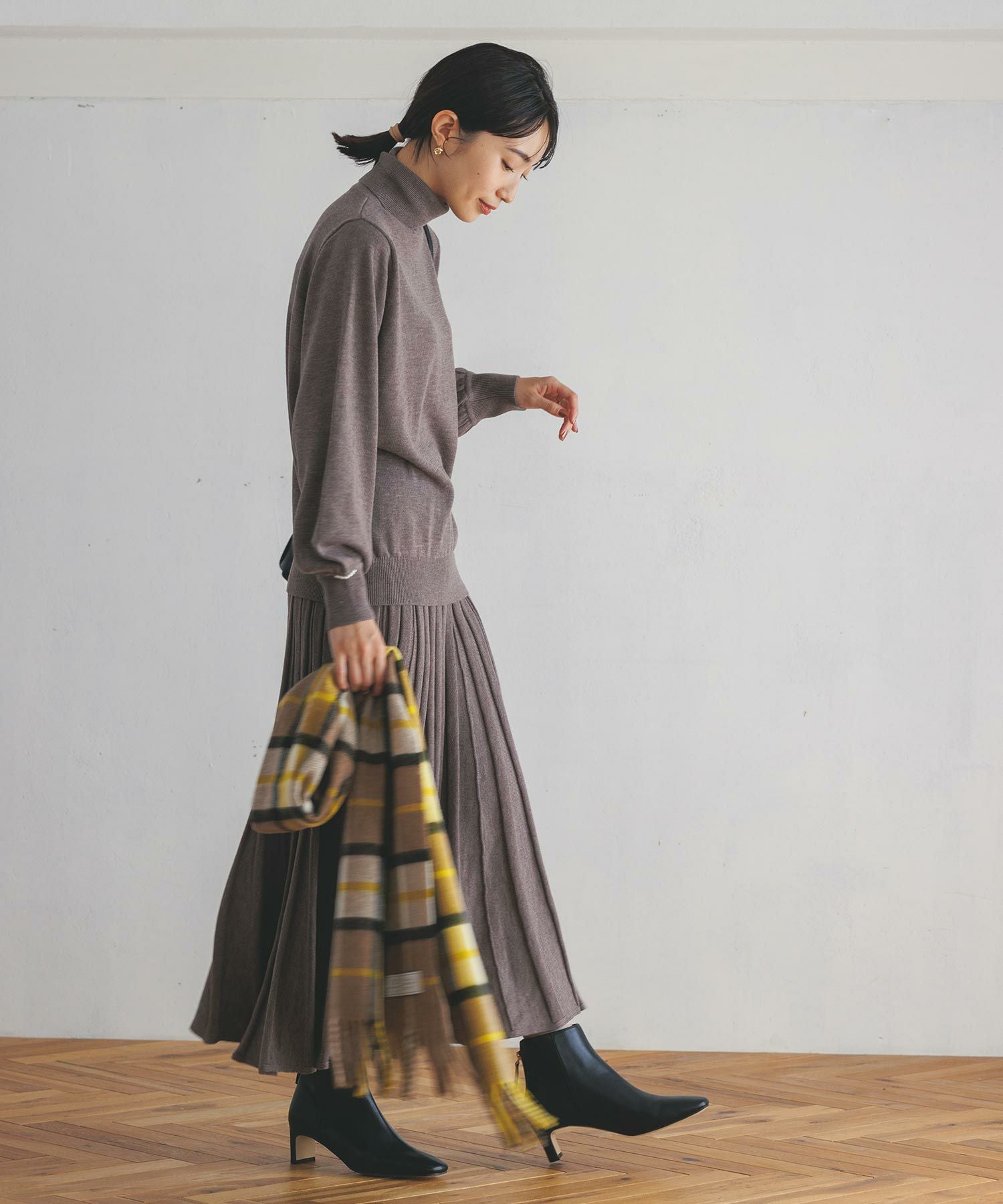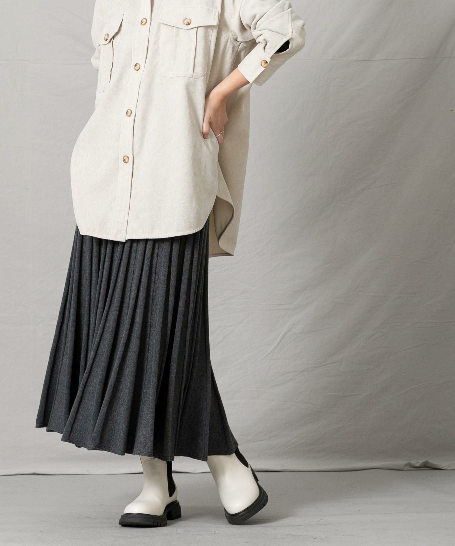 ウエストは総ゴム仕様で柔らかく優しい肌触りの穿き心地抜群のスカートです。綺麗に広がるニットプリーツが女性らしくエレガントな印象。