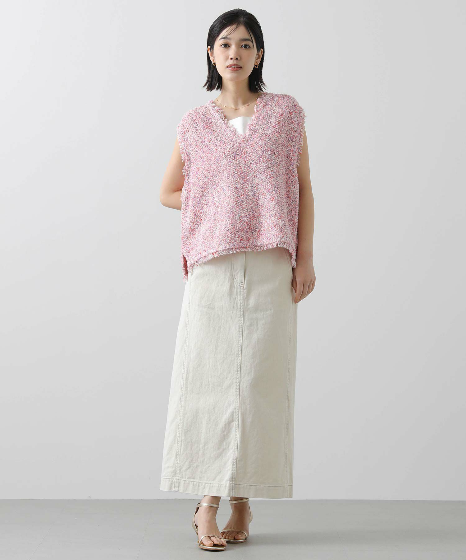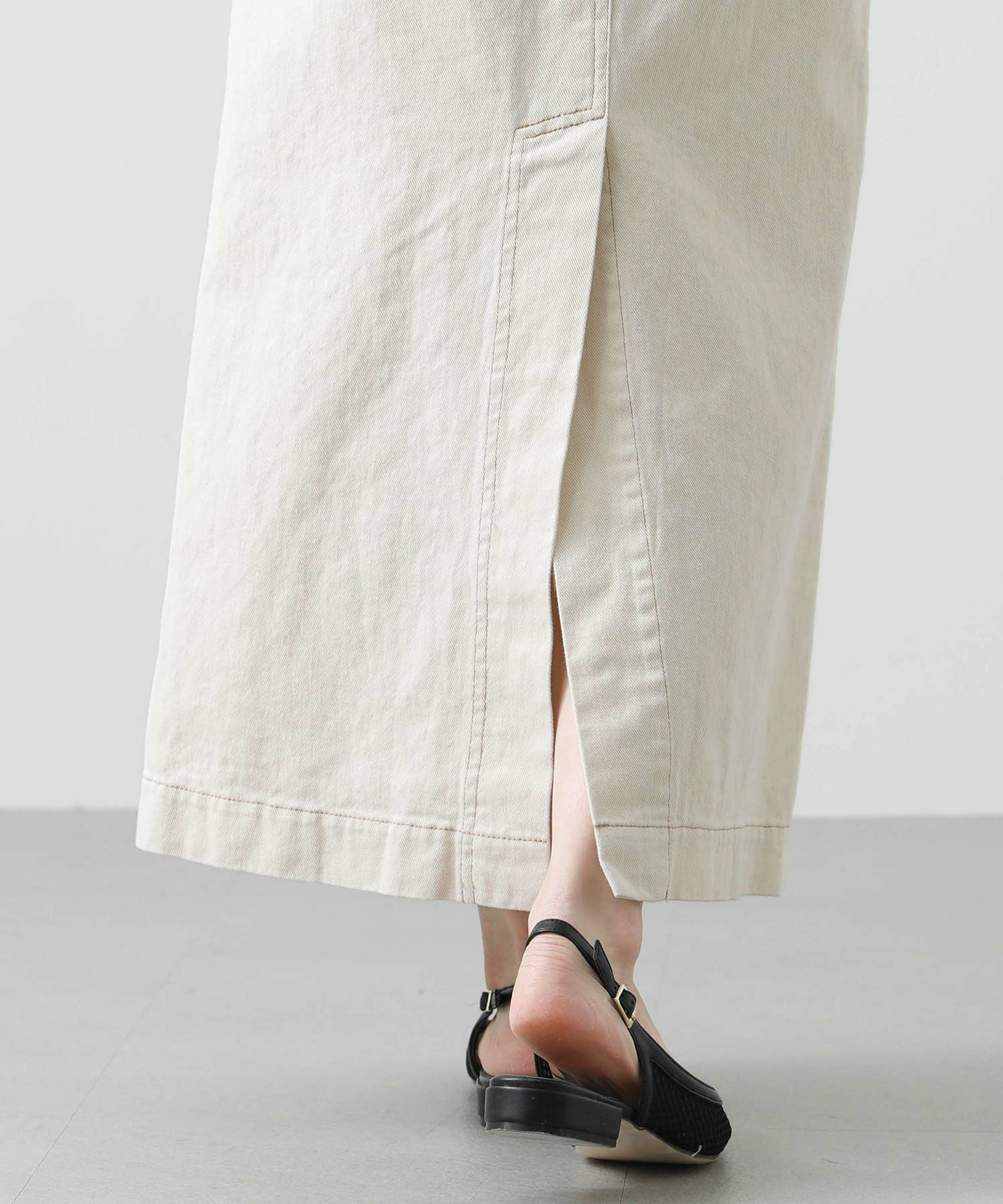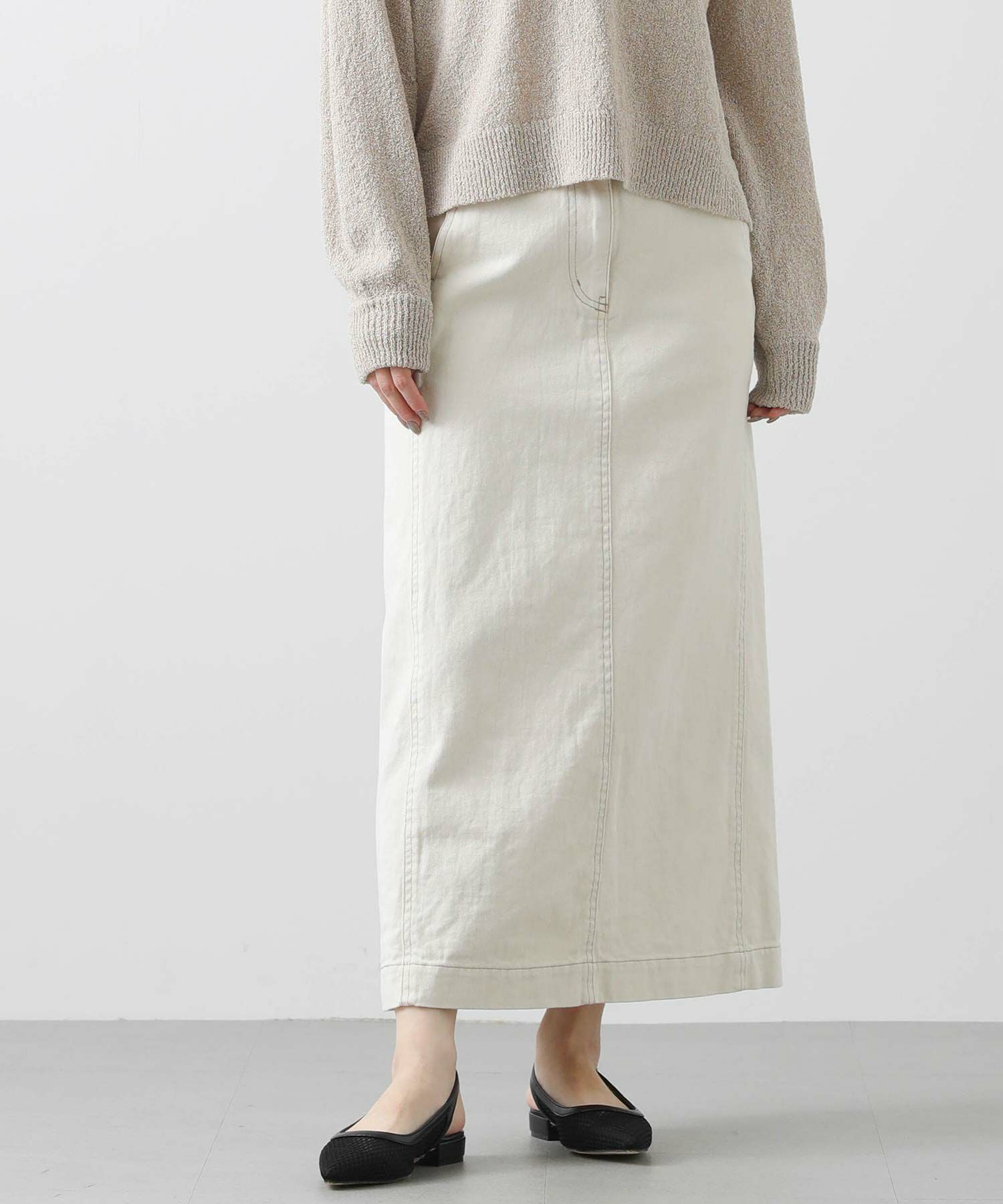 シャープなシルエットながら、程よいAラインで女性らしさをプラス。バックには深めのスリット入りで、足さばきも良く着用頂けます。着回し力抜群なデニムスカートはロングシーズン楽しめるアイテムなので、一枚あると重宝すること間違いなし。