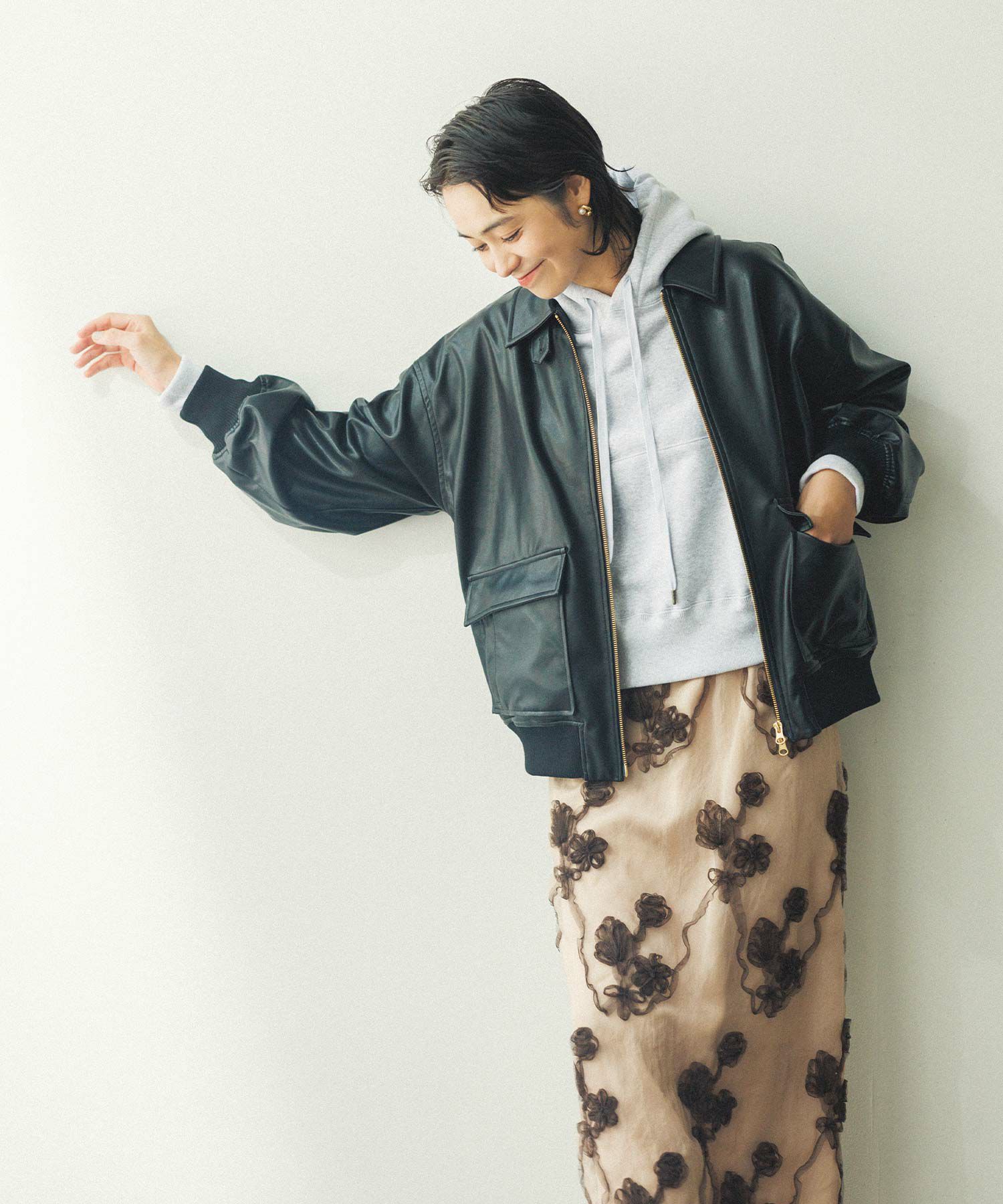※着用画像は撮影状況、光の当たり具合で色みが違って見える場合がございます。実際の色みについては、画像一覧の最後に掲載している詳細画像をご参照ください。