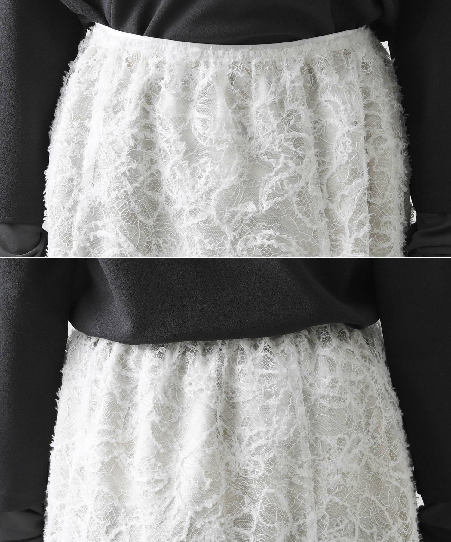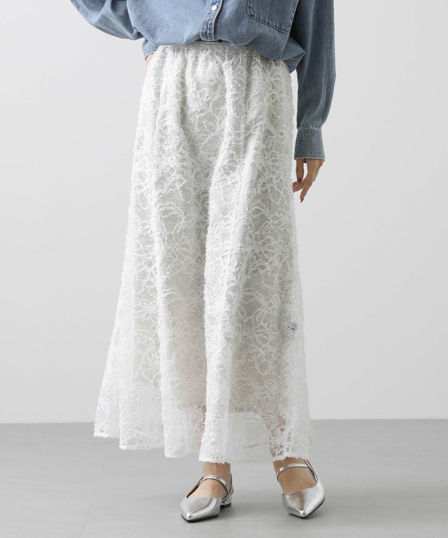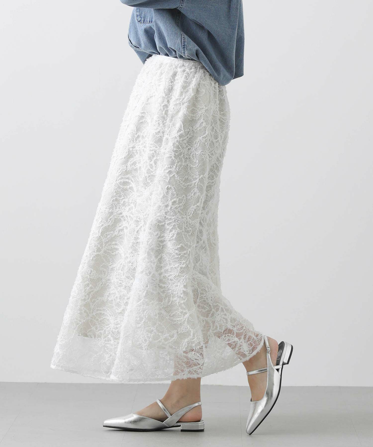 立体感のある繊細なレースを使用した、スタイリングを華やかにしてくれる2WAYスカート。